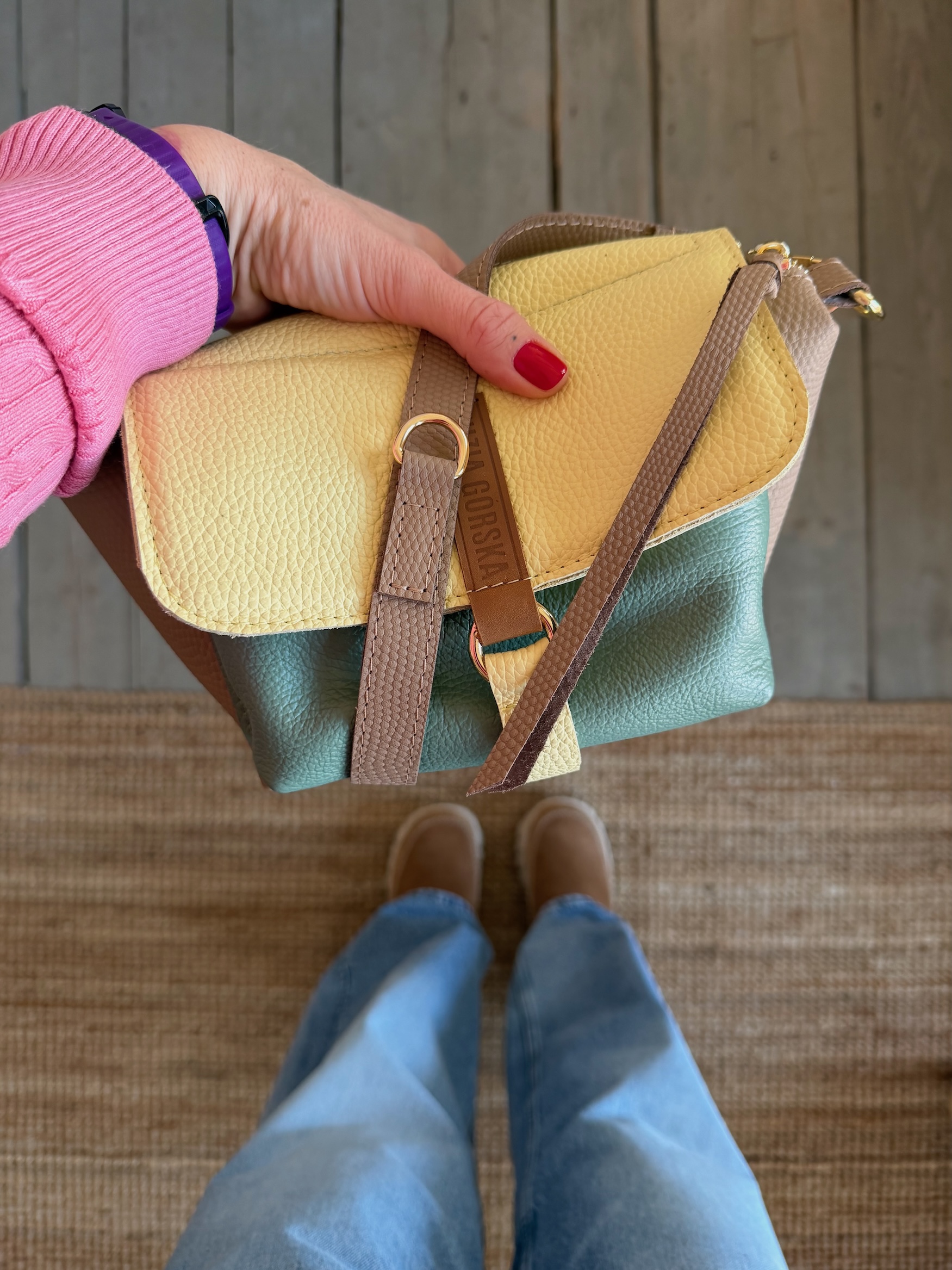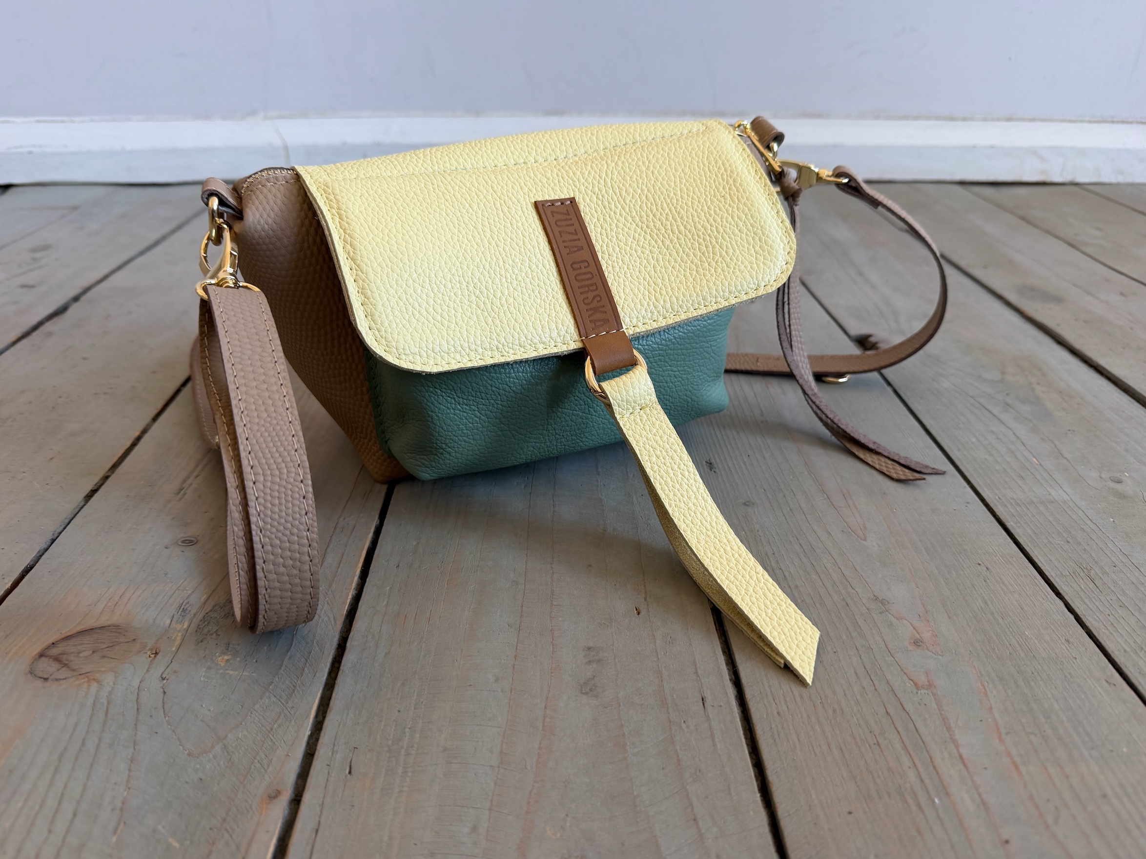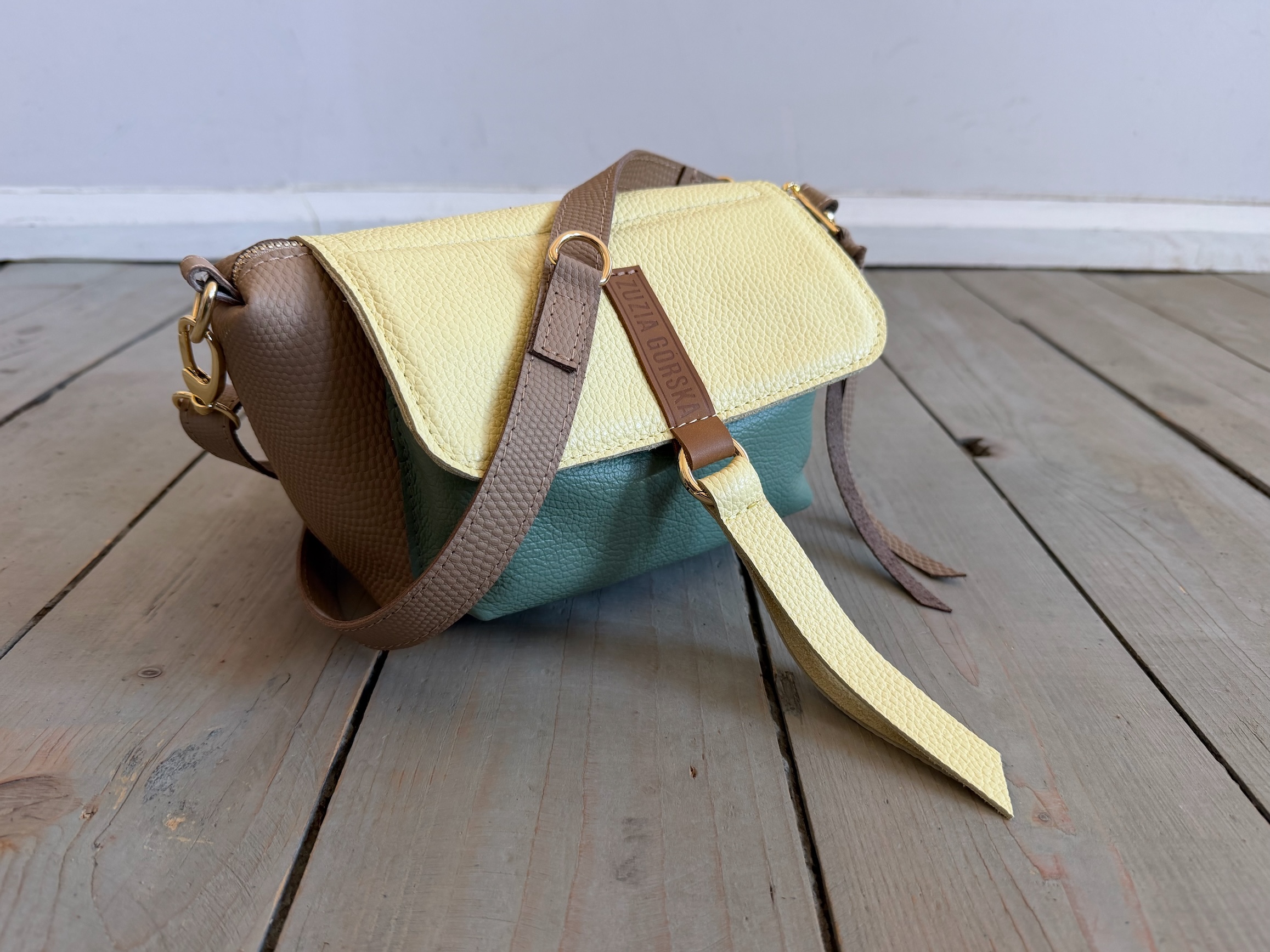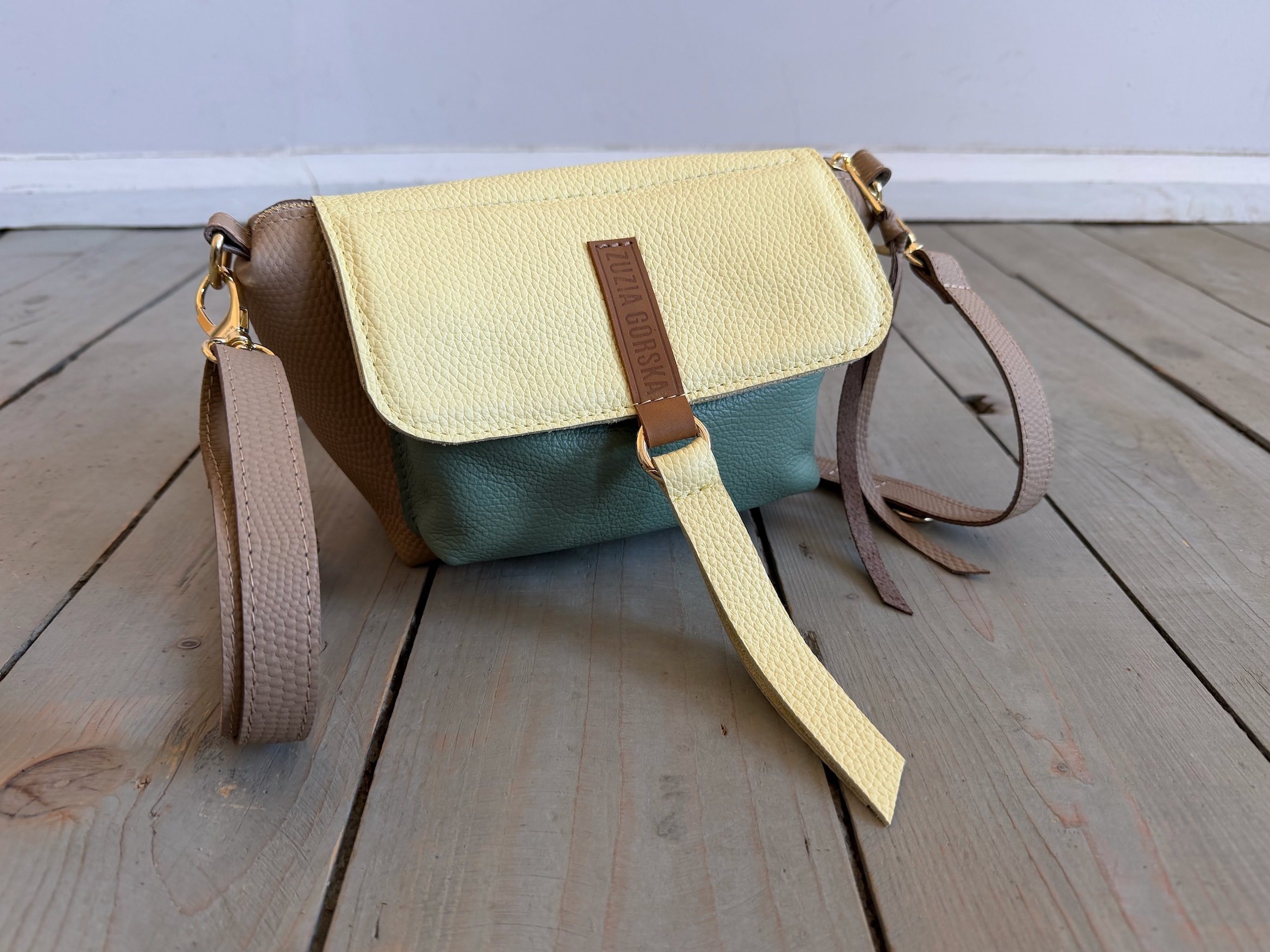 Uszyta ze skóry naturalnej licowej + bawełnianej podszewki.
