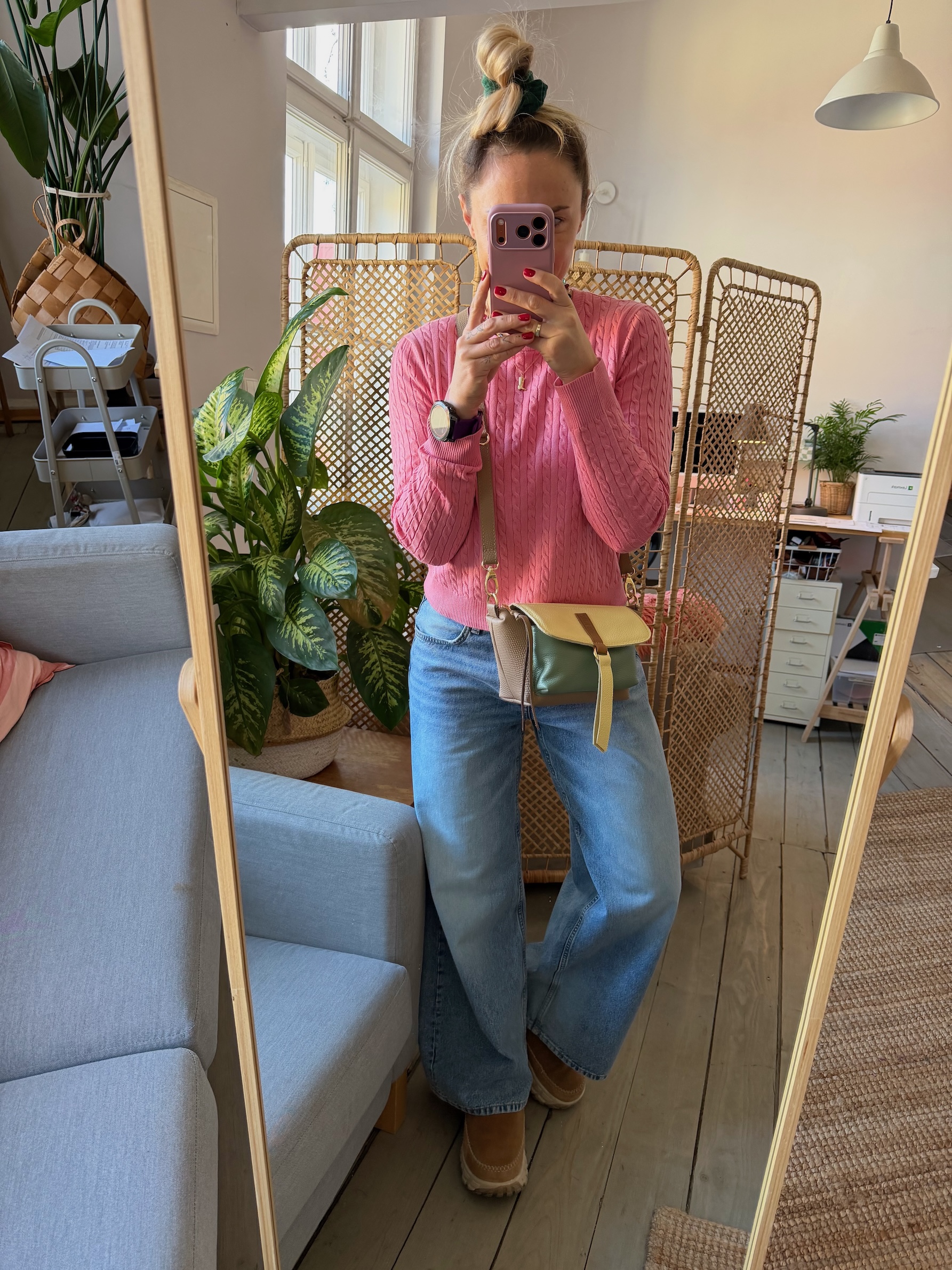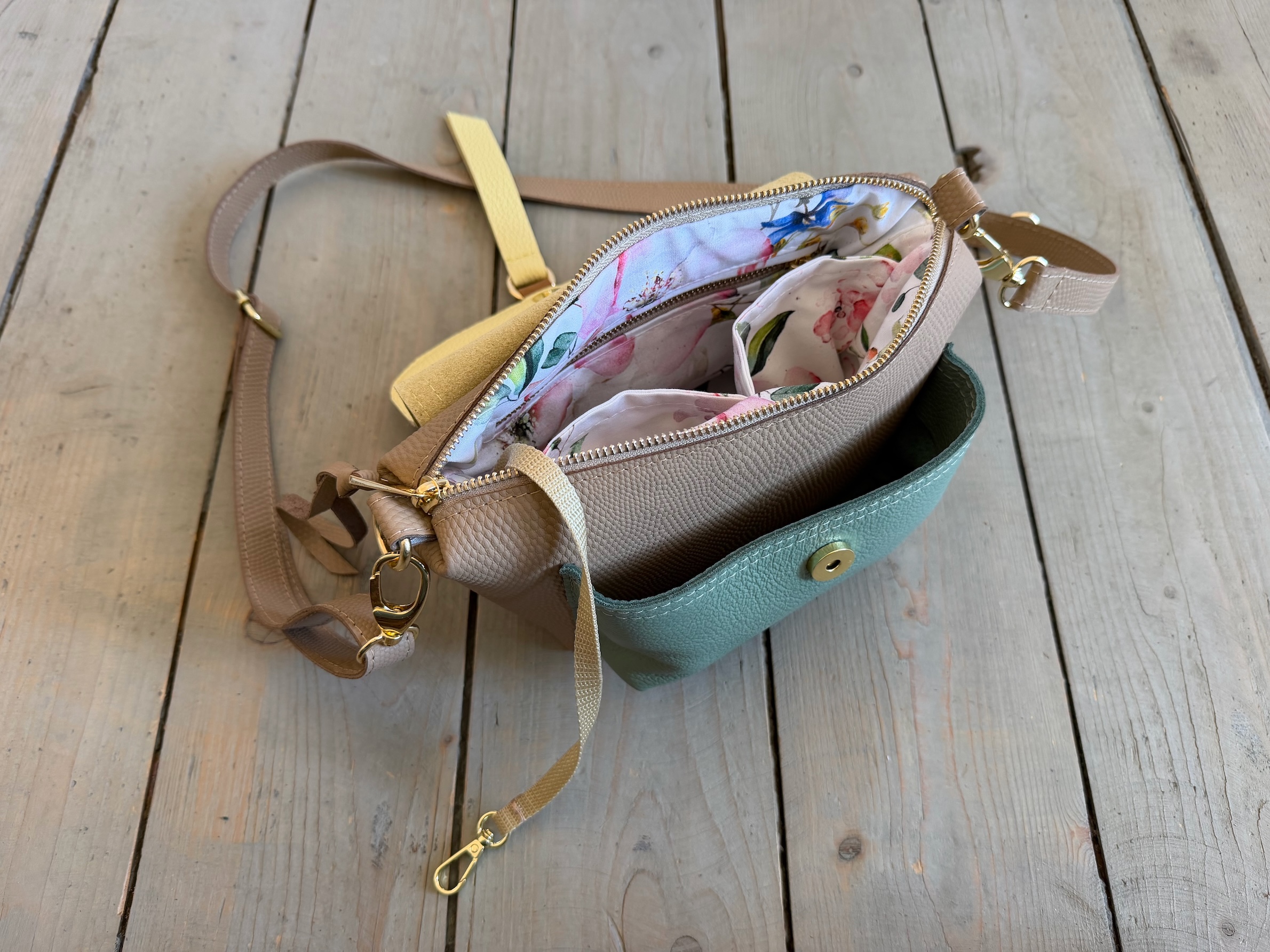 Na zewnątrz naszyta kieszonka idealna na telefon, zamykana na magnes.