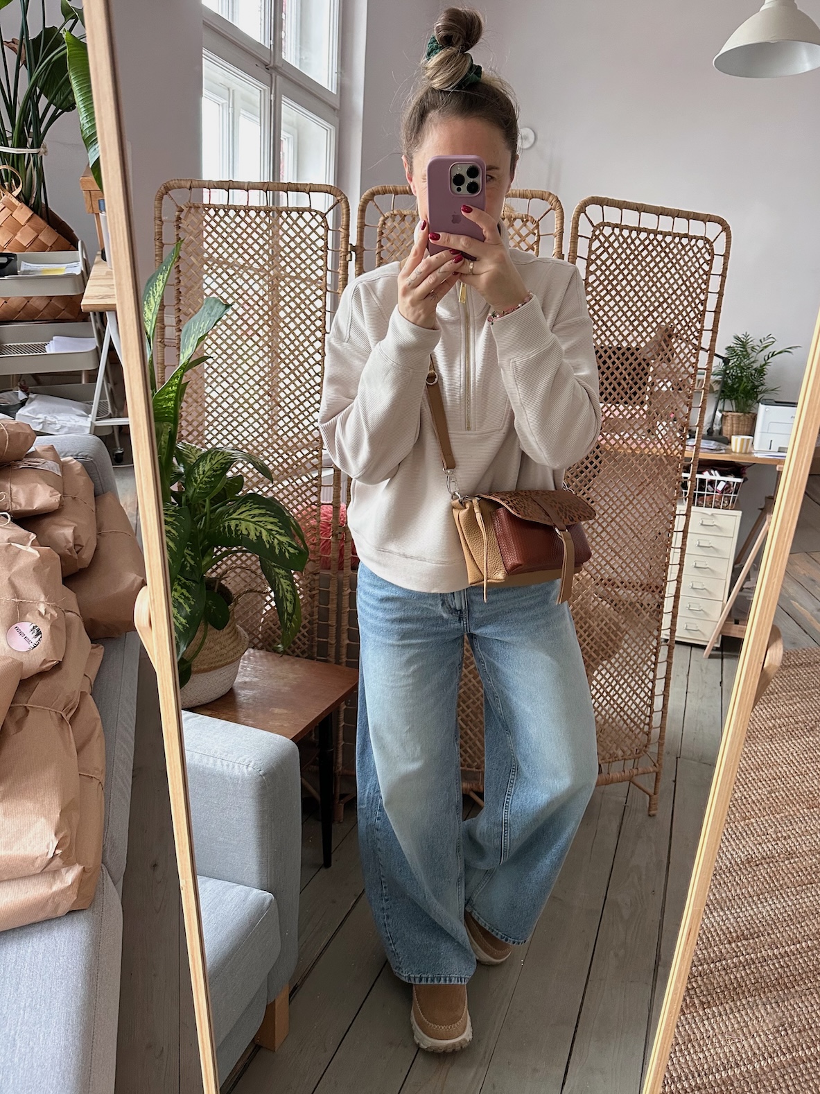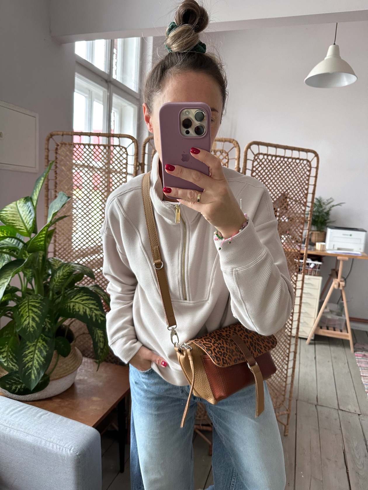 Na zewnątrz naszyta kieszonka idealna na telefon, zamykana na magnes.