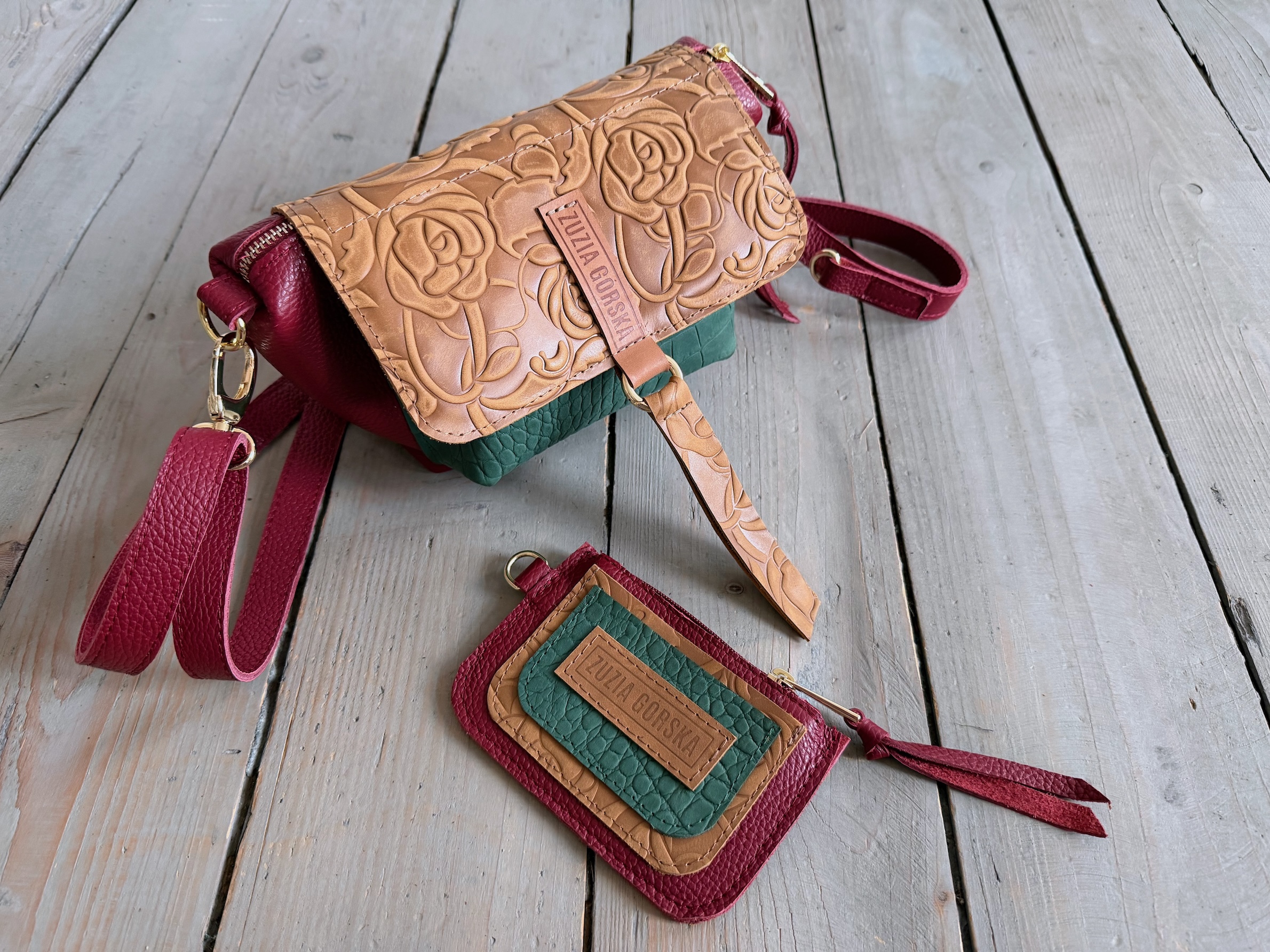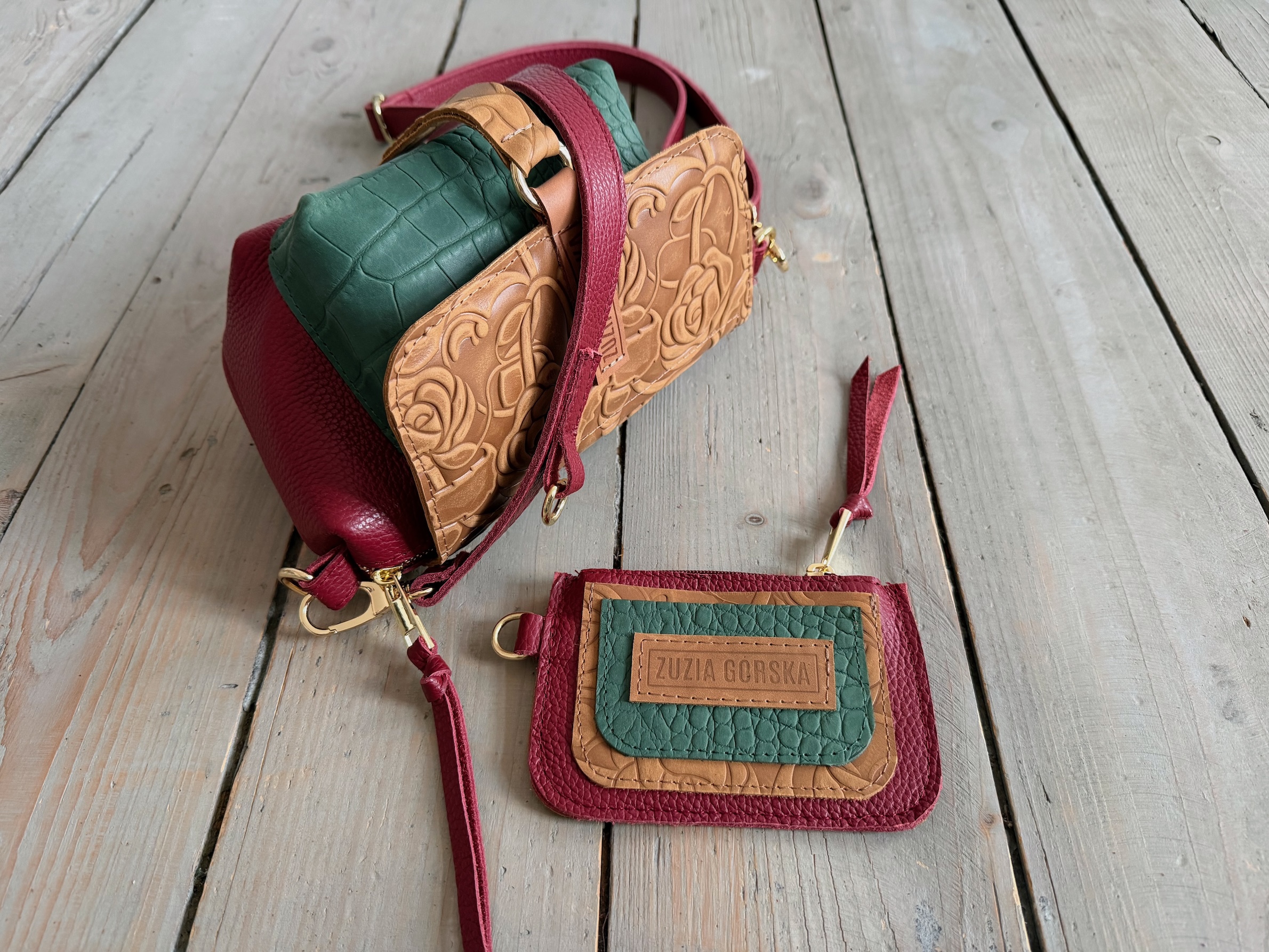 Mid Lola Full Cranberry + Sand Roses + Emerald Croco II + Wallet