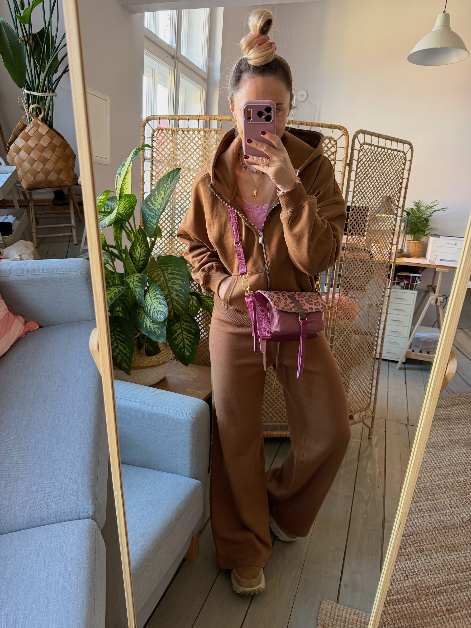 Na zewnątrz naszyta kieszonka idealna na telefon, zamykana na magnes.