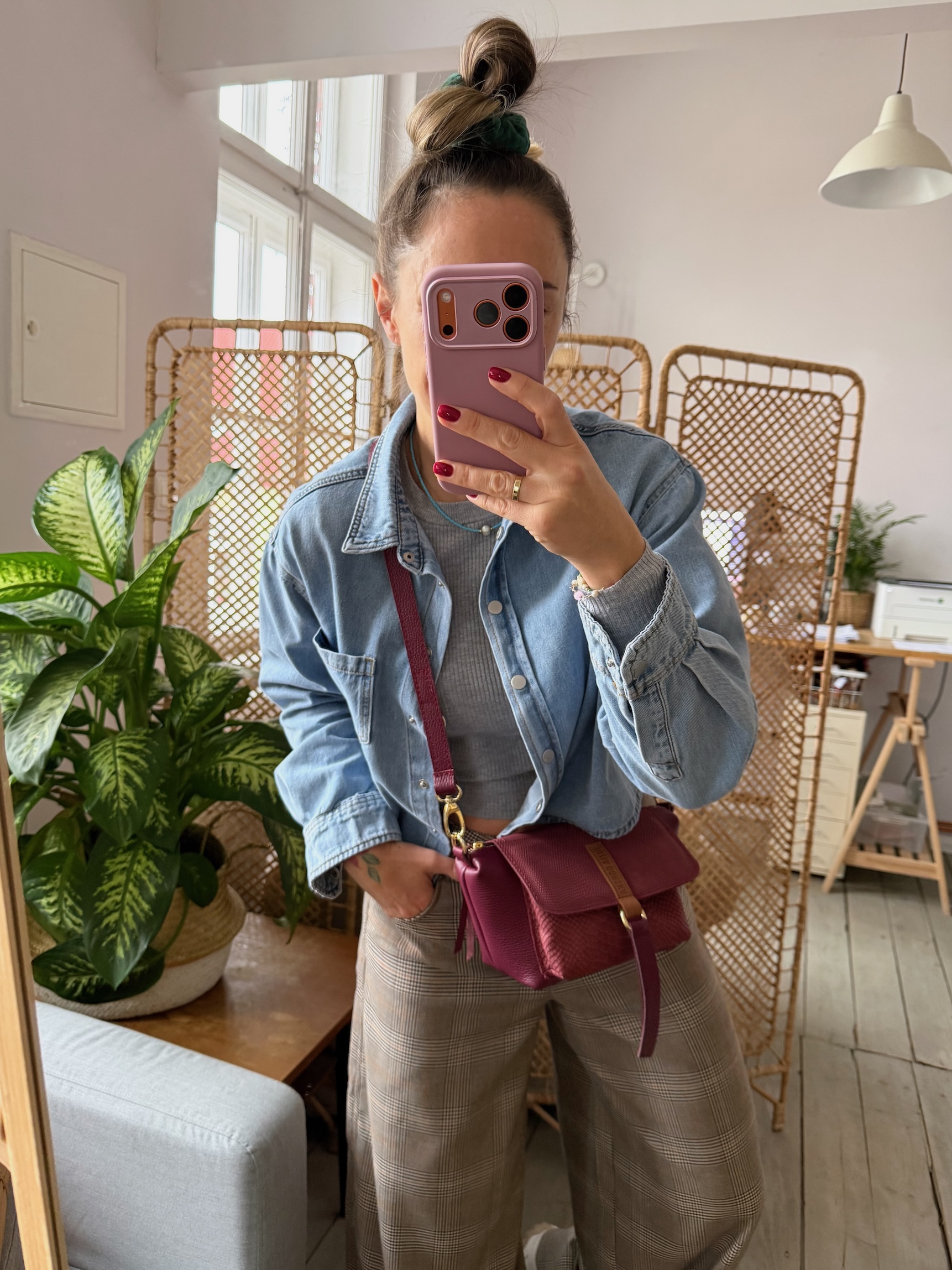 Na zewnątrz naszyta kieszonka idealna na telefon, zamykana na magnes.