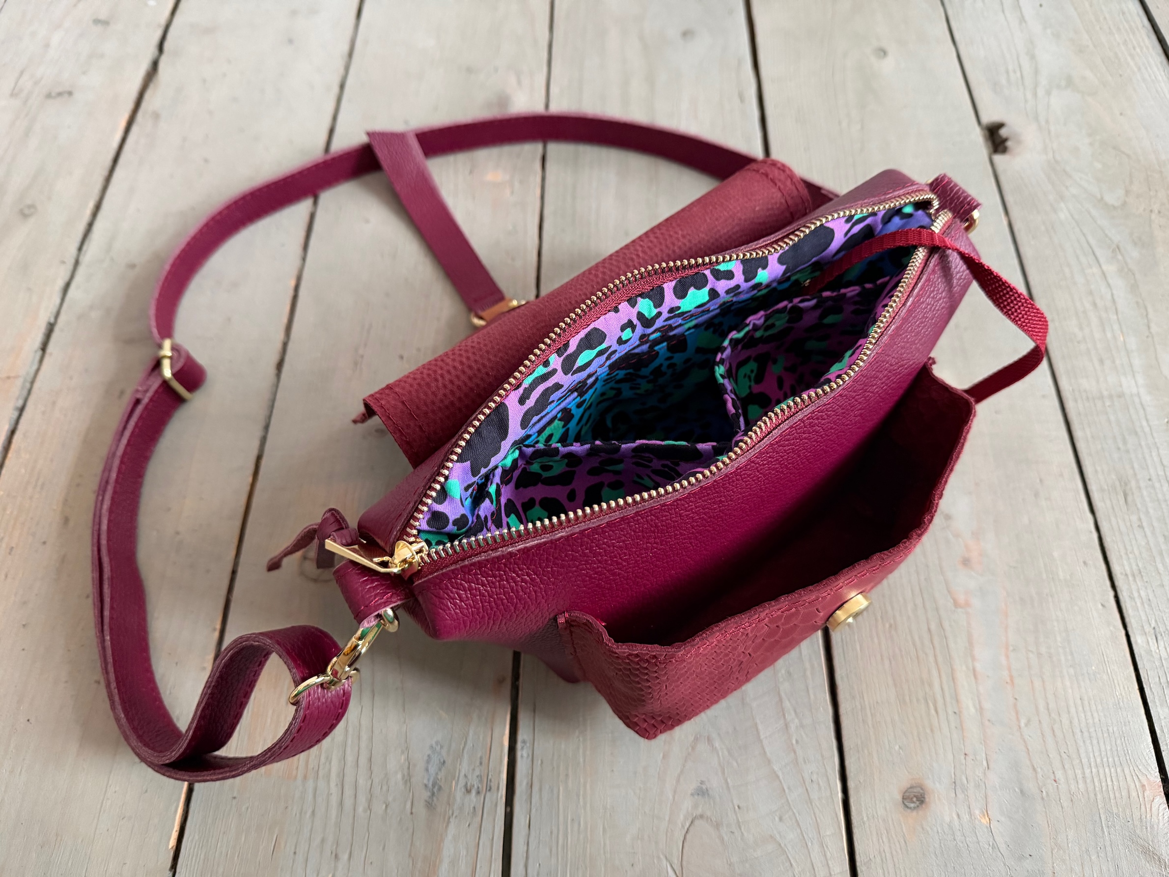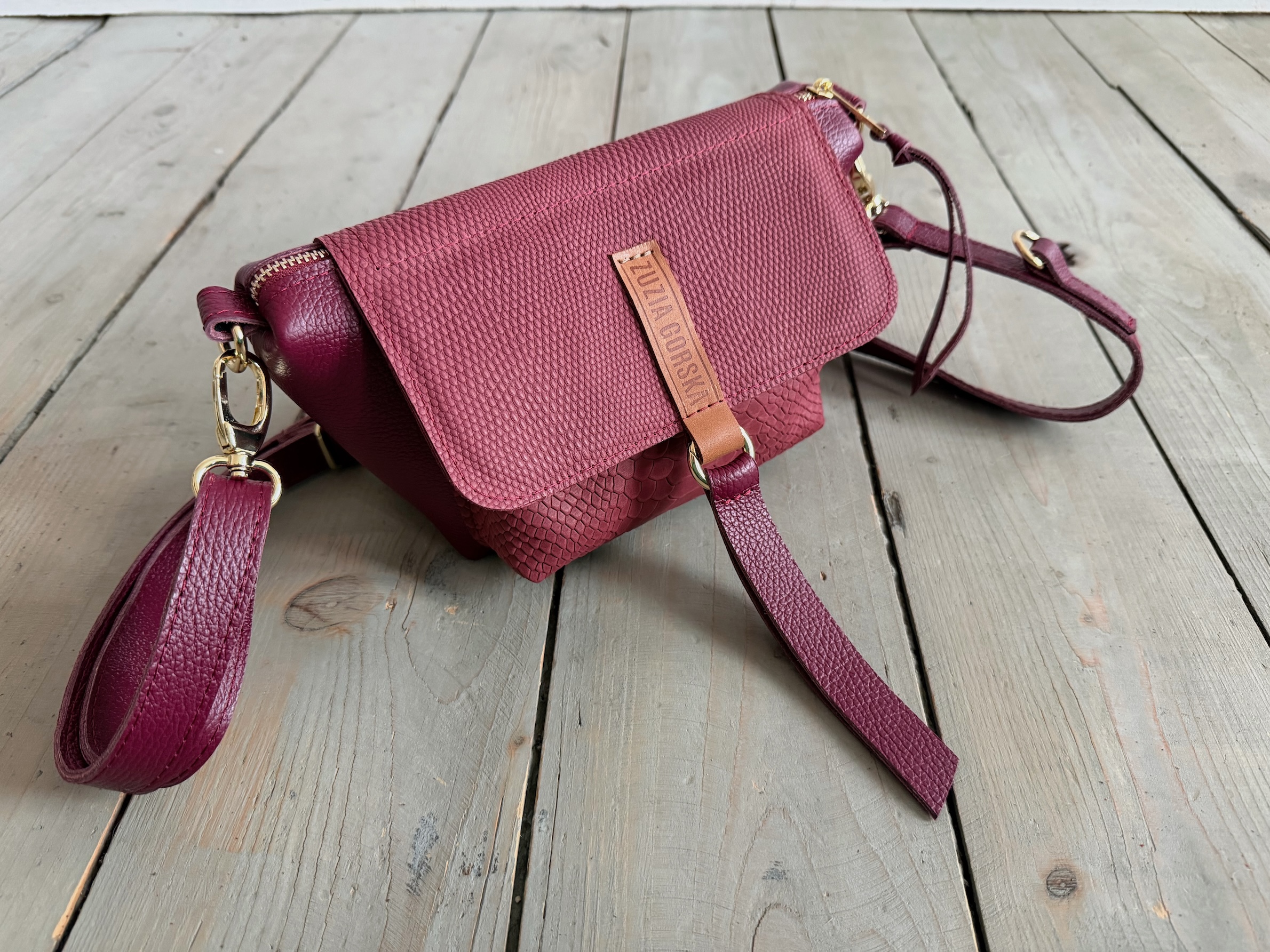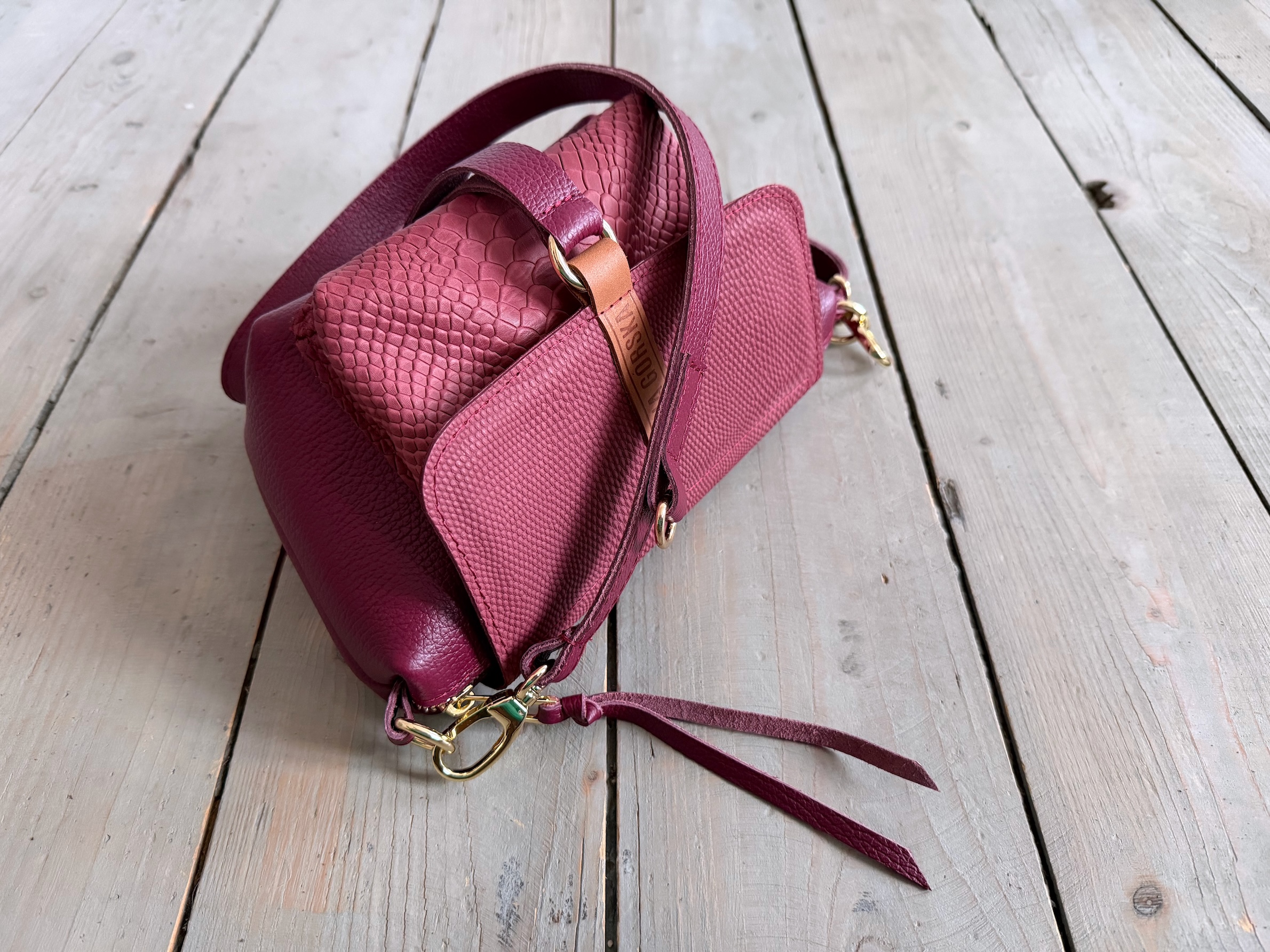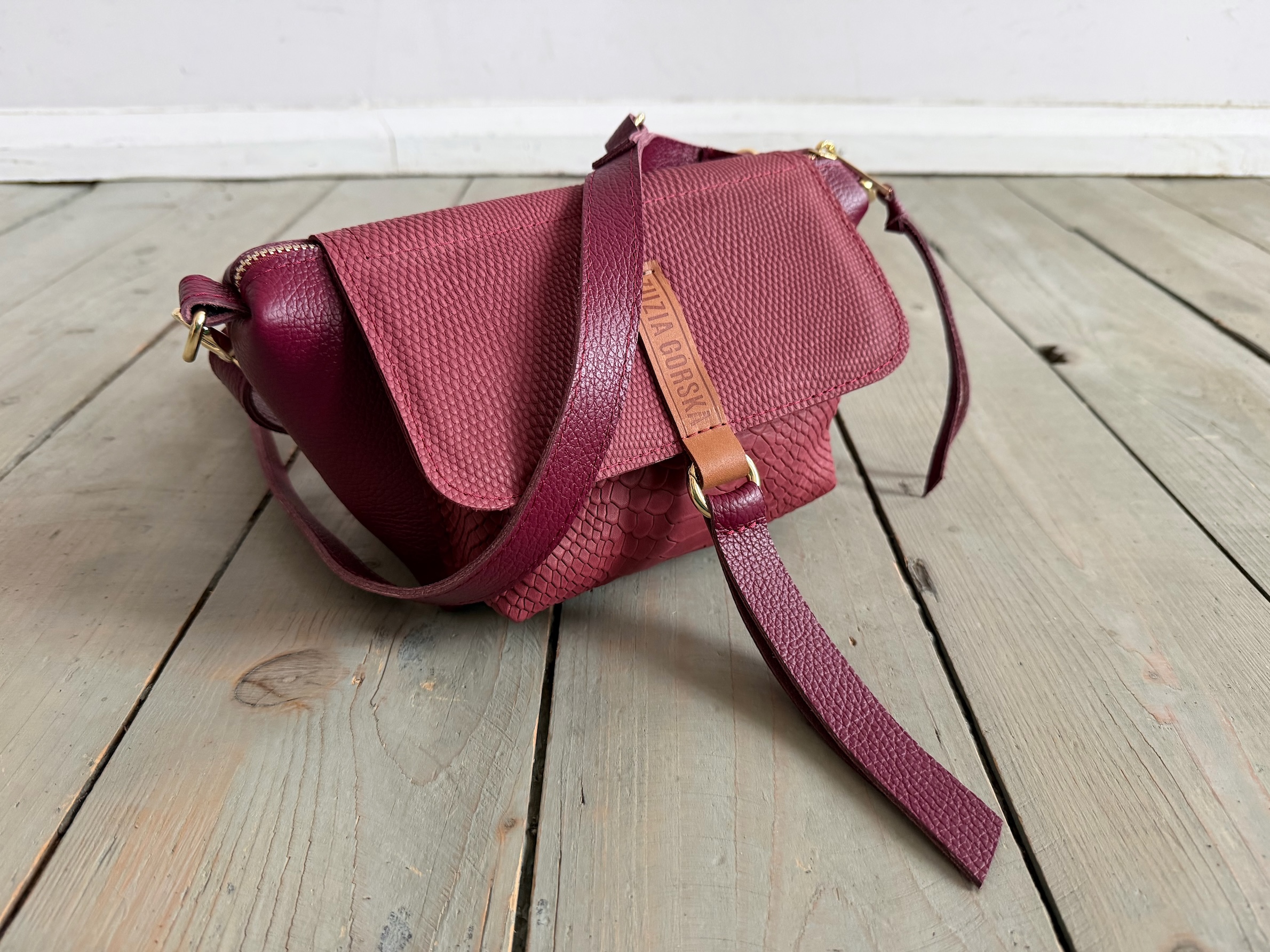 Uszyta ze skóry naturalnej licowej + bawełnianej podszewki.