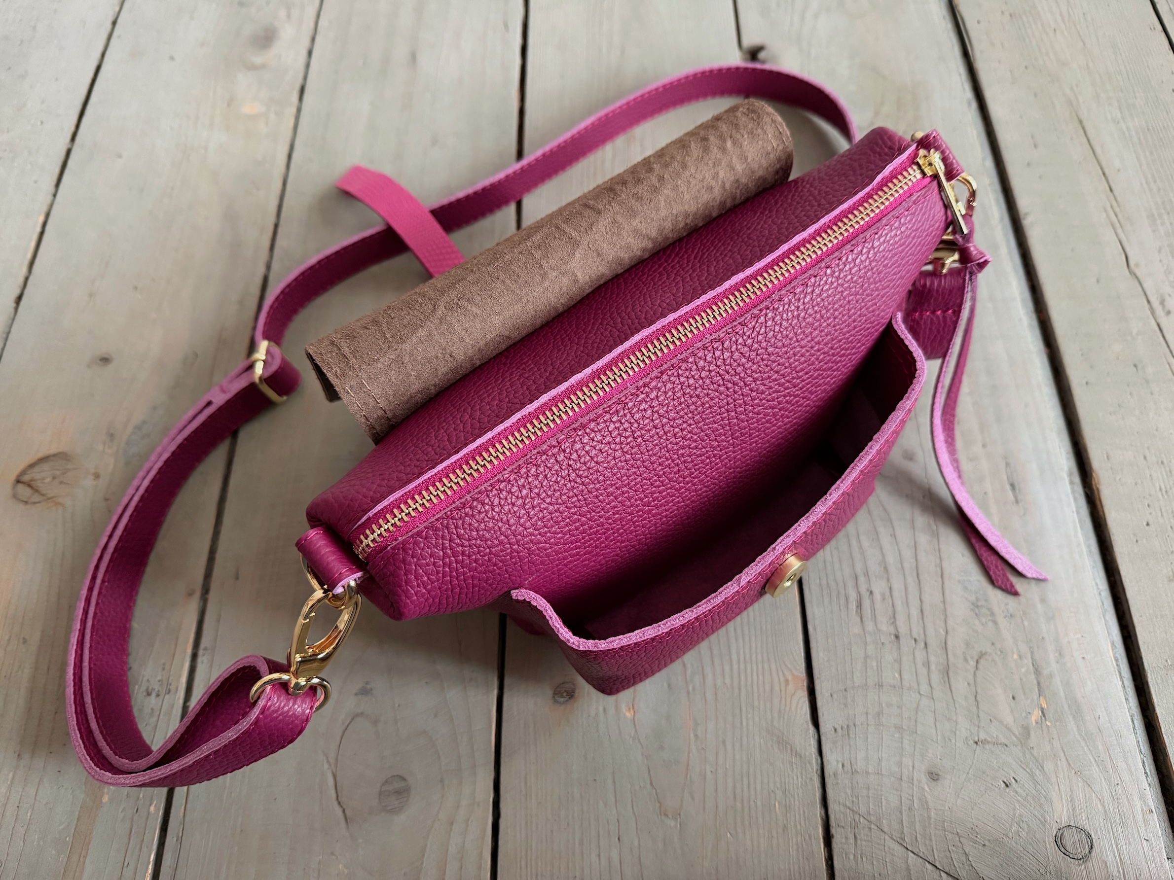 Uszyta ze skóry naturalnej licowej + bawełnianej podszewki.