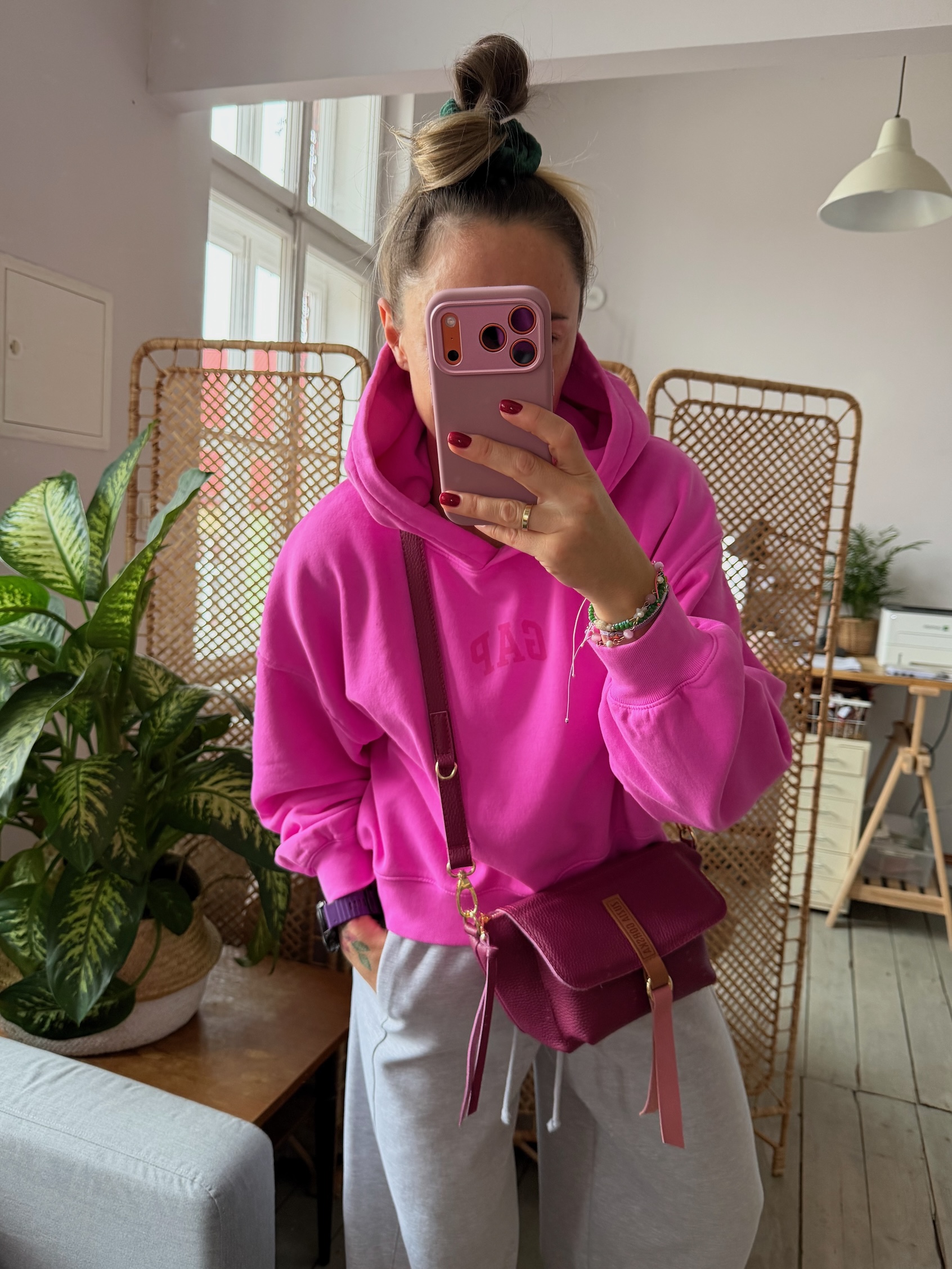 Na zewnątrz naszyta kieszonka idealna na telefon, zamykana na magnes.