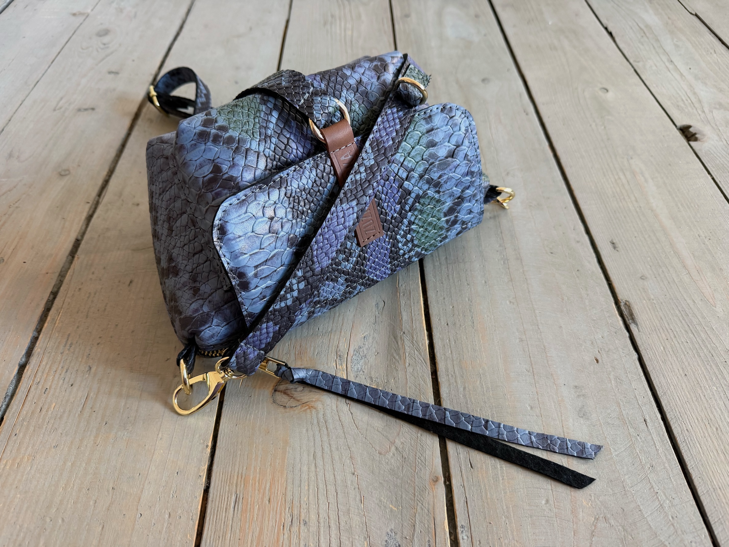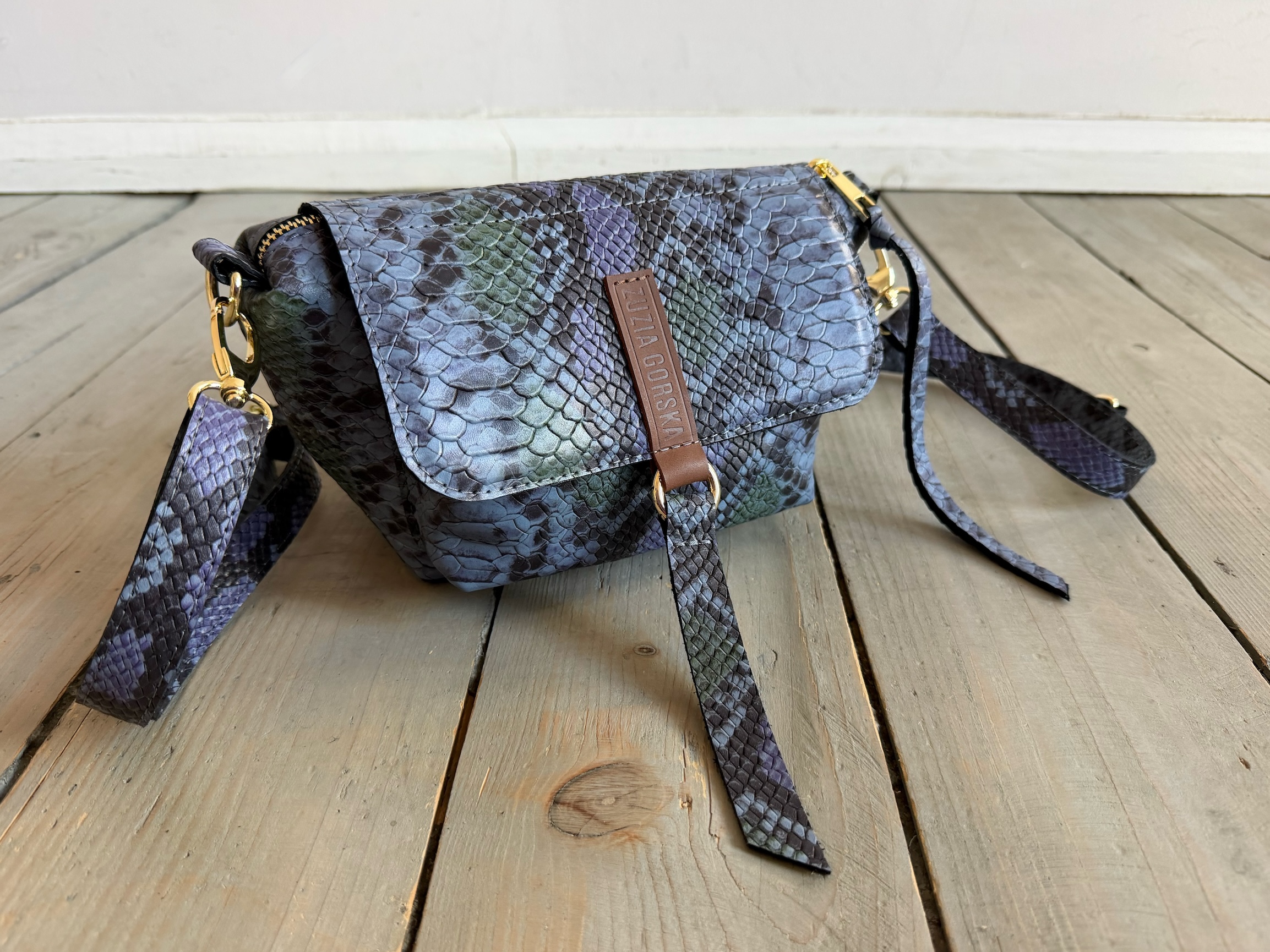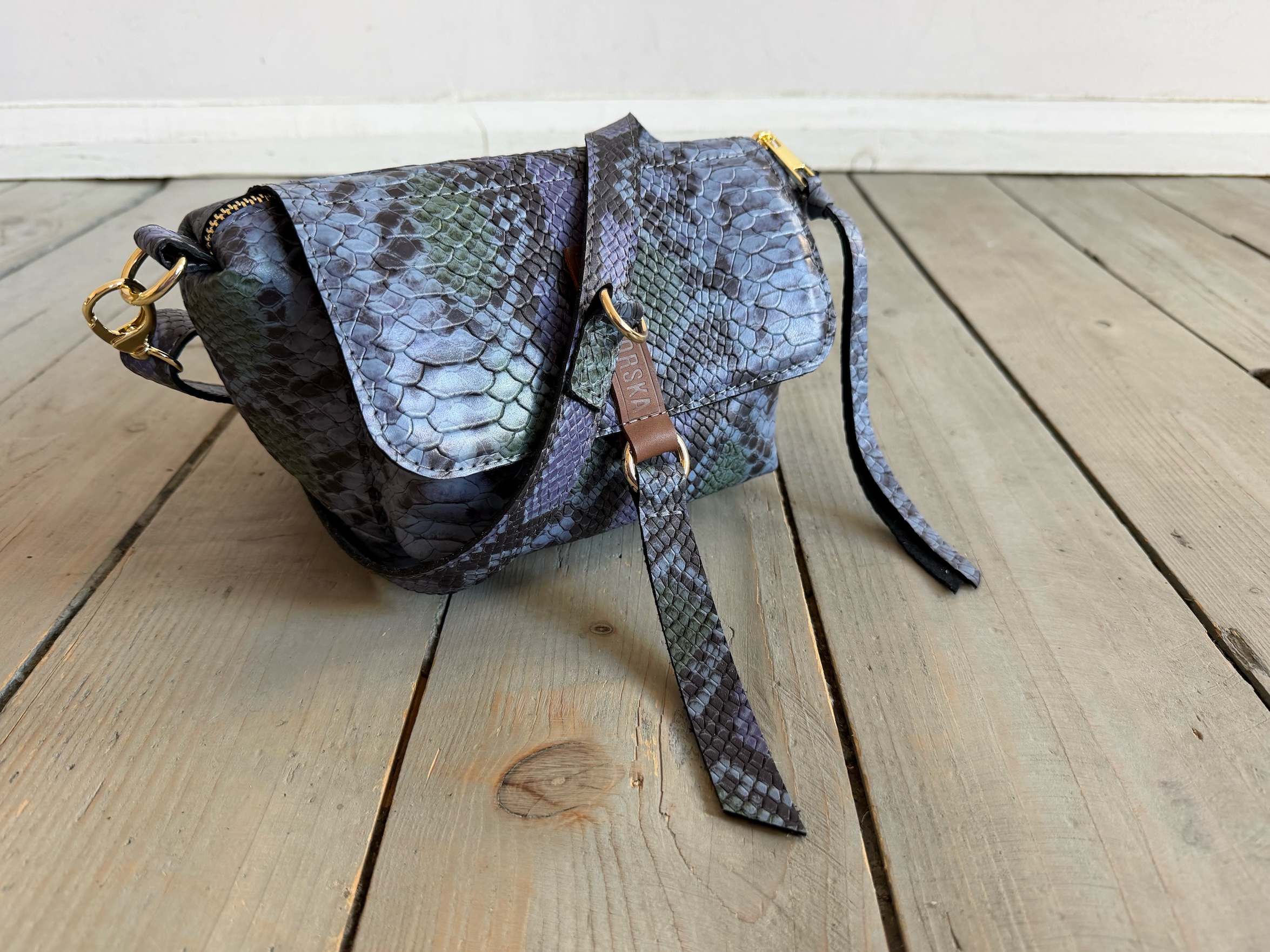 Uszyta ze skóry naturalnej licowej + bawełnianej podszewki.