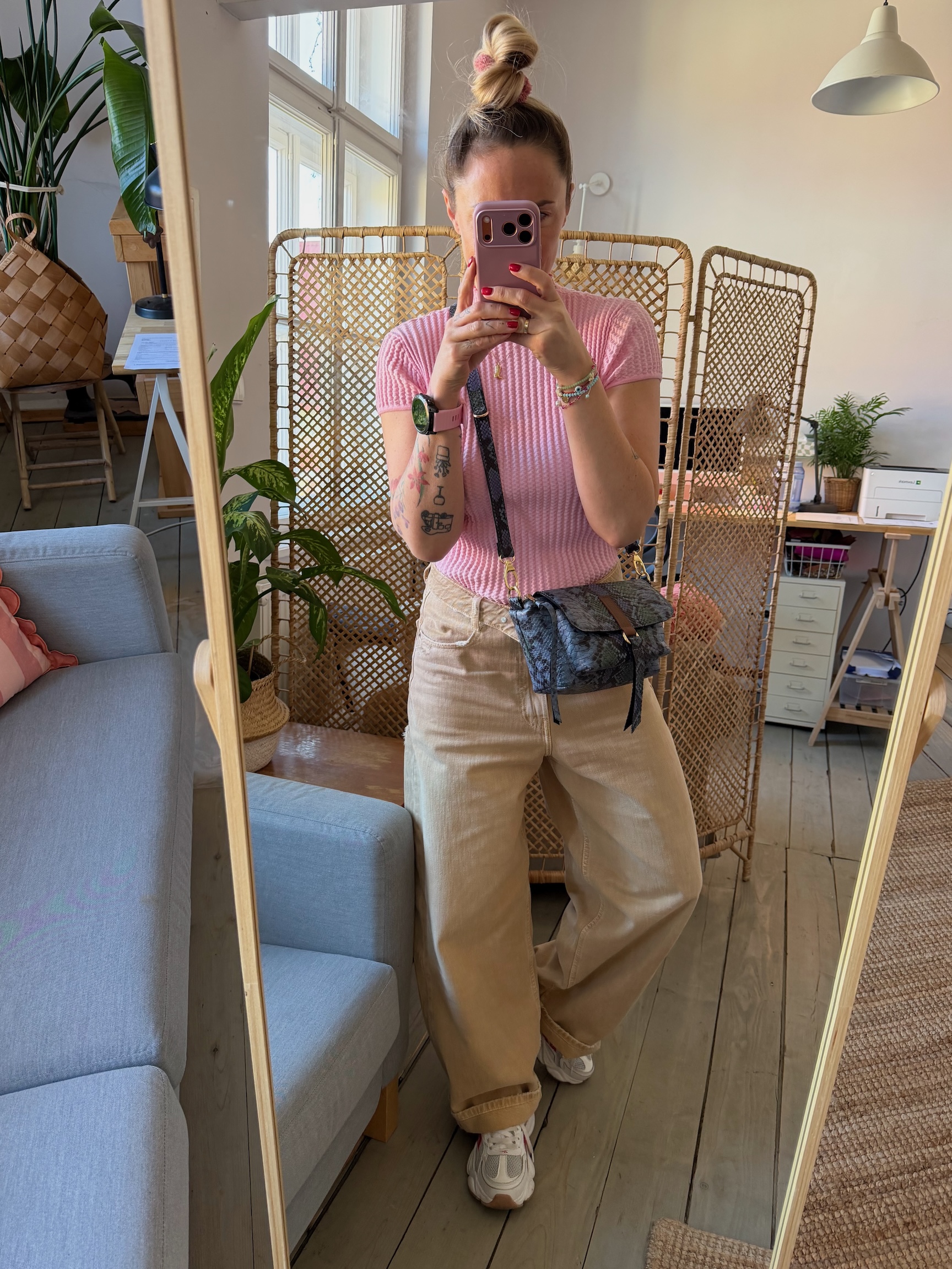 Na zewnątrz naszyta kieszonka idealna na telefon, zamykana na magnes.
