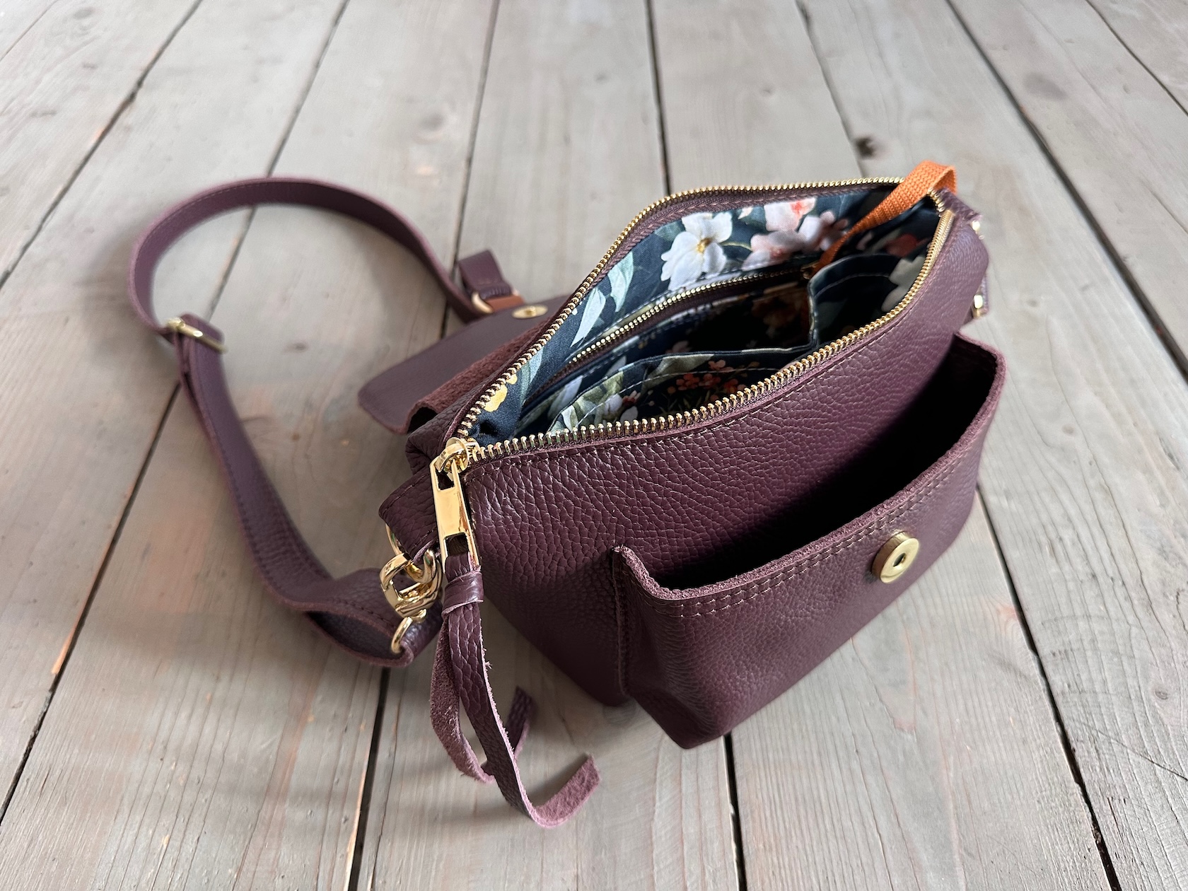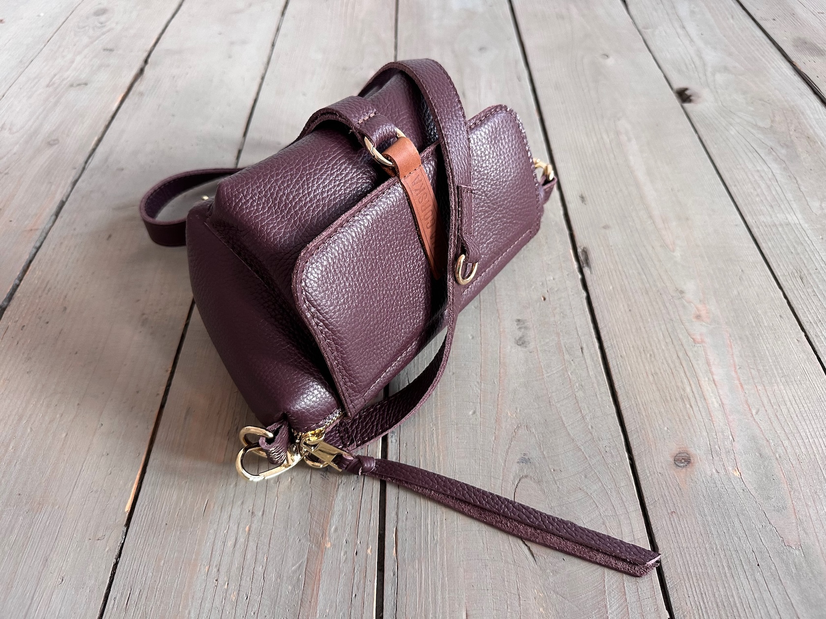 Uszyta ze skóry naturalnej licowej + bawełnianej podszewki.