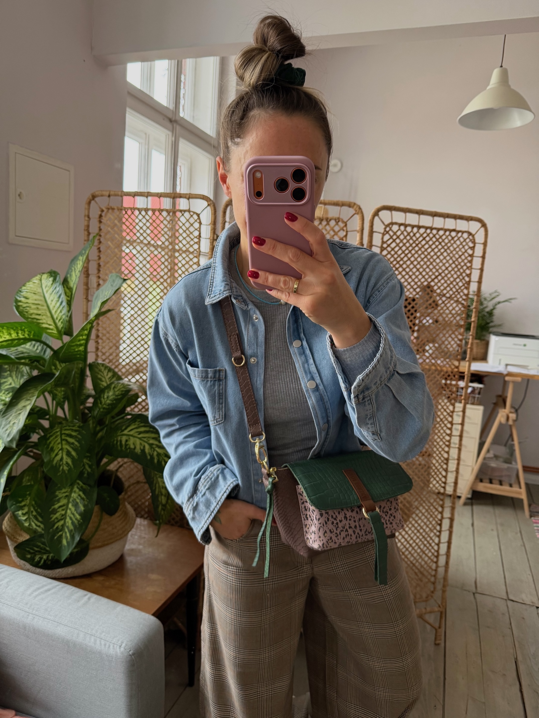 Na zewnątrz naszyta kieszonka idealna na telefon, zamykana na magnes.