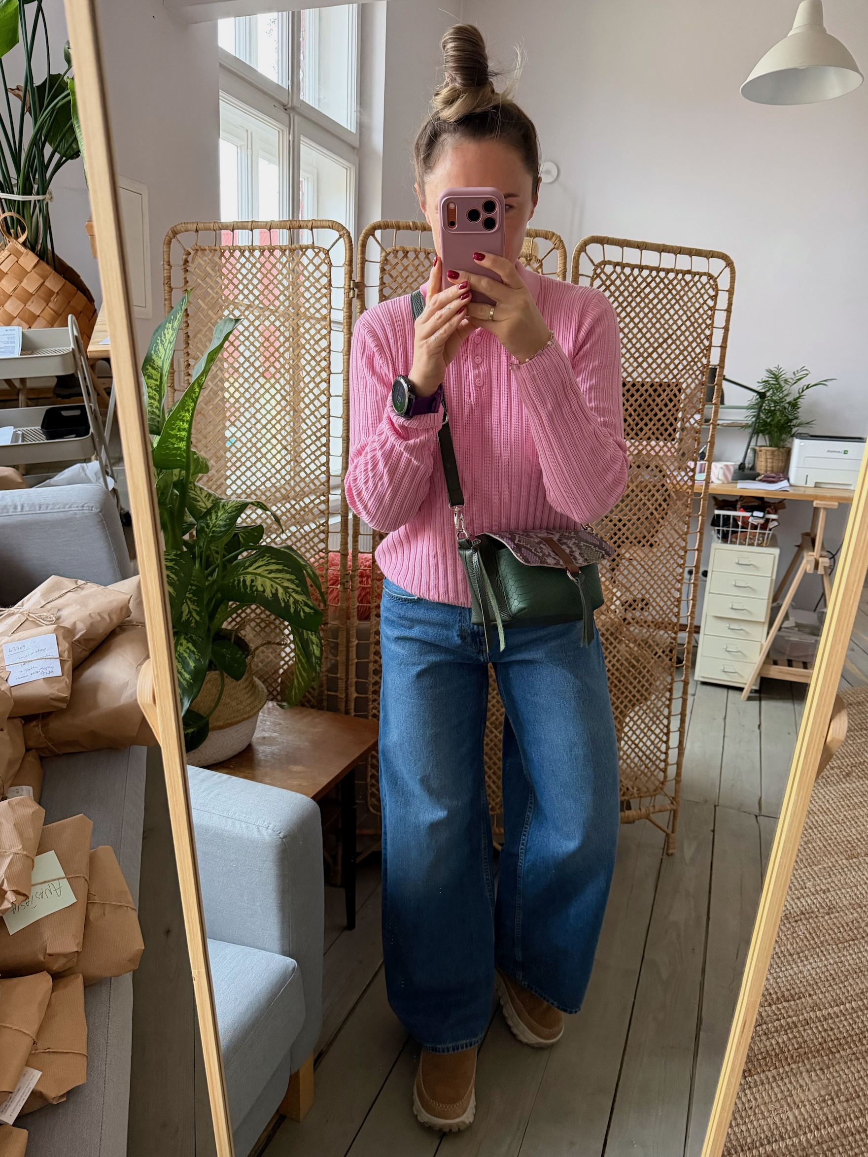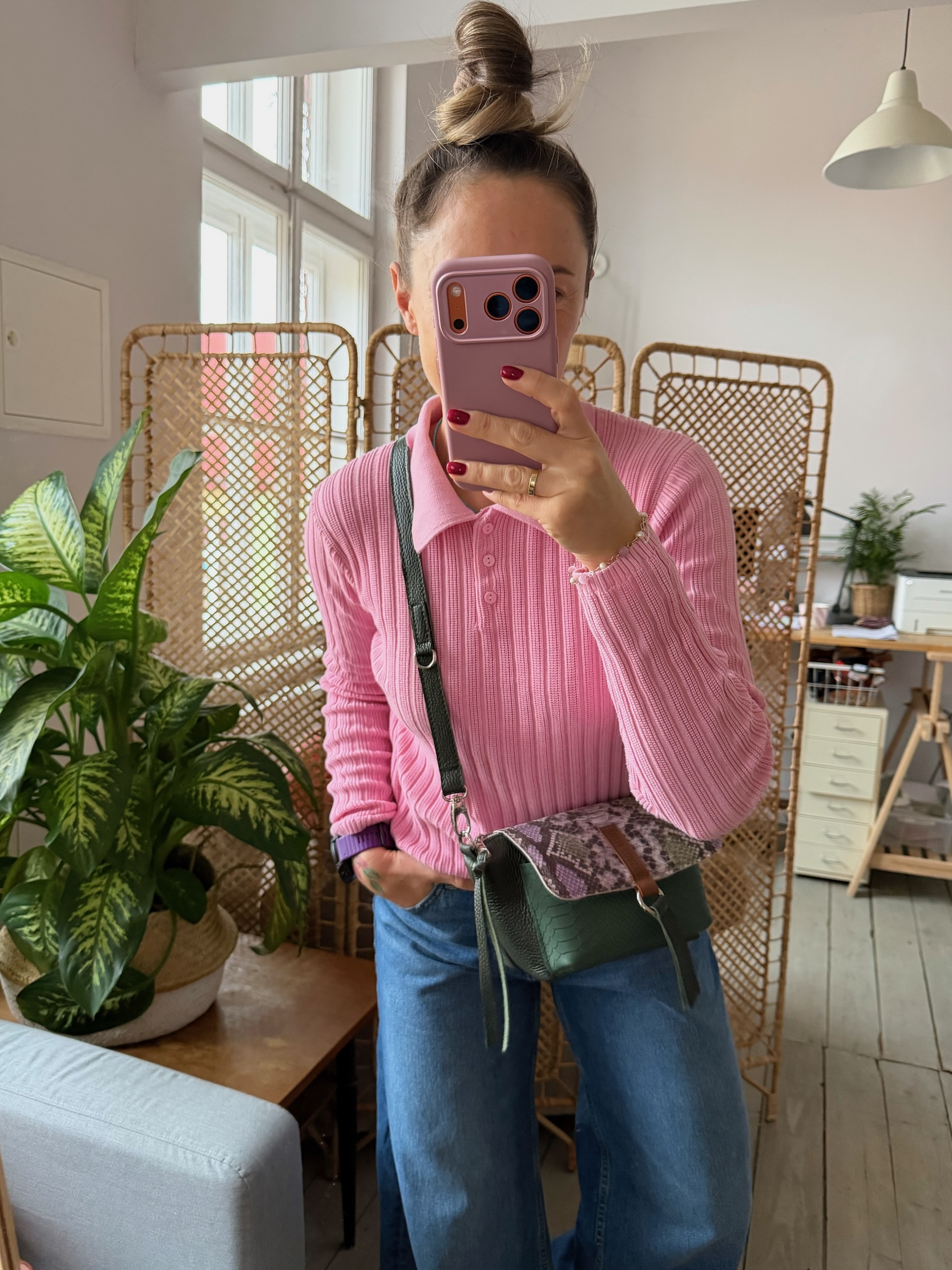 Na zewnątrz naszyta kieszonka idealna na telefon, zamykana na magnes.