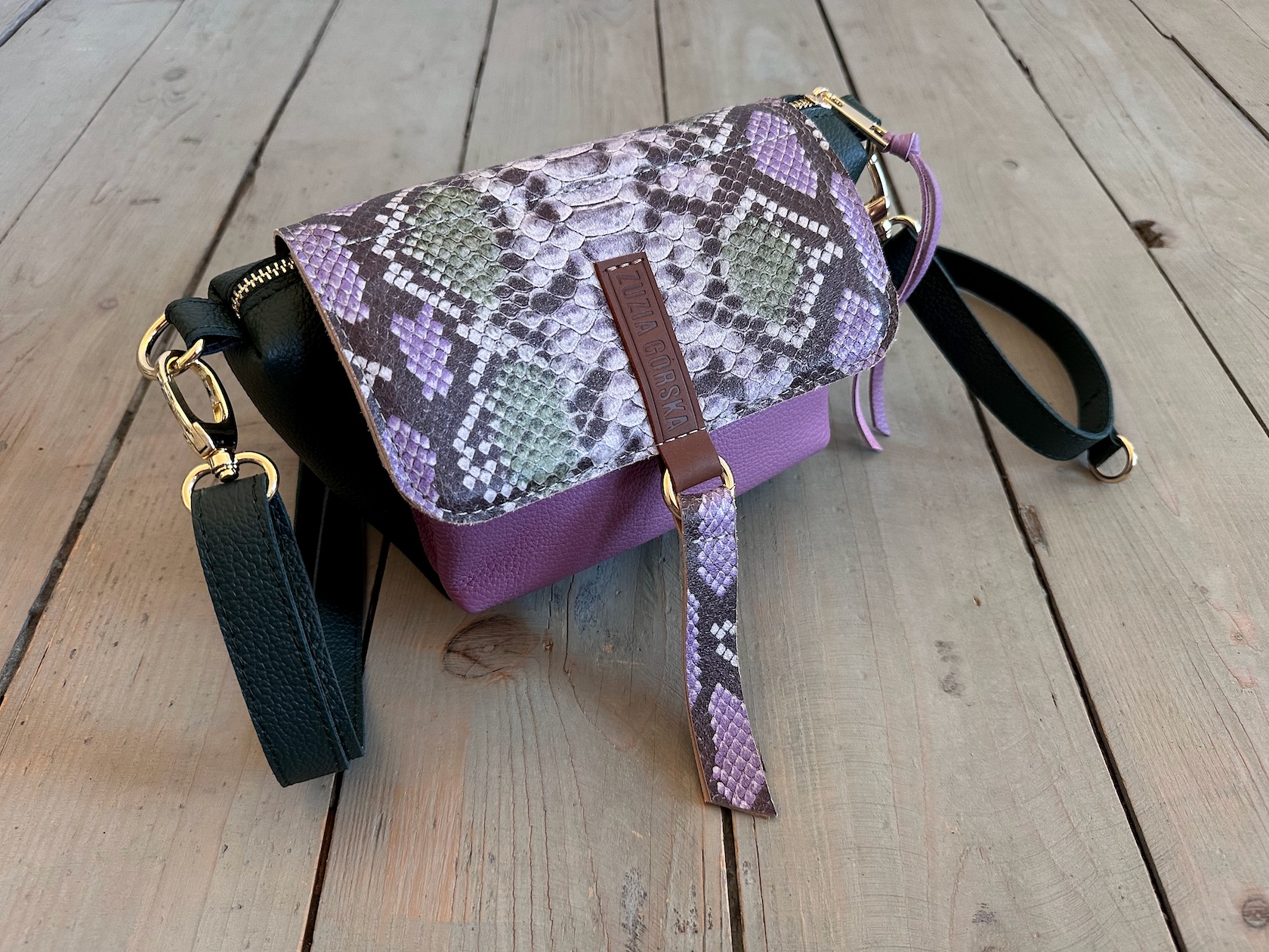 Uszyta ze skóry naturalnej licowej + bawełnianej podszewki.