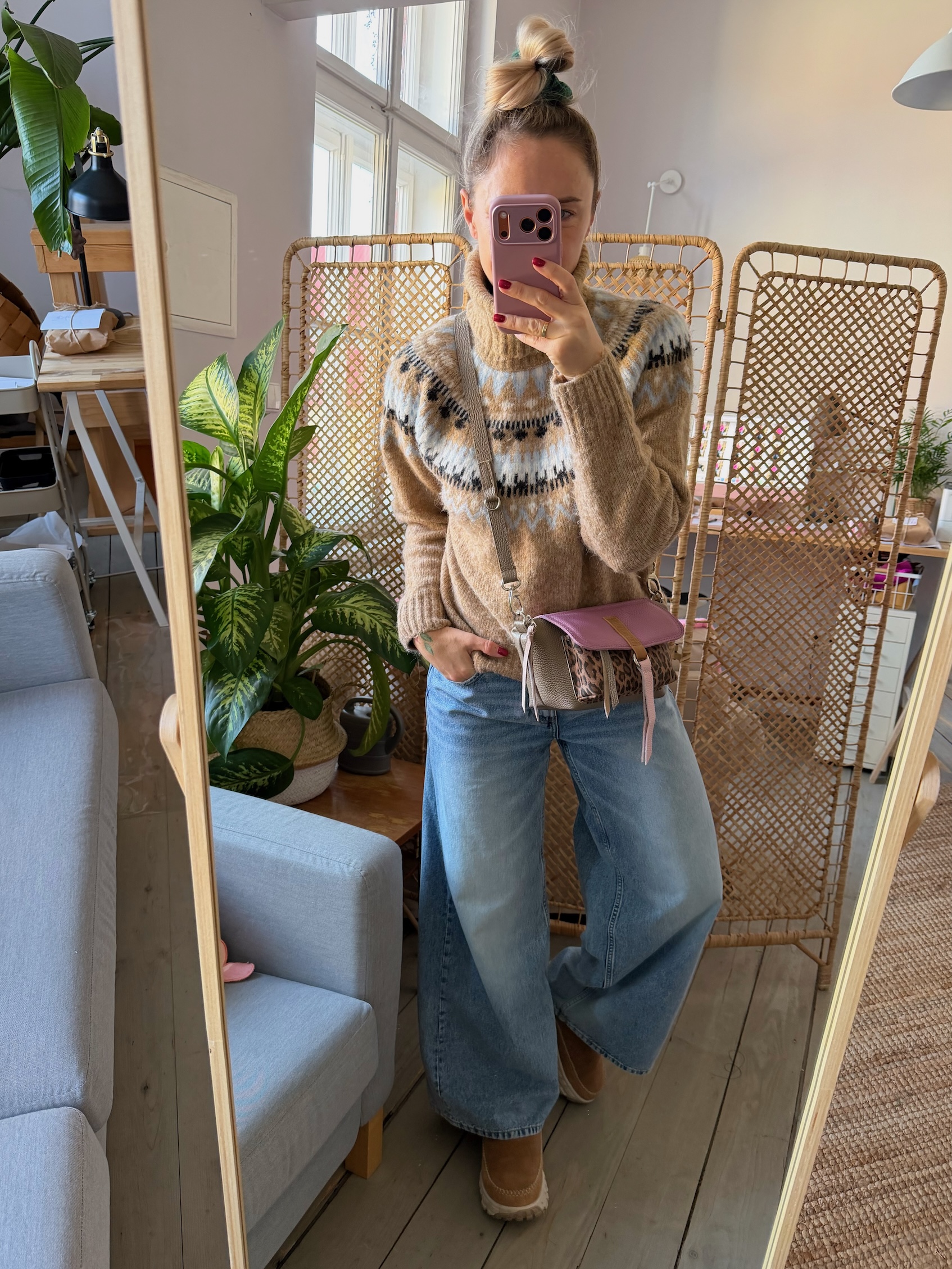 Na zewnątrz naszyta kieszonka idealna na telefon, zamykana na magnes.