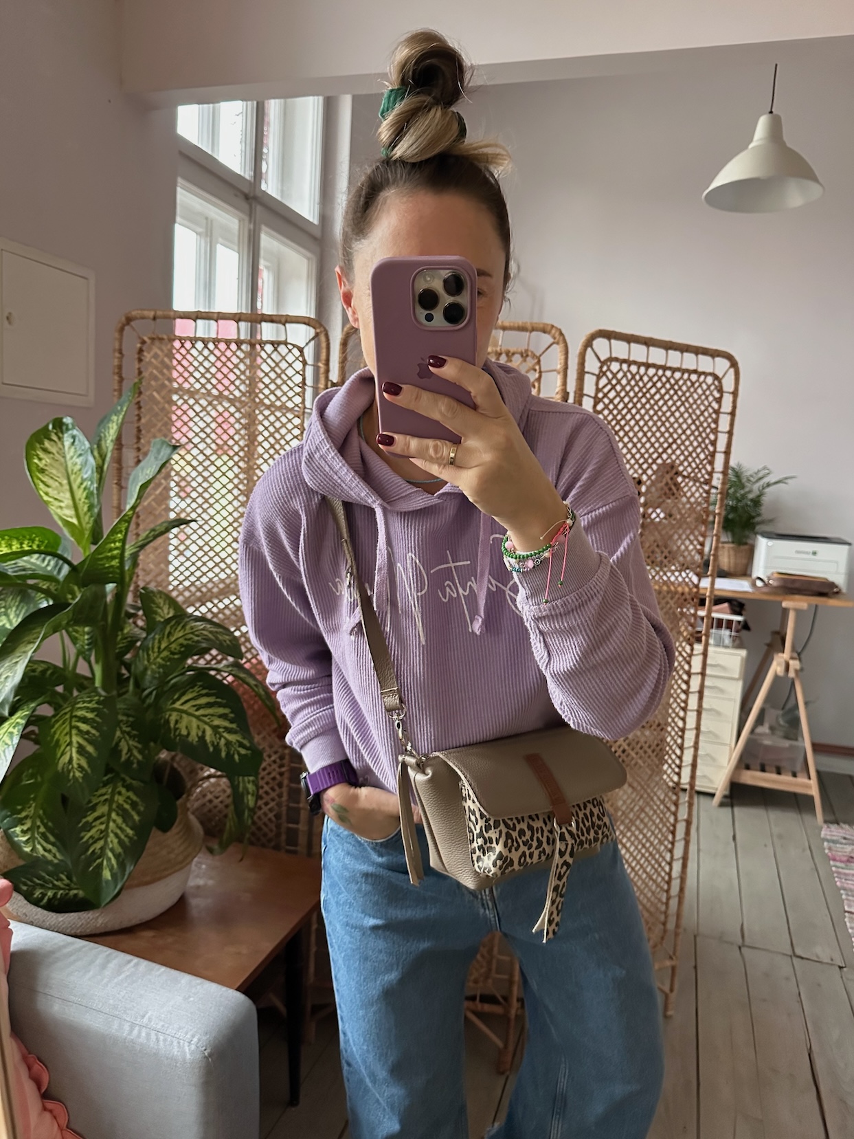 Na zewnątrz naszyta kieszonka idealna na telefon, zamykana na magnes.