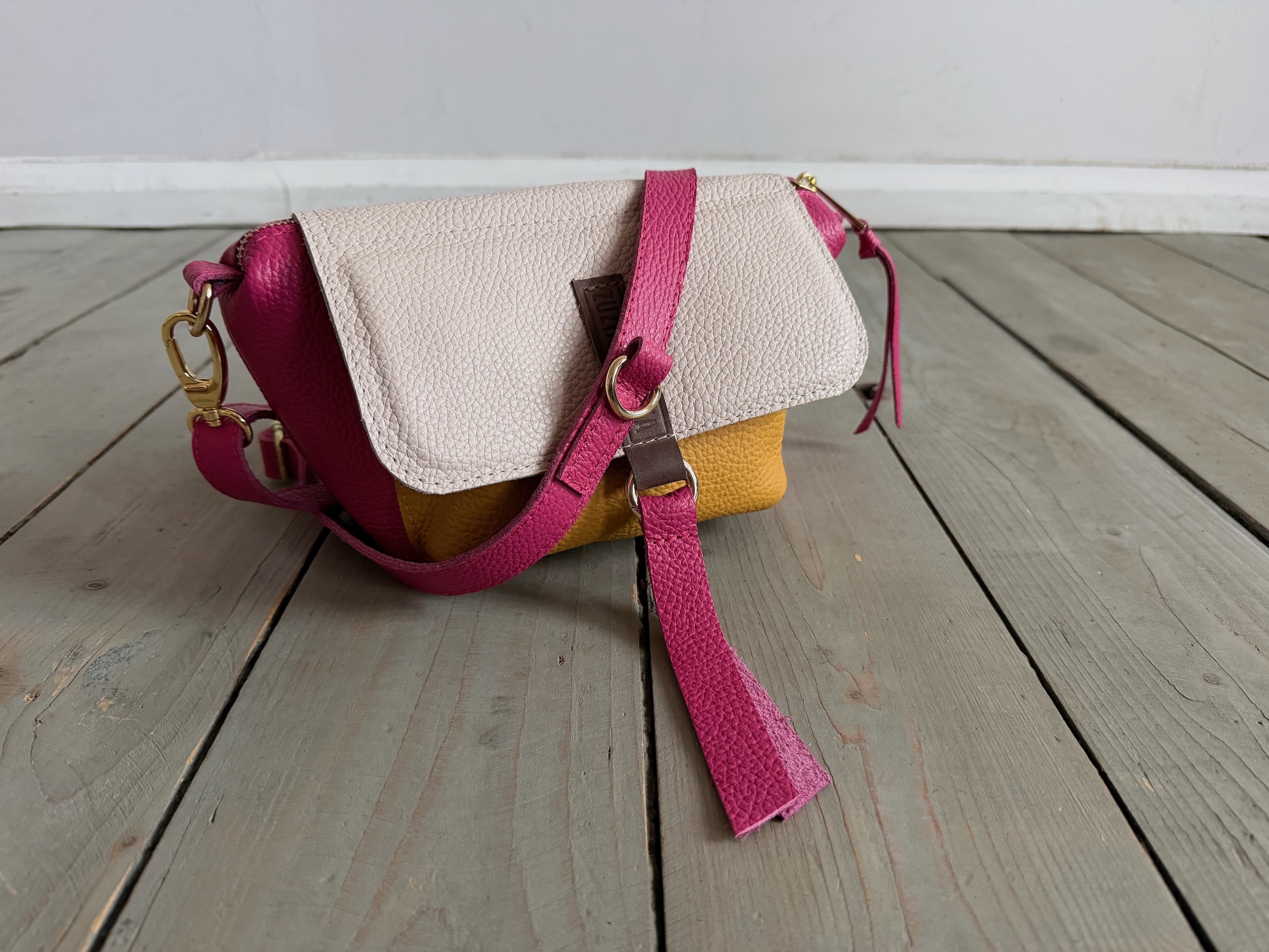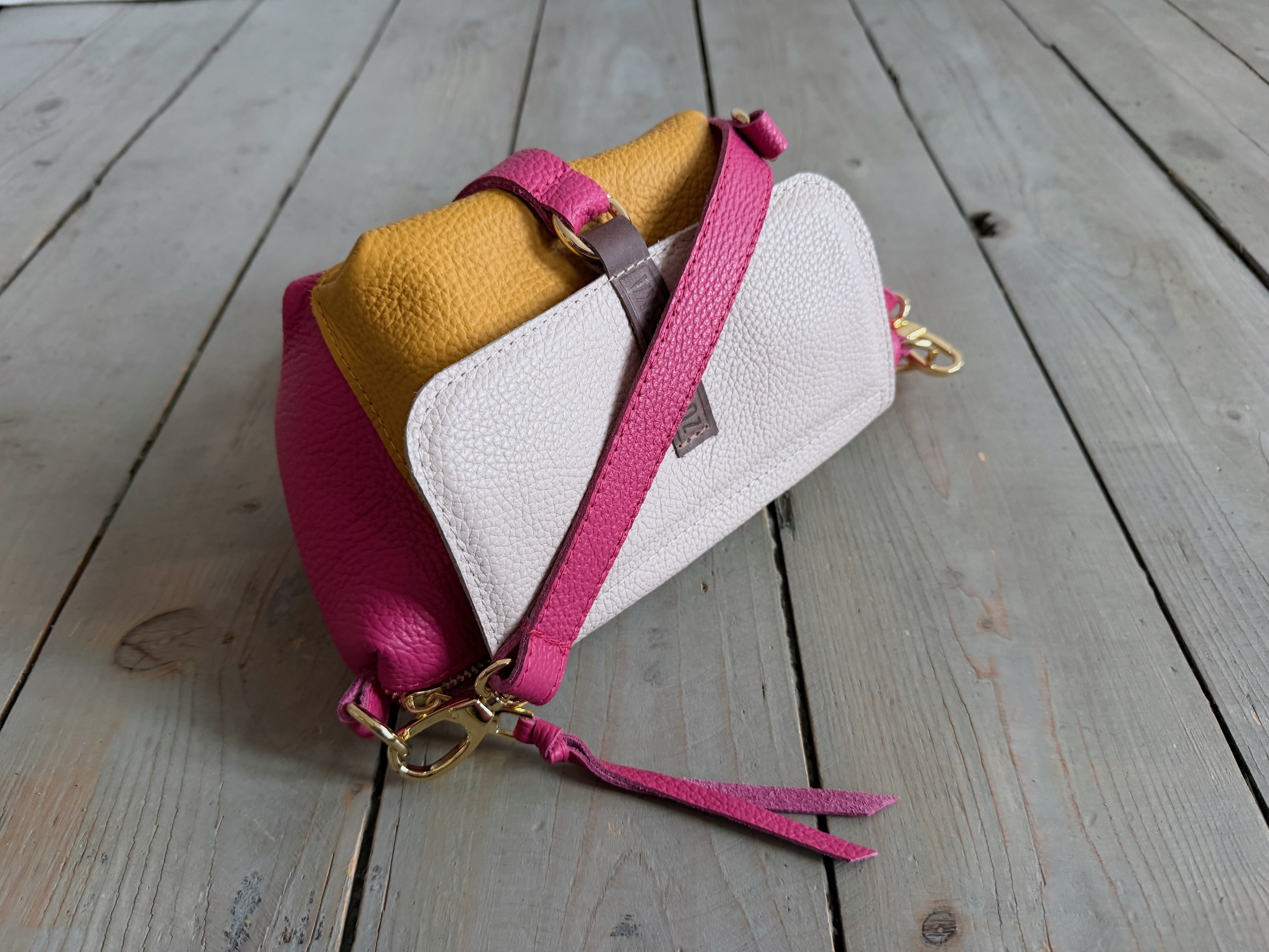 Uszyta ze skóry naturalnej licowej + bawełnianej podszewki.
