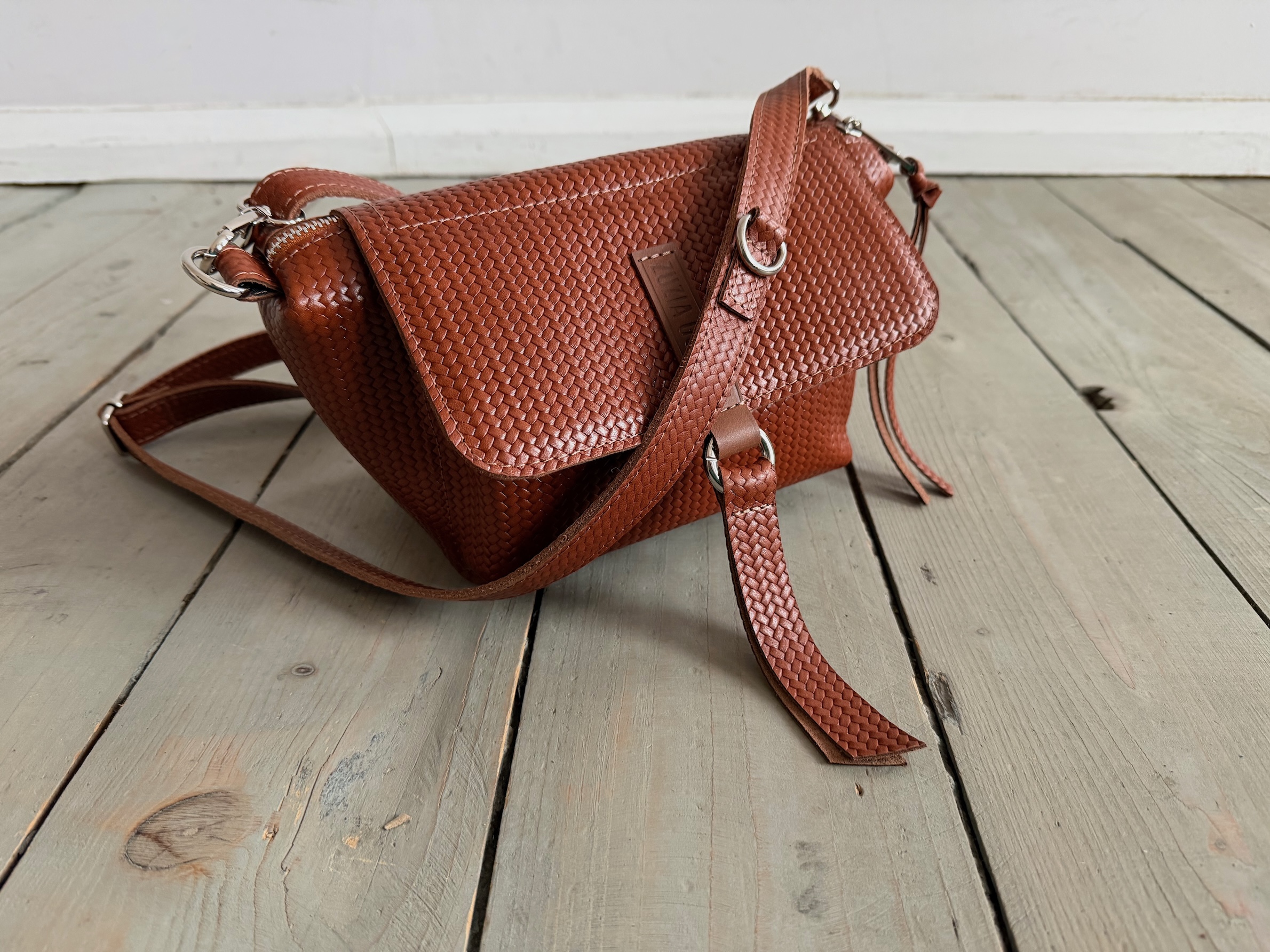 Uszyta ze skóry naturalnej licowej + bawełnianej podszewki.