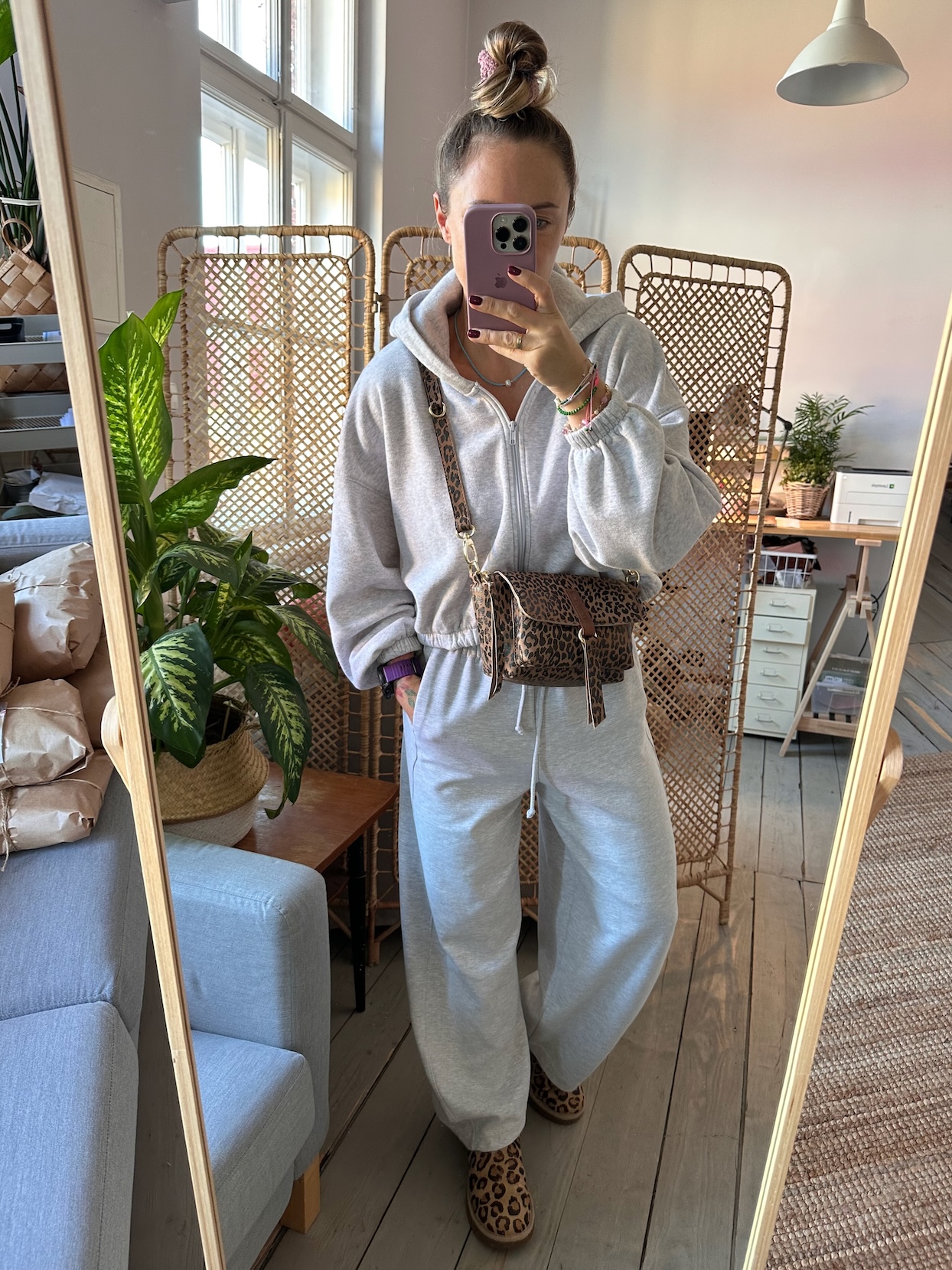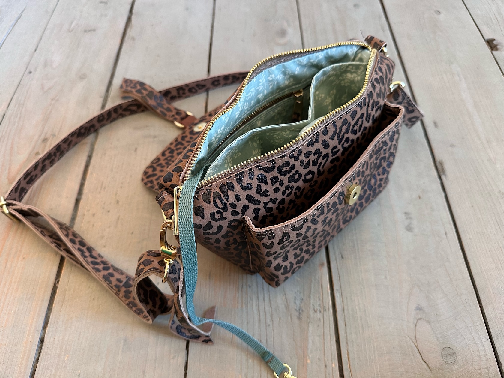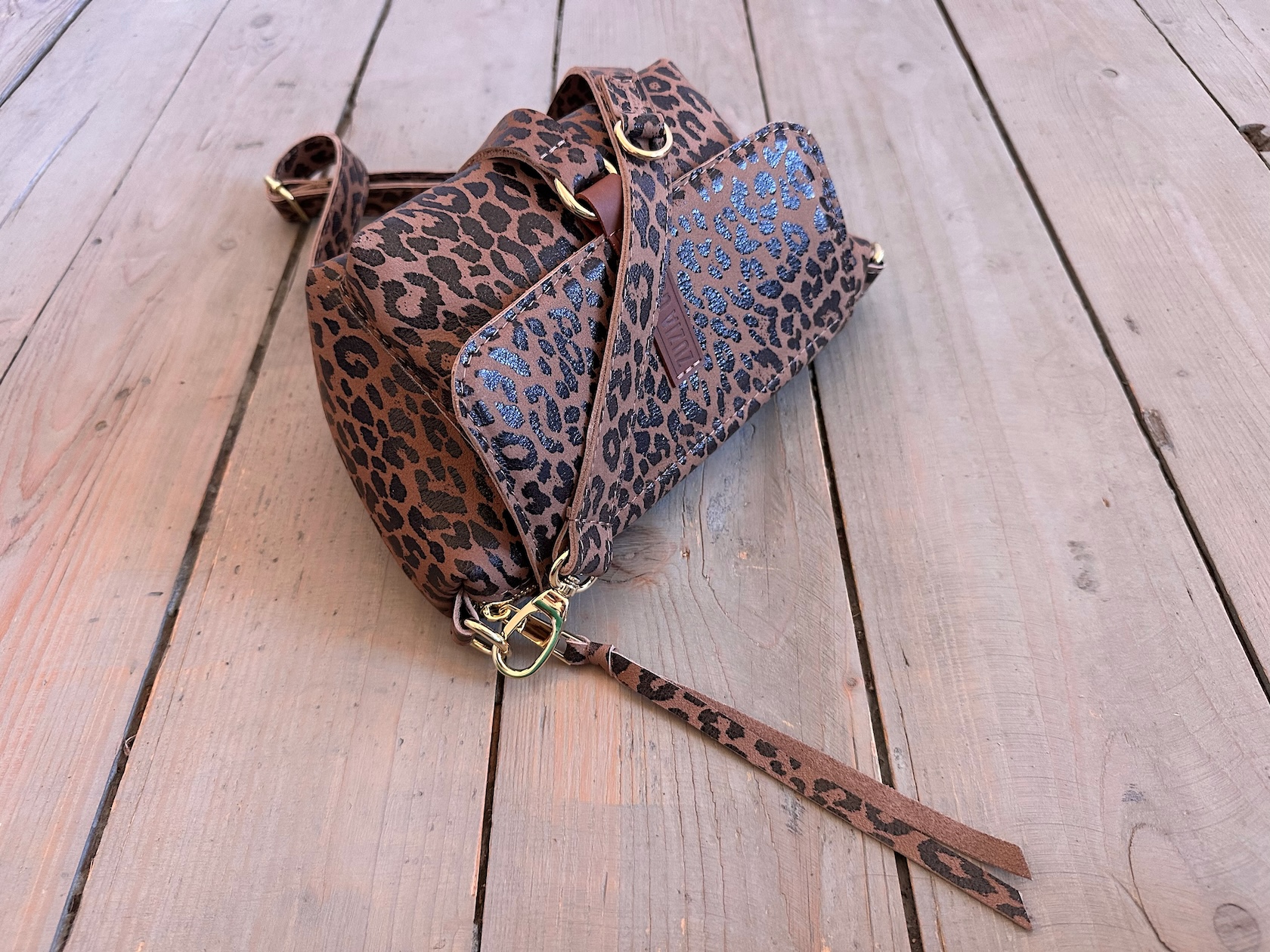Uszyta ze skóry naturalnej nubukowej + bawełnianej podszewki.