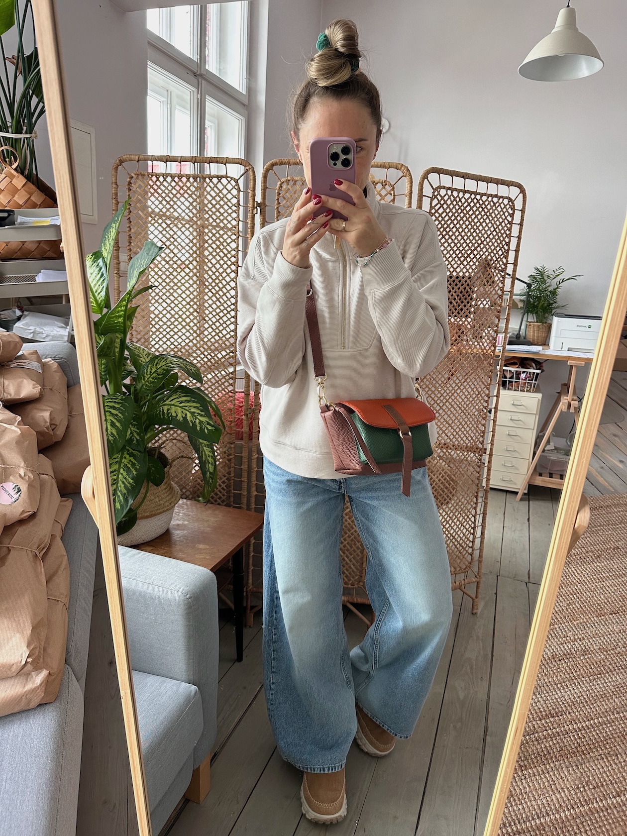 Na zewnątrz naszyta kieszonka idealna na telefon, zamykana na magnes.
