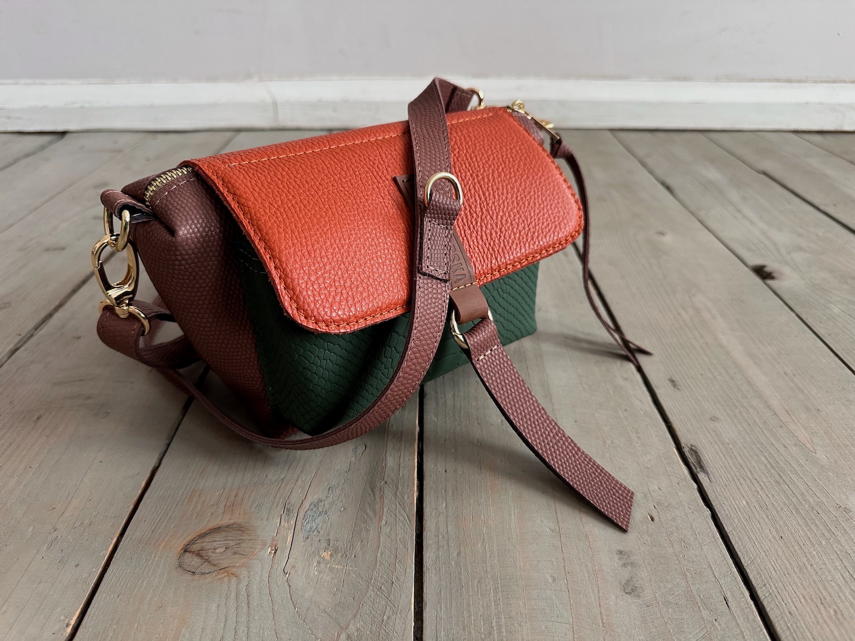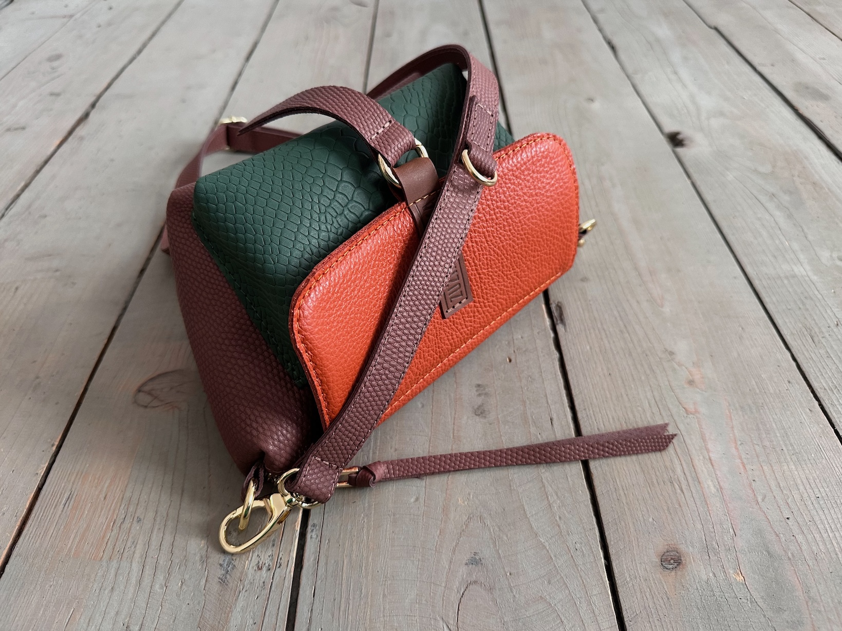 Uszyta ze skóry naturalnej licowej + bawełnianej podszewki.