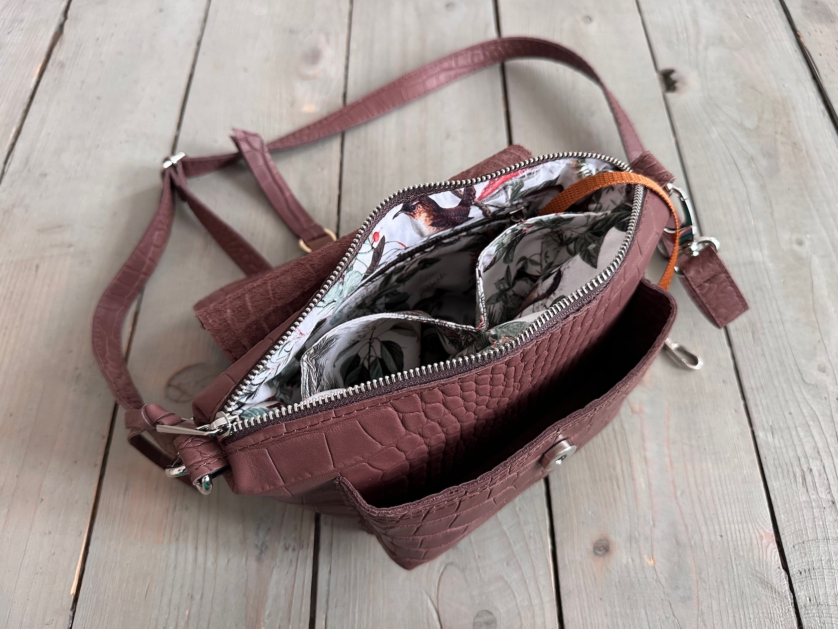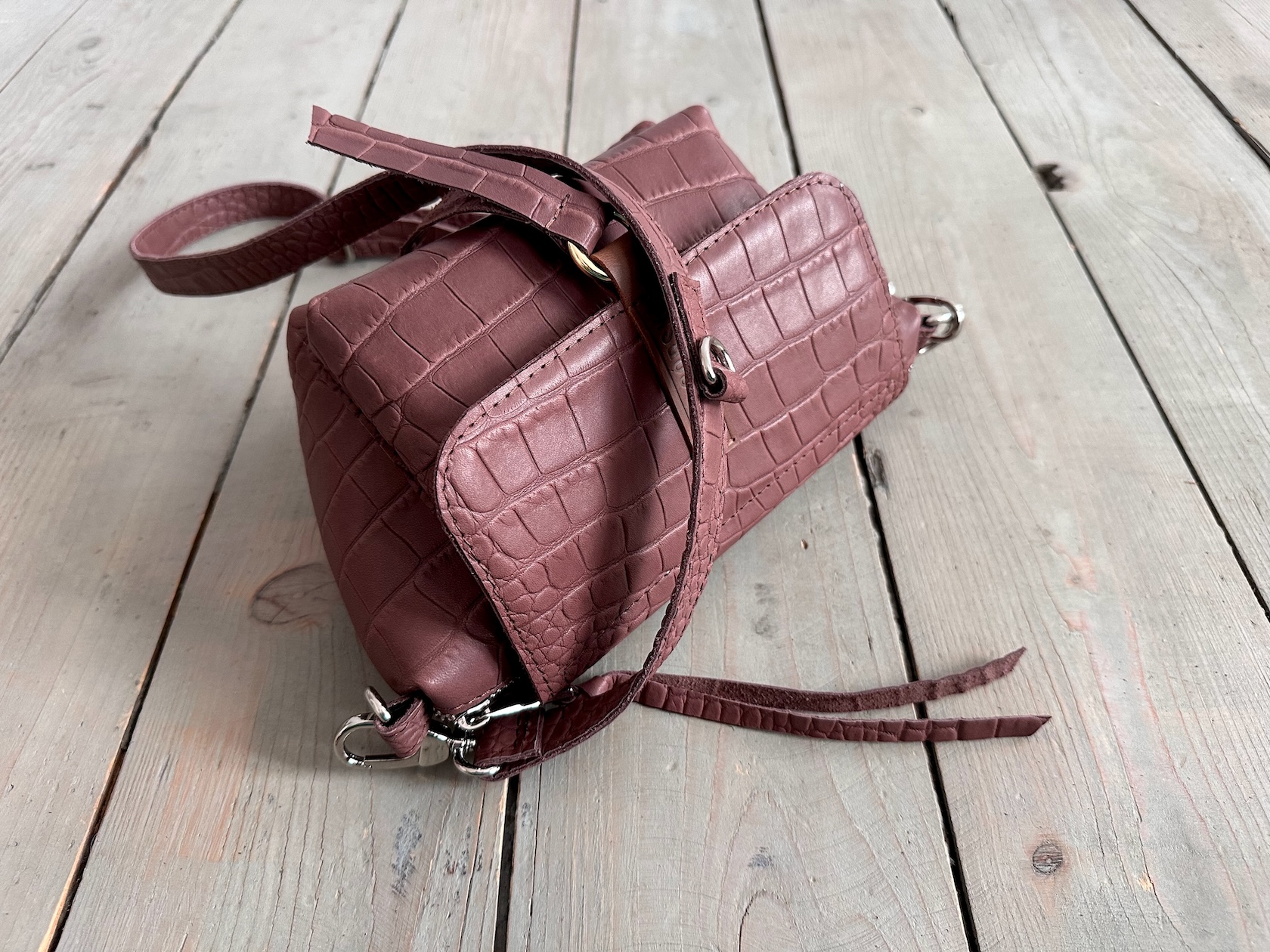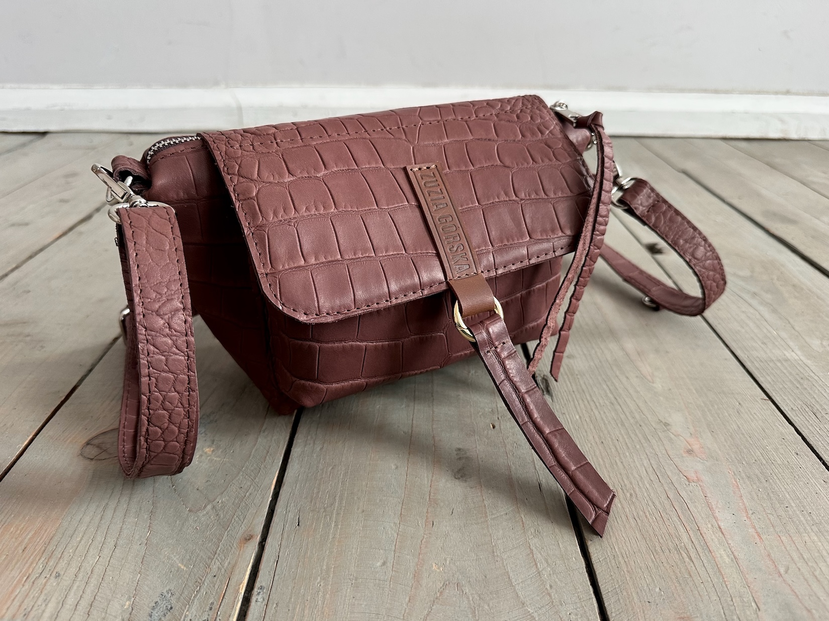 Uszyta ze skóry naturalnej licowej + bawełnianej podszewki.