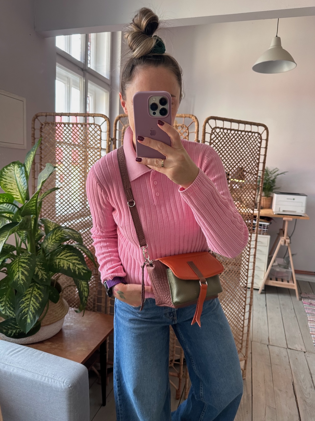 Na zewnątrz naszyta kieszonka idealna na telefon, zamykana na magnes.