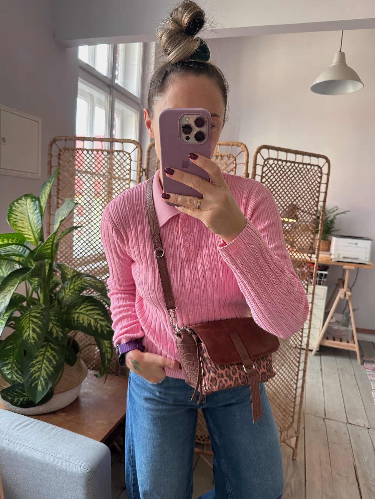 Na zewnątrz naszyta kieszonka idealna na telefon, zamykana na magnes.