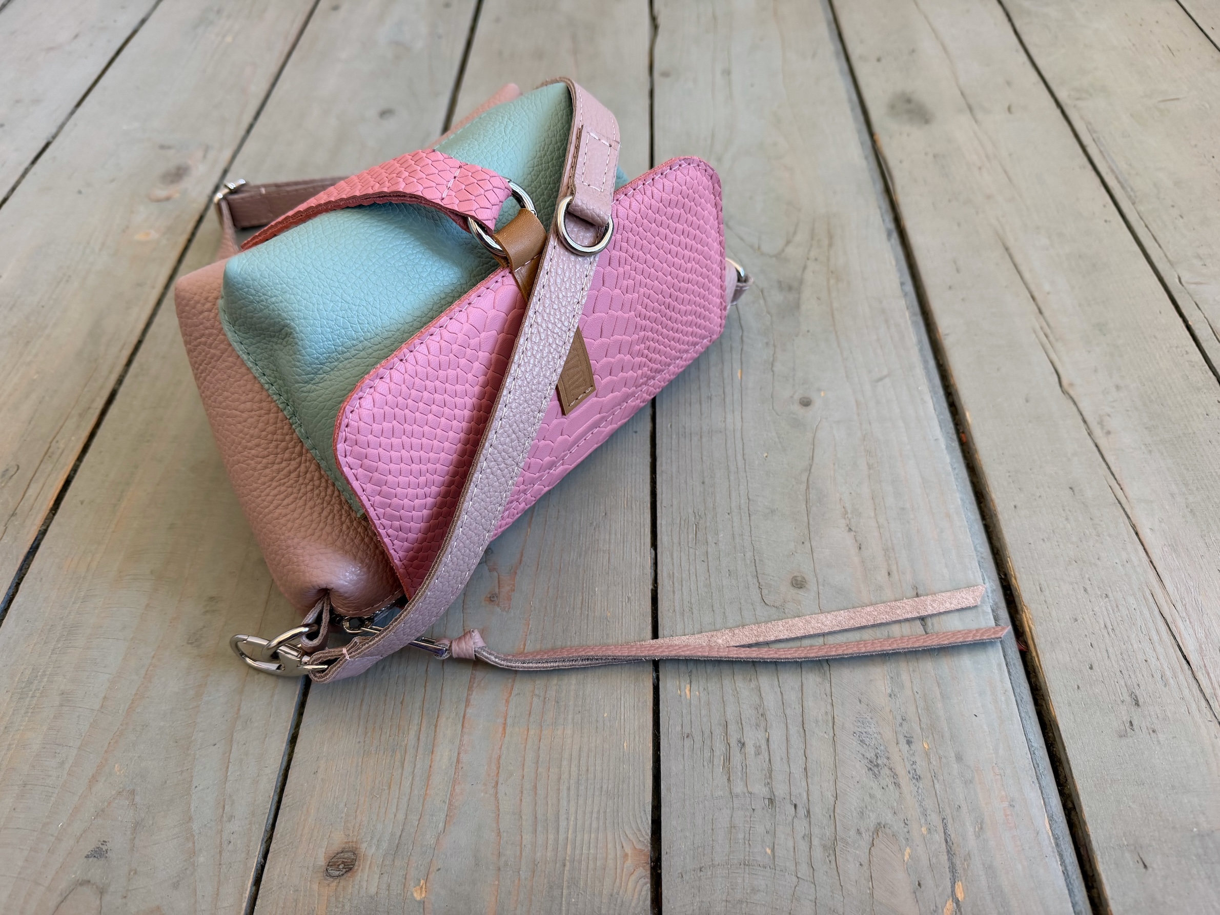 Uszyta ze skóry naturalnej licowej + bawełnianej podszewki.