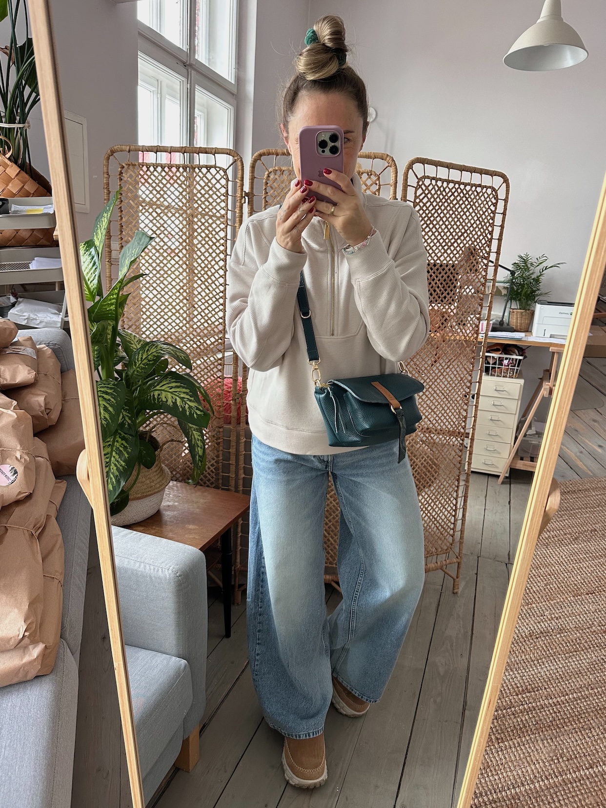 Na zewnątrz naszyta kieszonka idealna na telefon, zamykana na magnes.