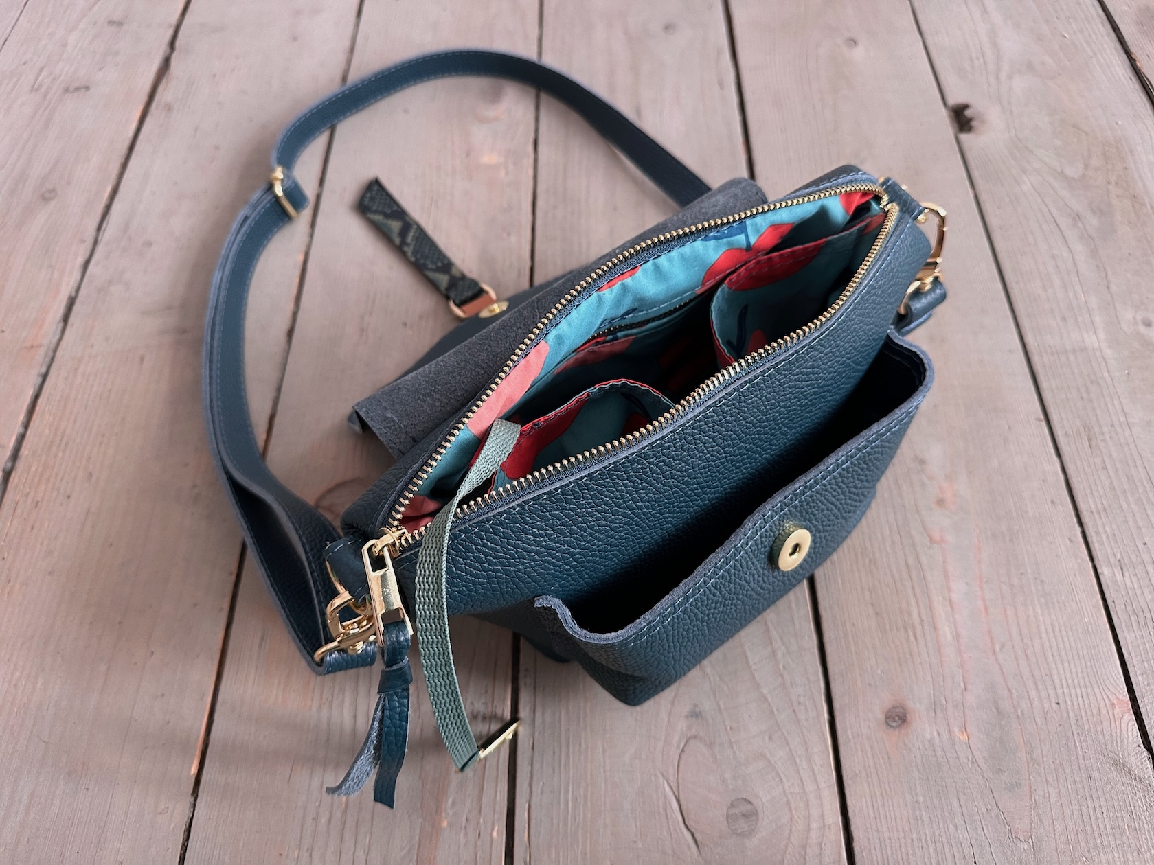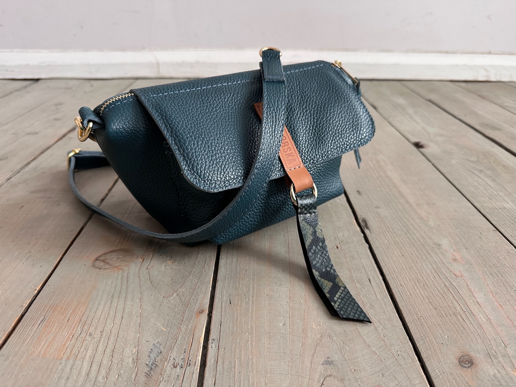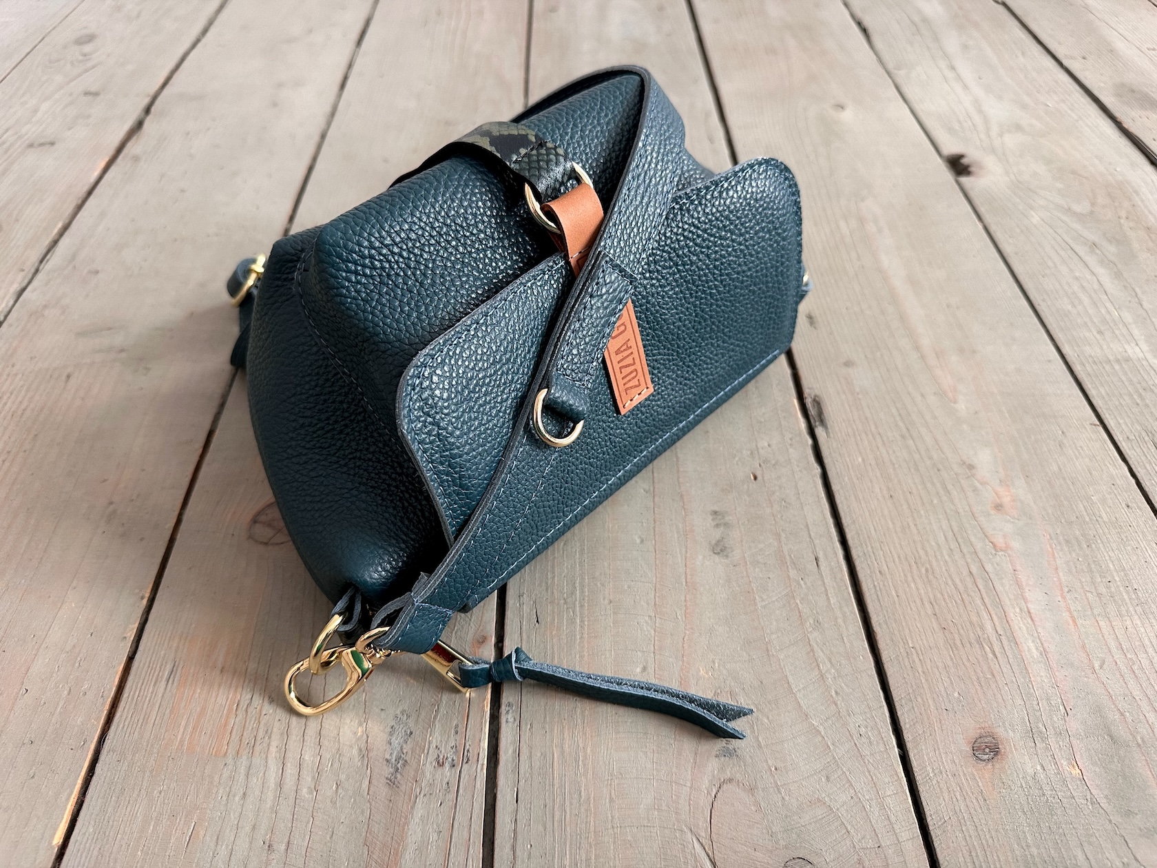 Uszyta ze skóry naturalnej licowej + bawełnianej podszewki.