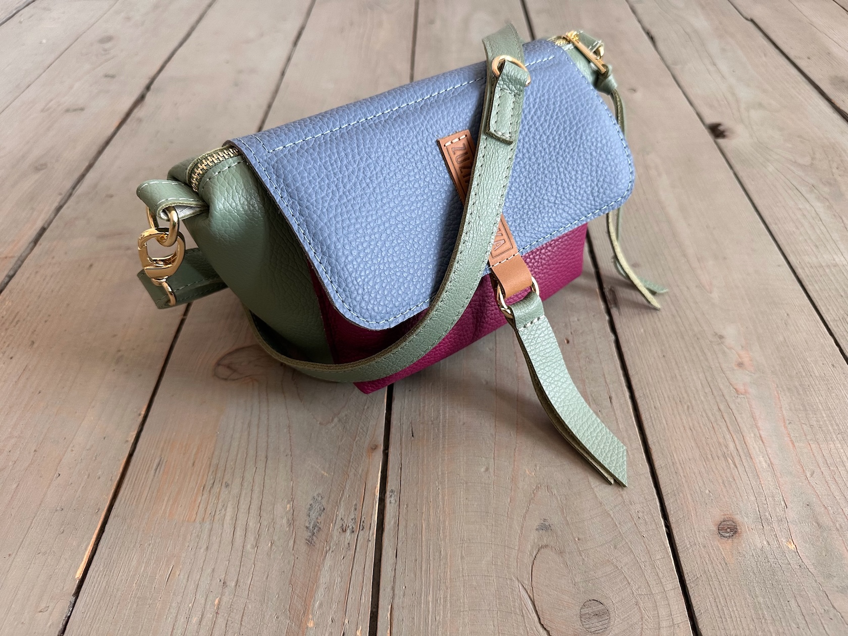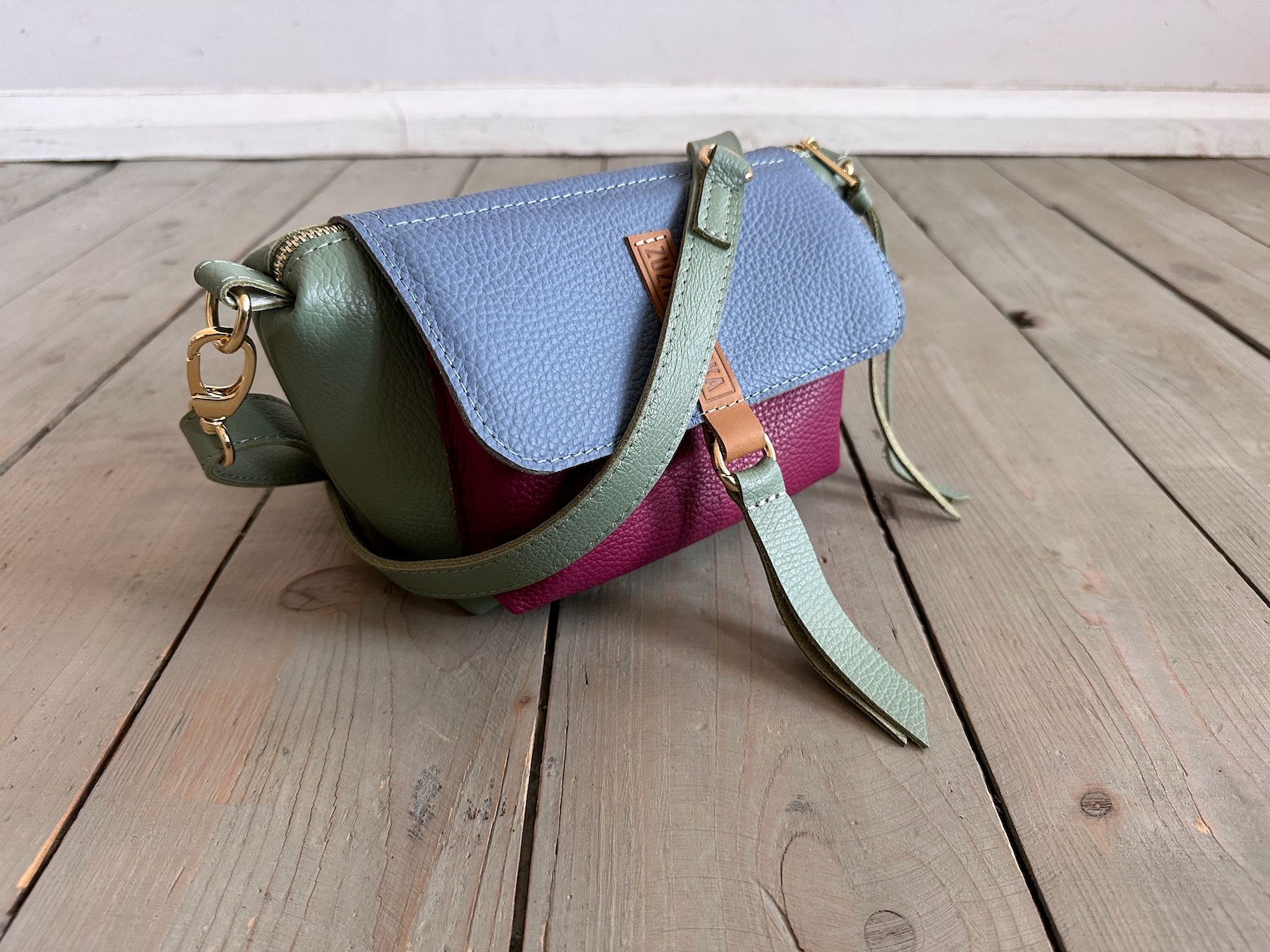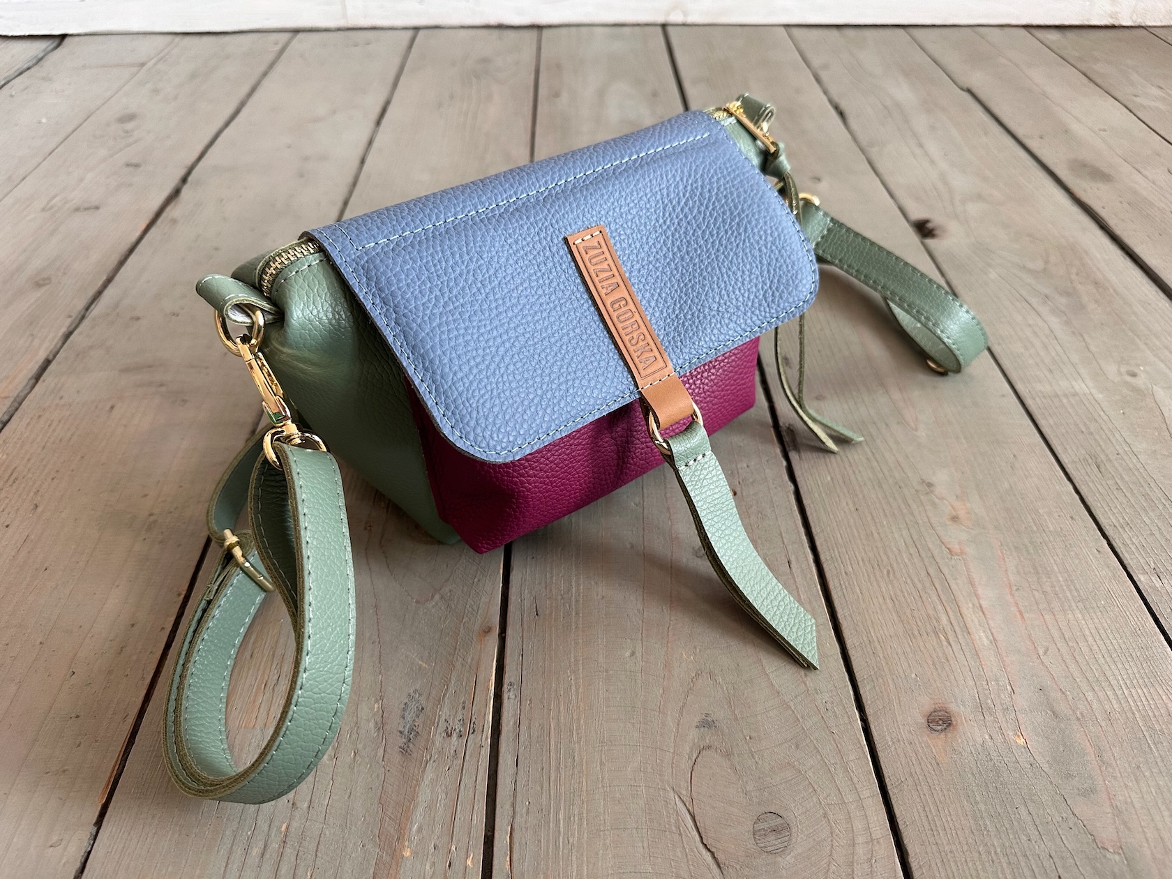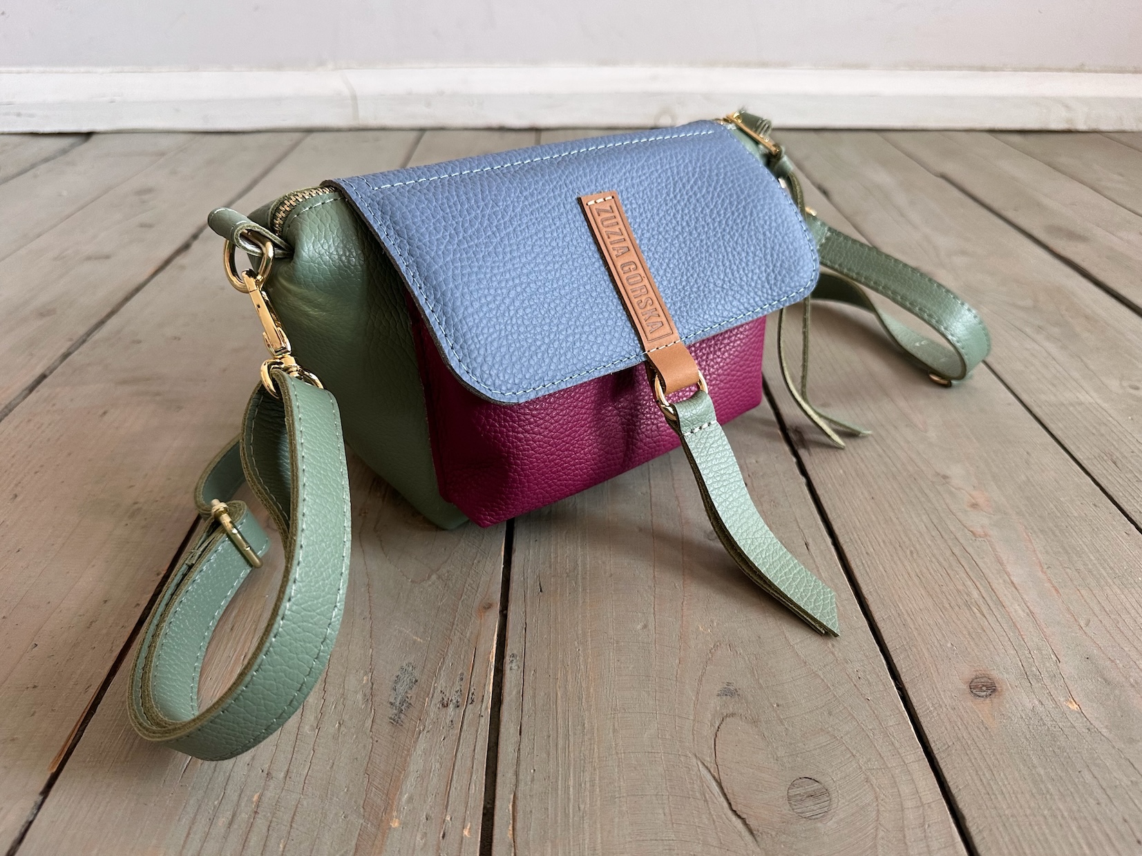 Uszyta ze skóry naturalnej licowej + bawełnianej podszewki.