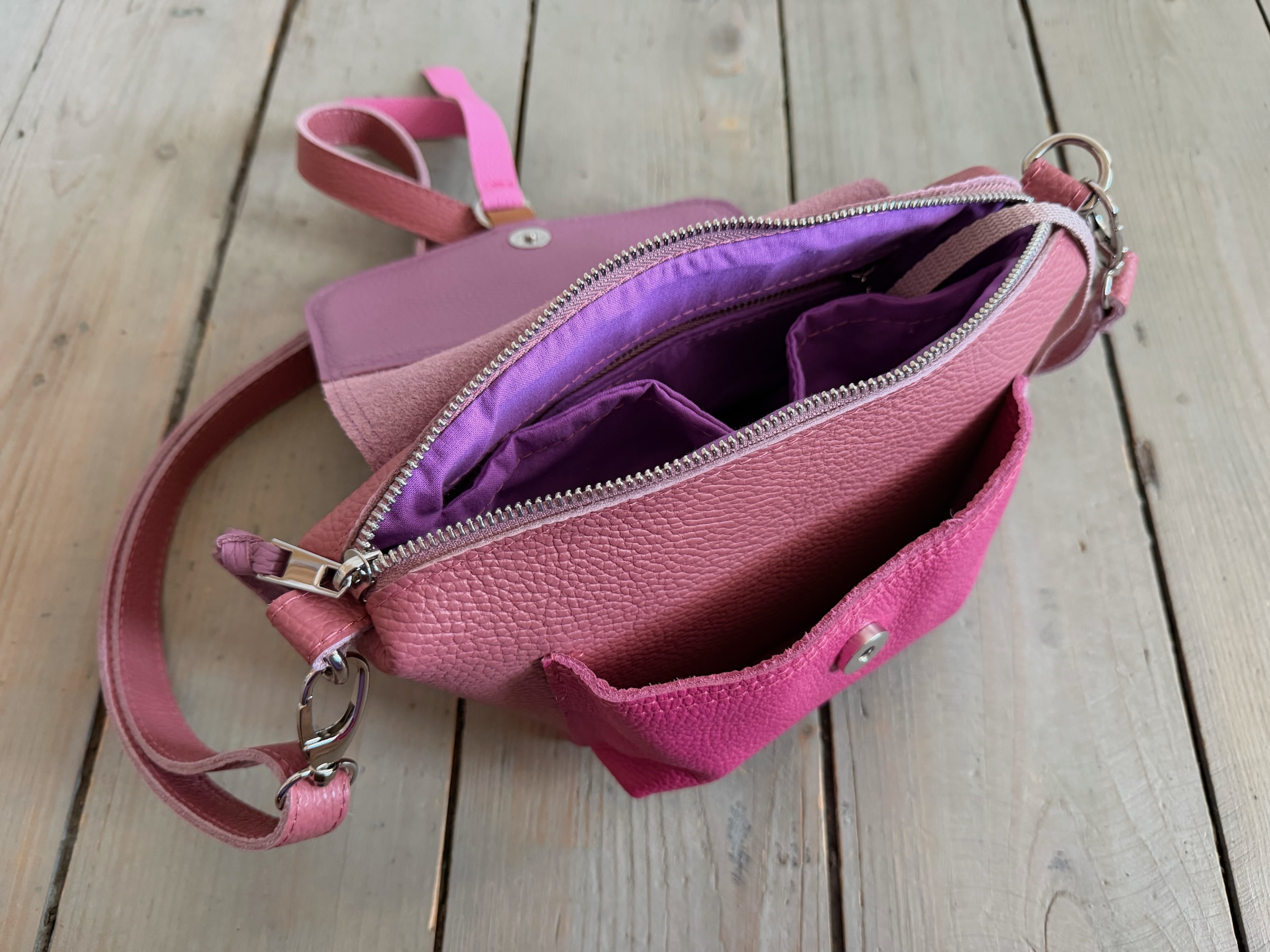 Uszyta ze skóry naturalnej licowej + bawełnianej podszewki.