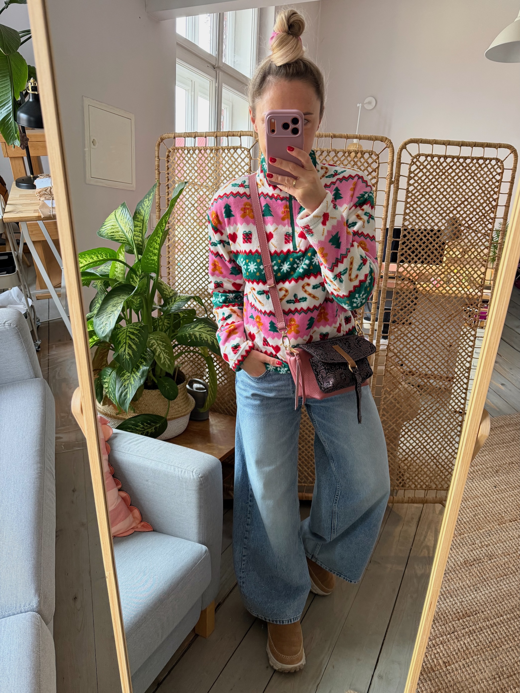 Na zewnątrz naszyta kieszonka idealna na telefon, zamykana na magnes.