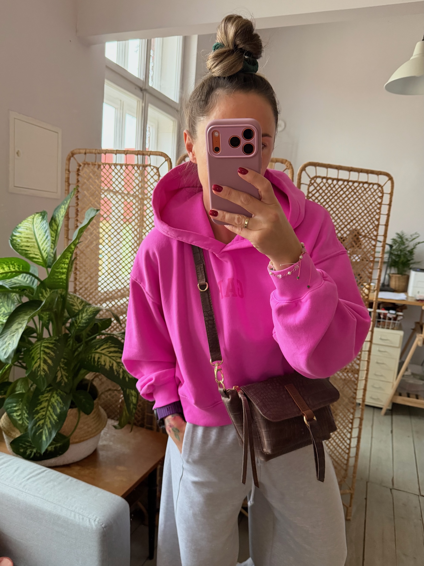 Na zewnątrz naszyta kieszonka idealna na telefon, zamykana na magnes.