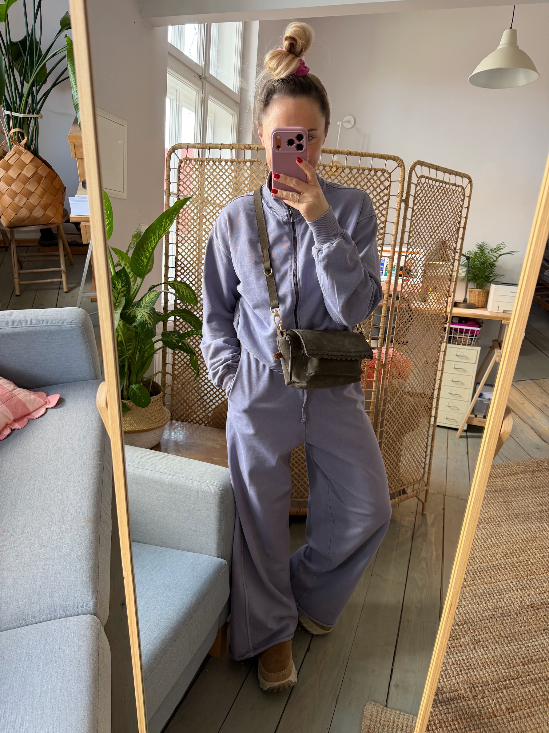 Na zewnątrz naszyta kieszonka idealna na telefon, zamykana na magnes.