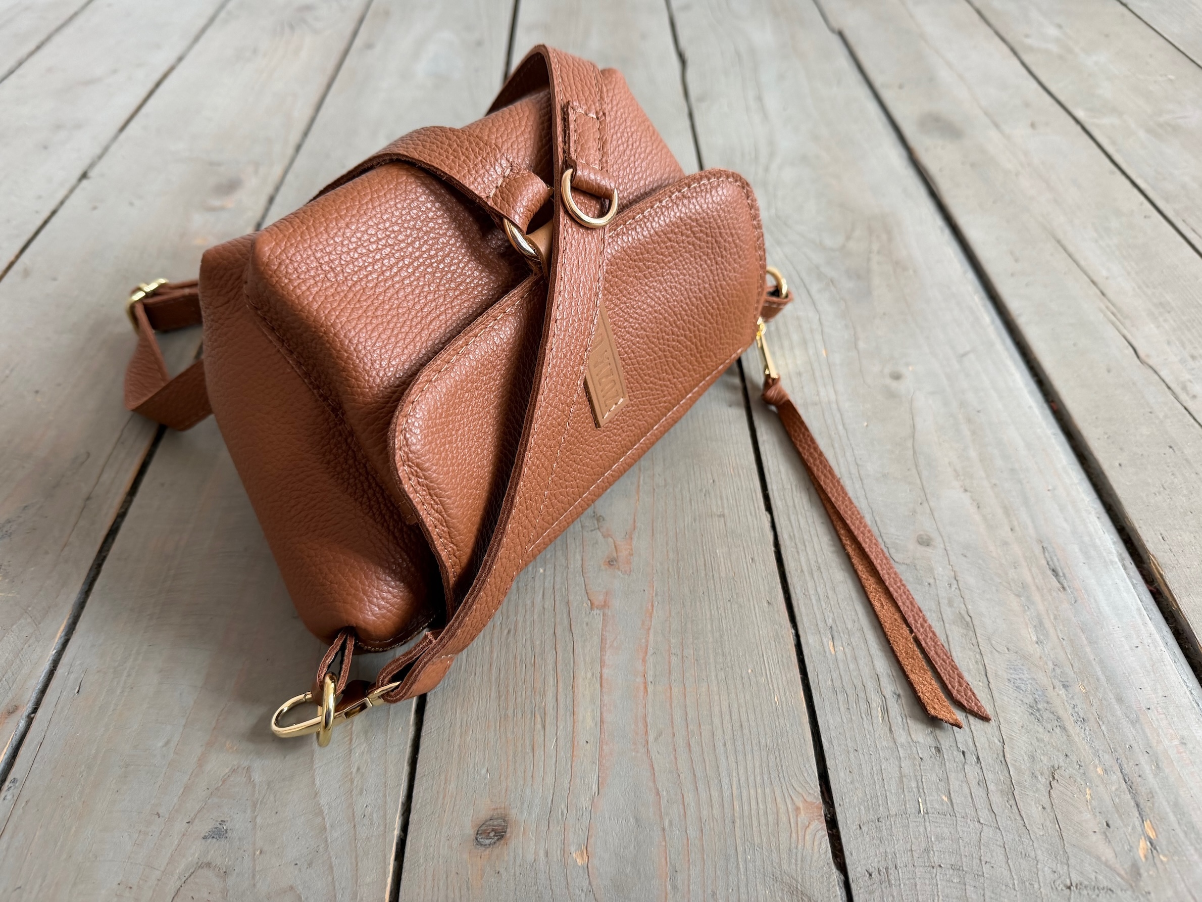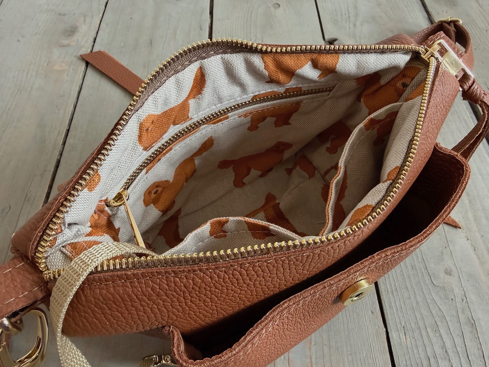 Uszyta ze skóry naturalnej licowej + bawełnianej podszewki.