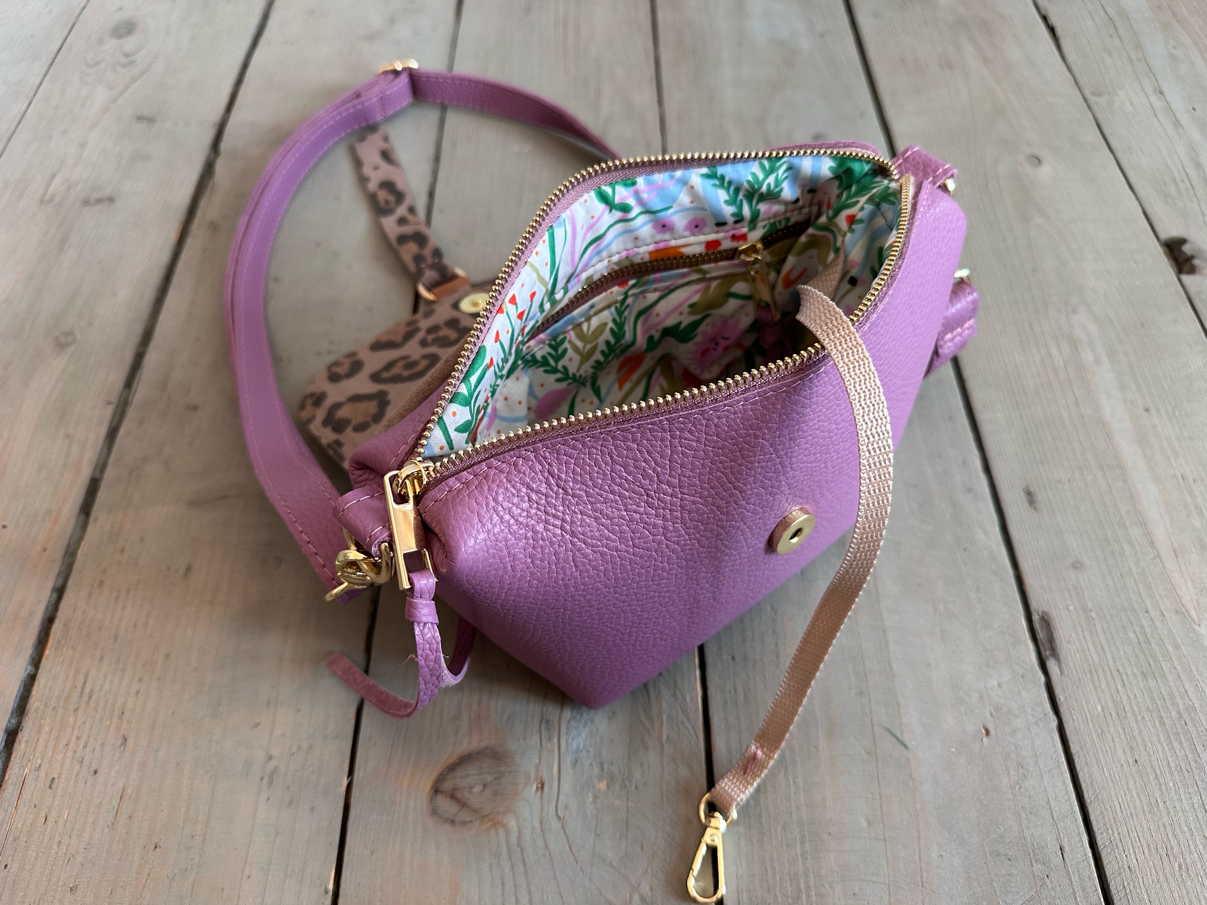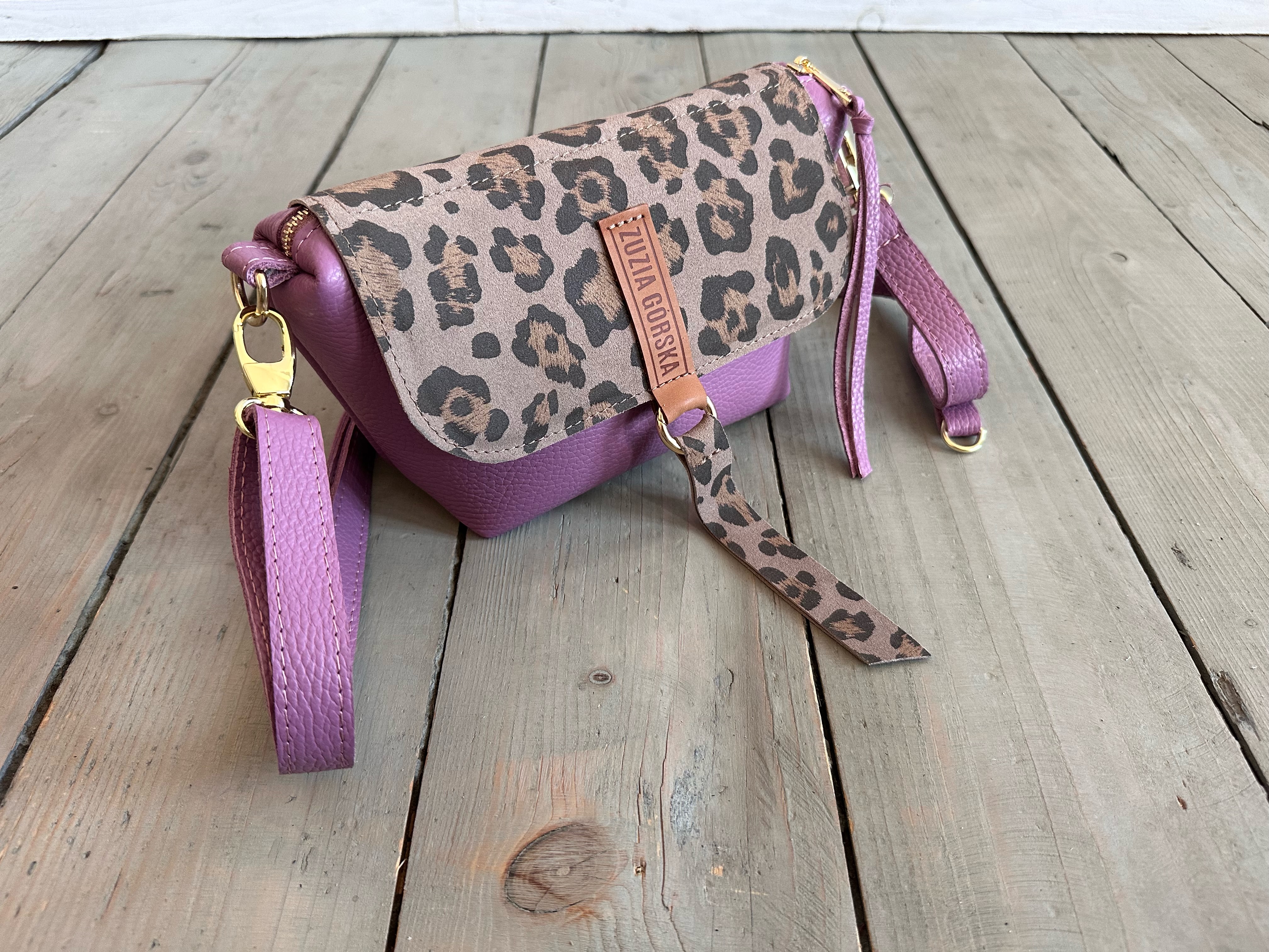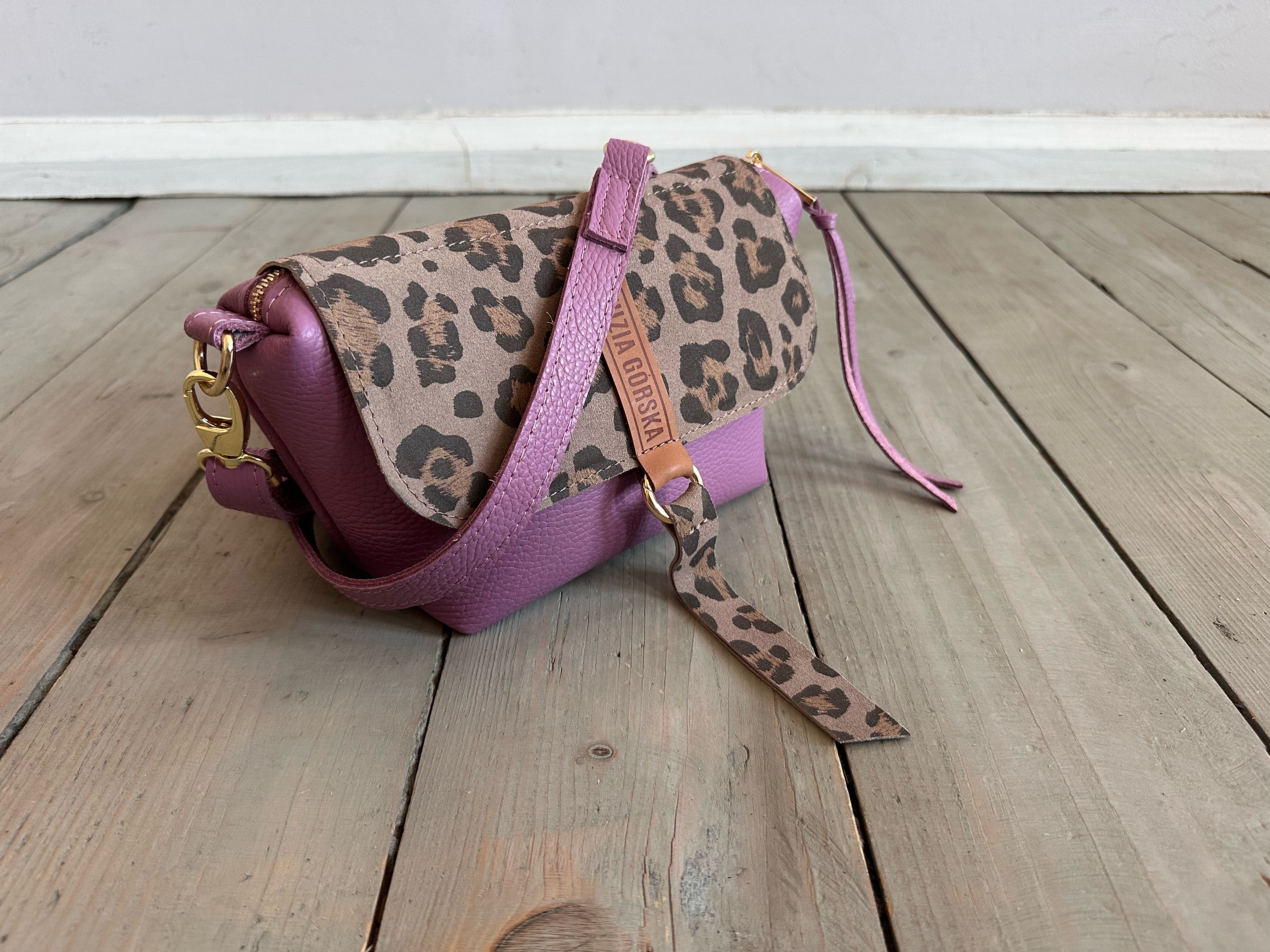 Uszyta ze skóry naturalnej licowej + nubukowej + bawełnianej podszewki.