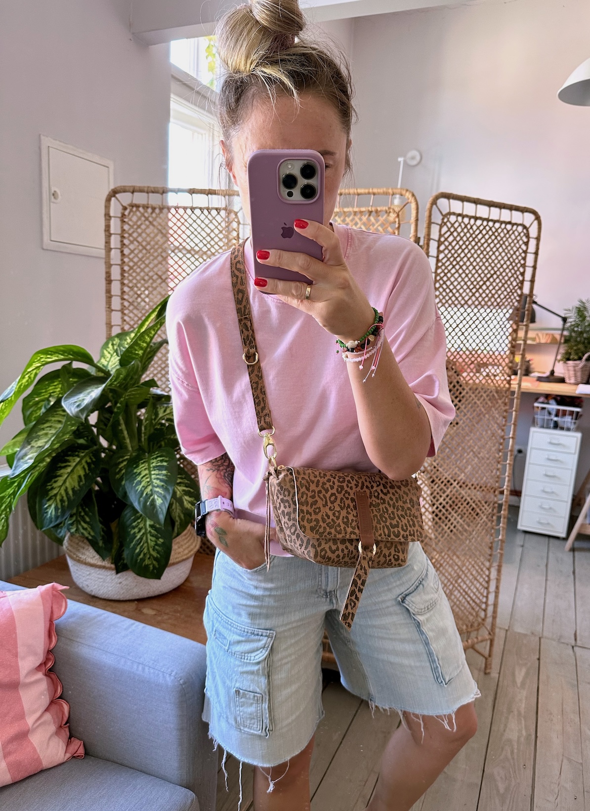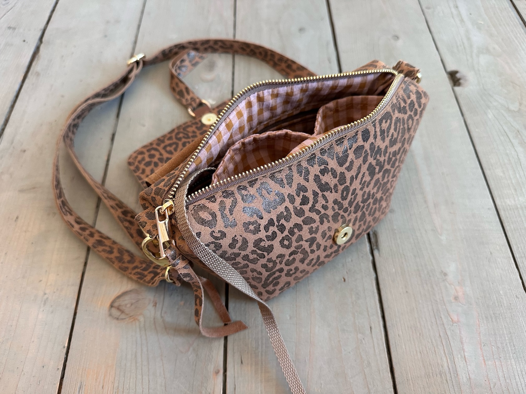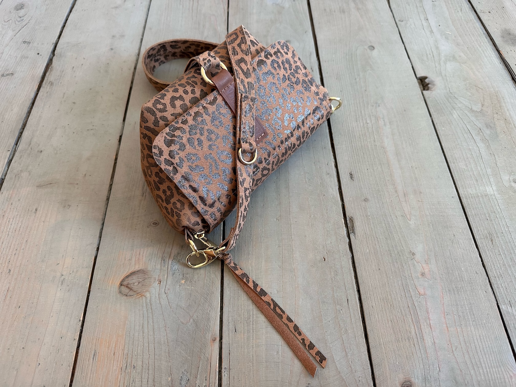 Uszyta ze skóry naturalnej welurowej + bawełnianej podszewki.