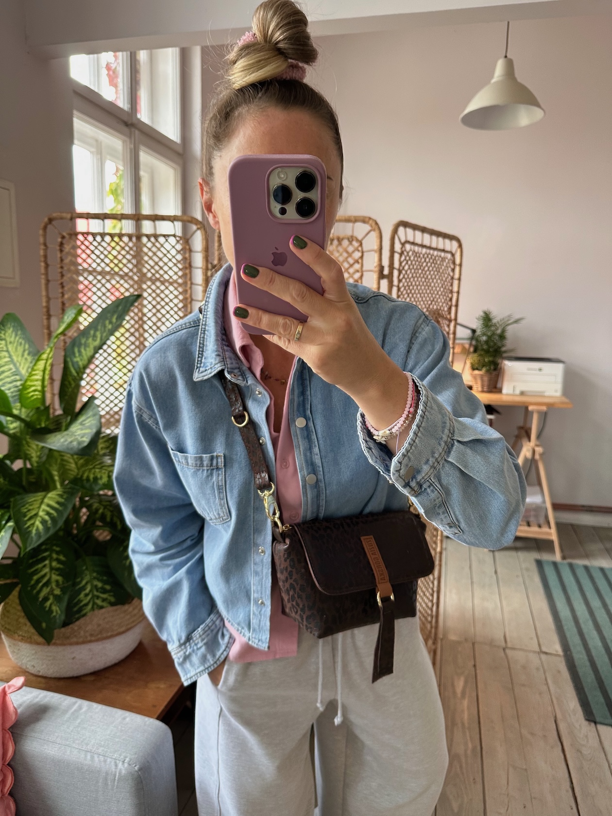 Uszyta ze skóry naturalnej nubukowej + bawełnianej podszewki.