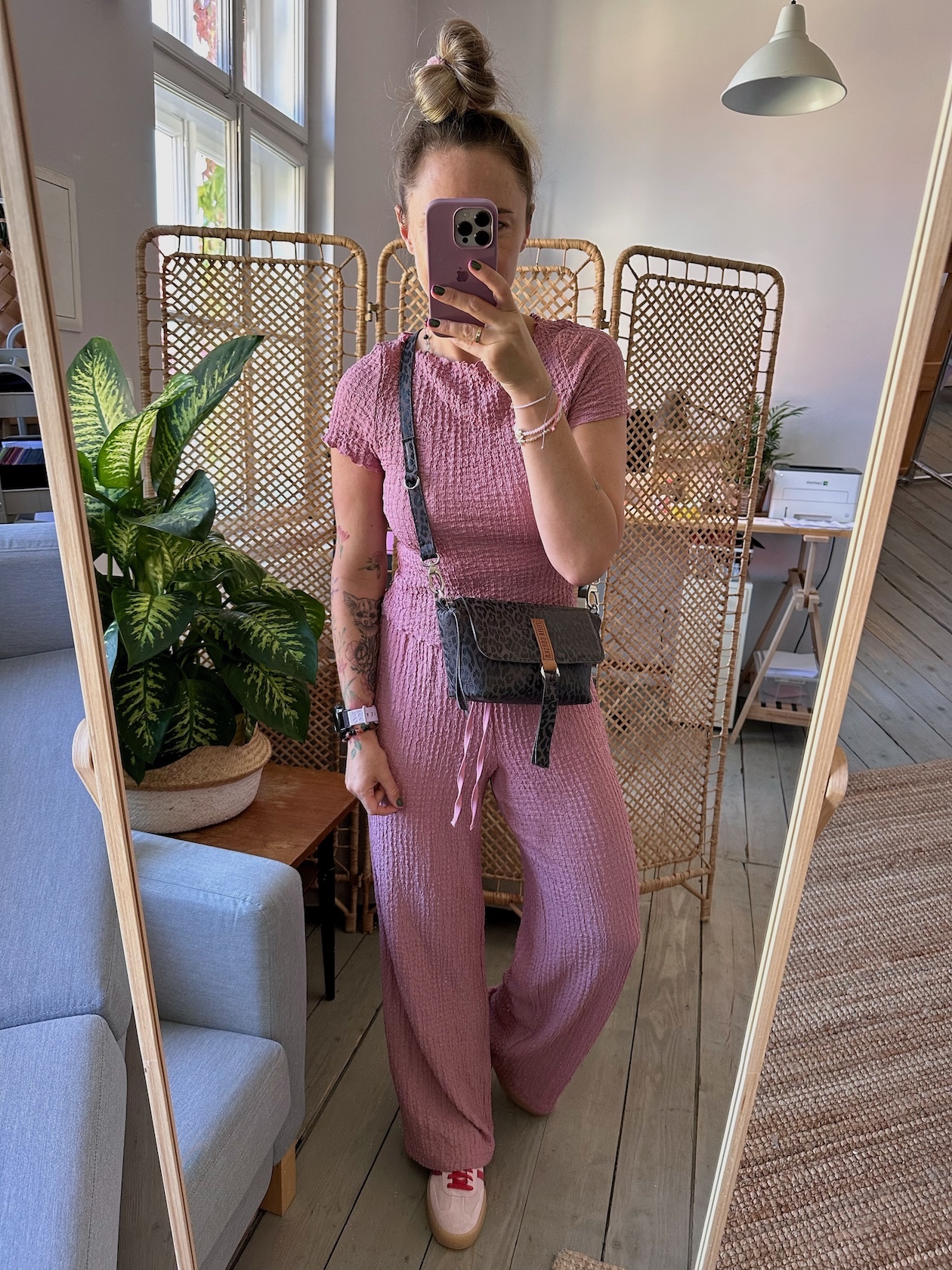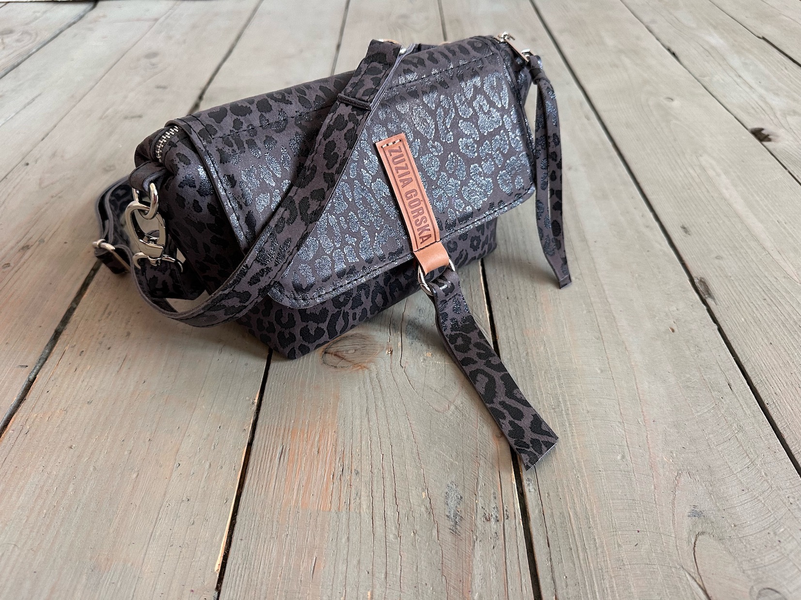 Uszyta ze skóry naturalnej nubukowej + bawełnianej podszewki.