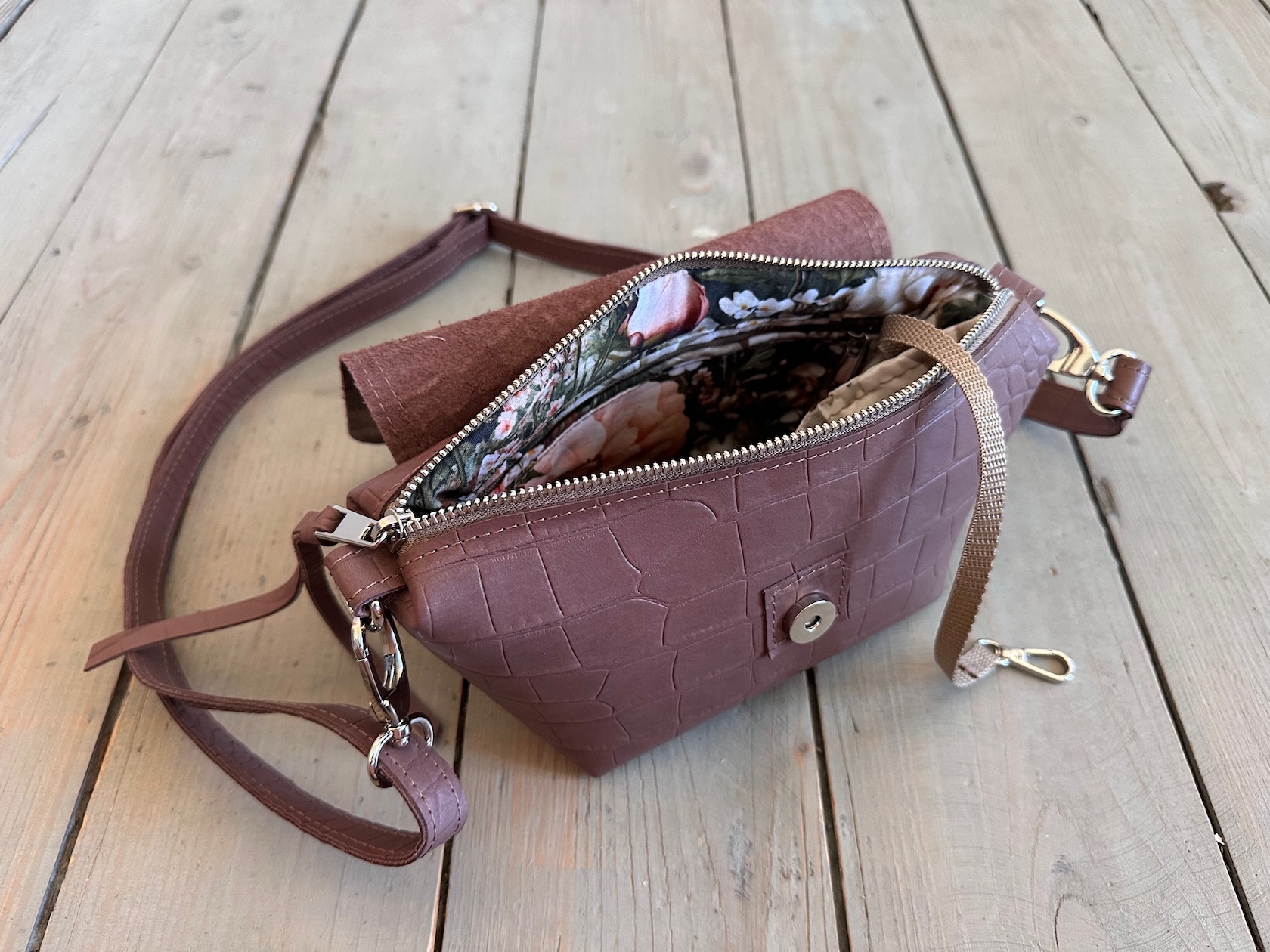 Uszyta ze skóry naturalnej licowej + bawełnianej podszewki.