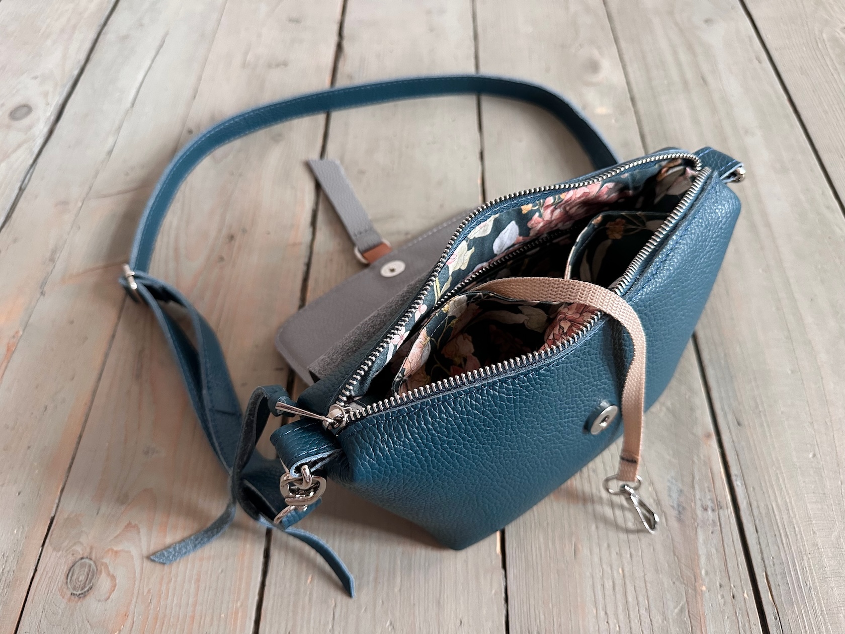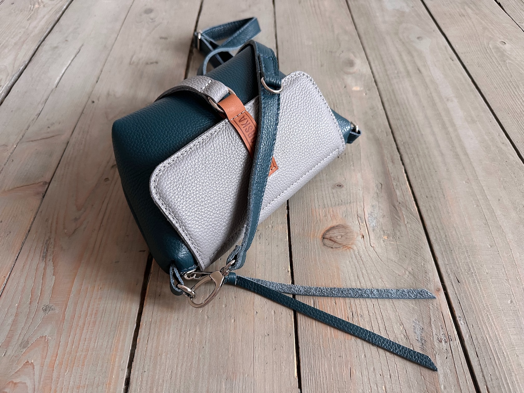 Uszyta ze skóry naturalnej licowej + bawełnianej podszewki.