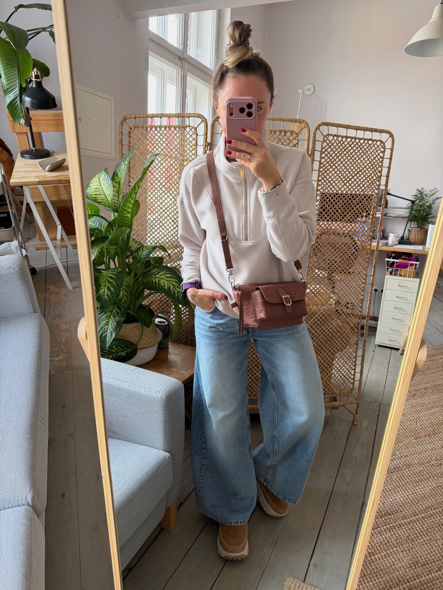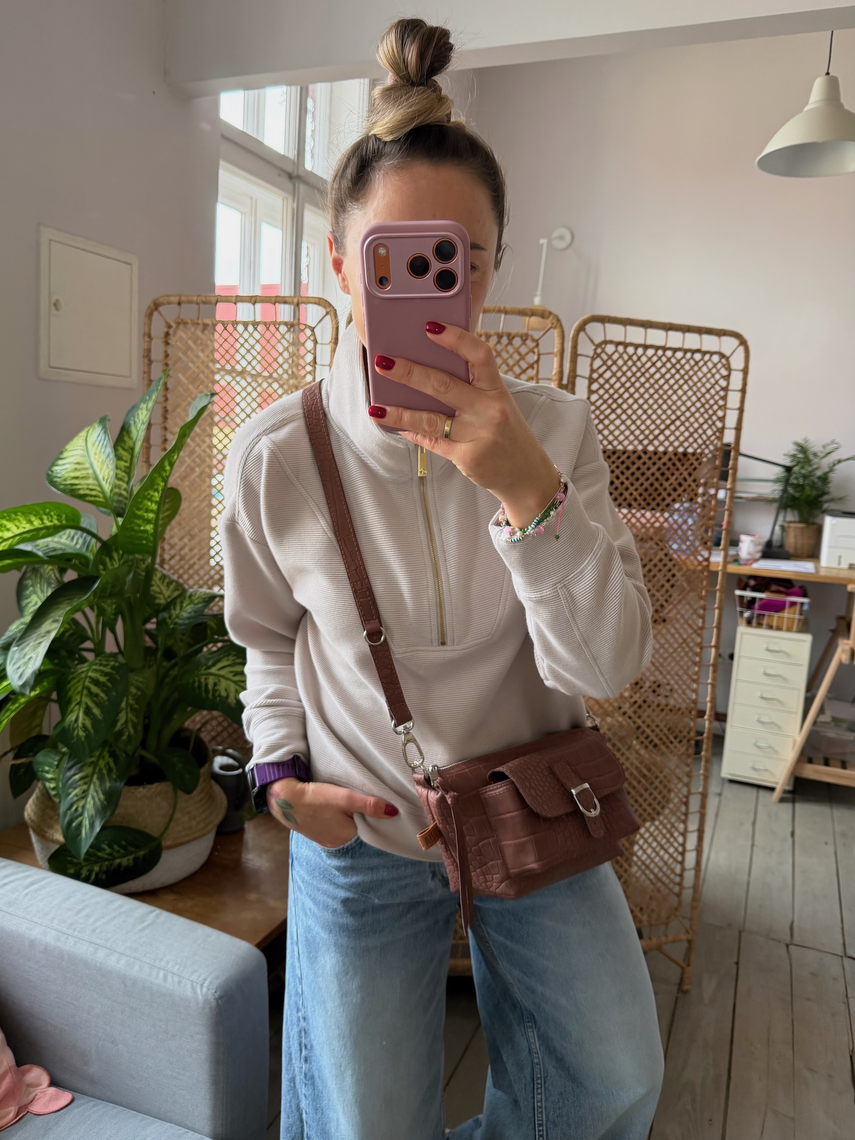 Na zewnątrz naszyta kieszonka idealna na telefon, zamykana na magnes.