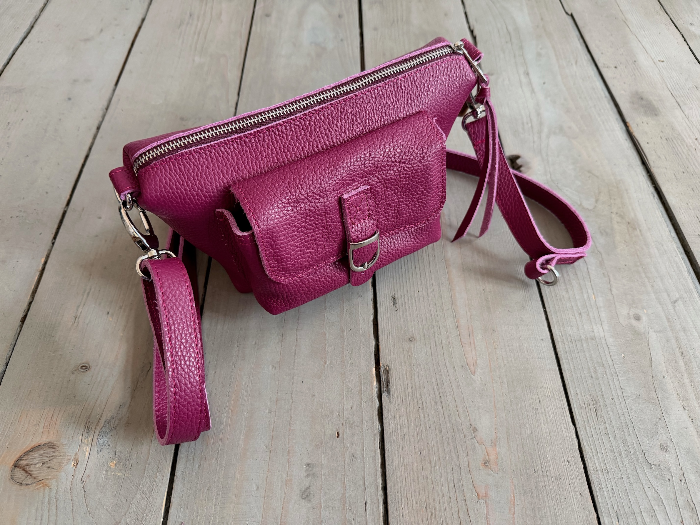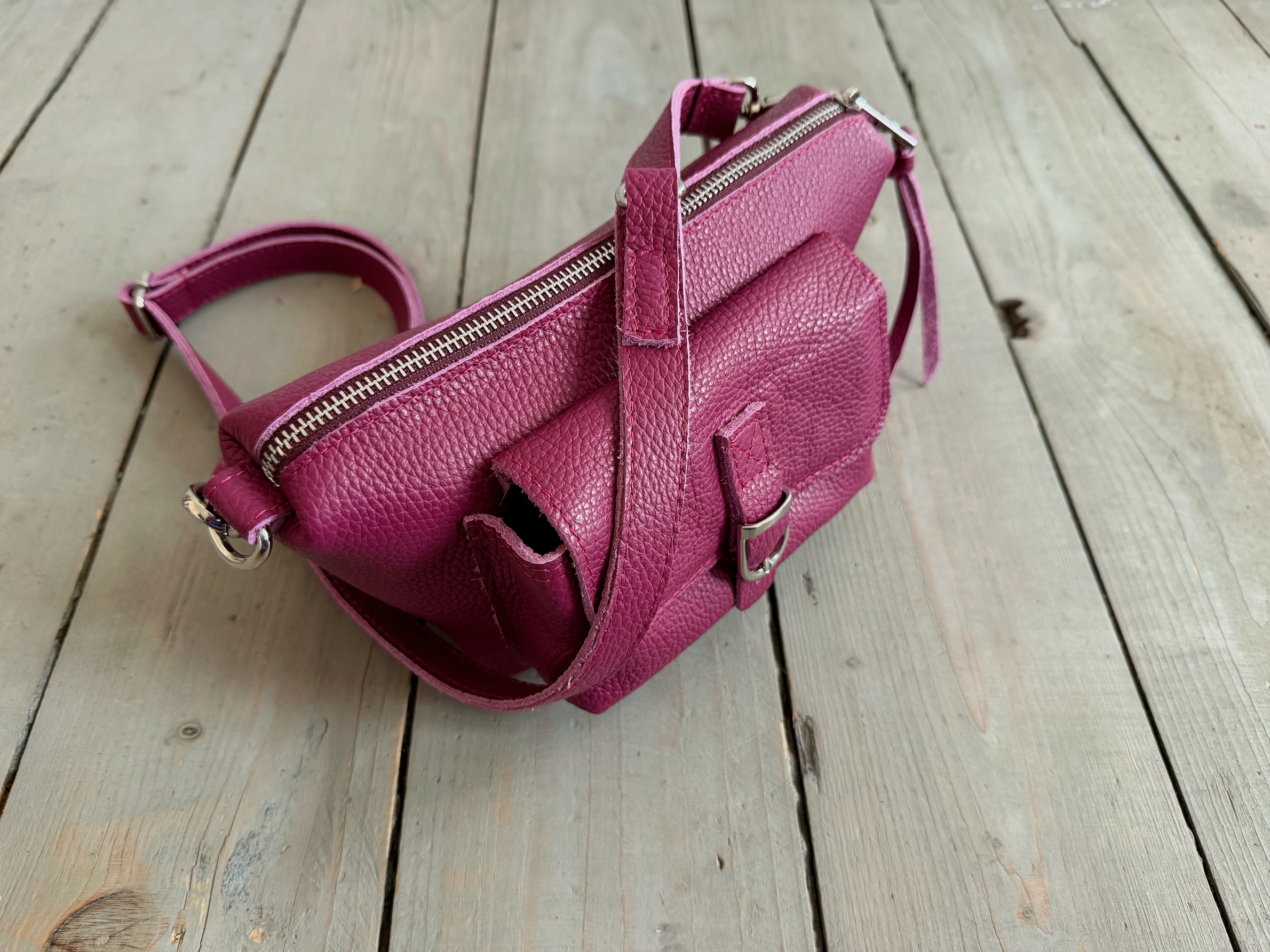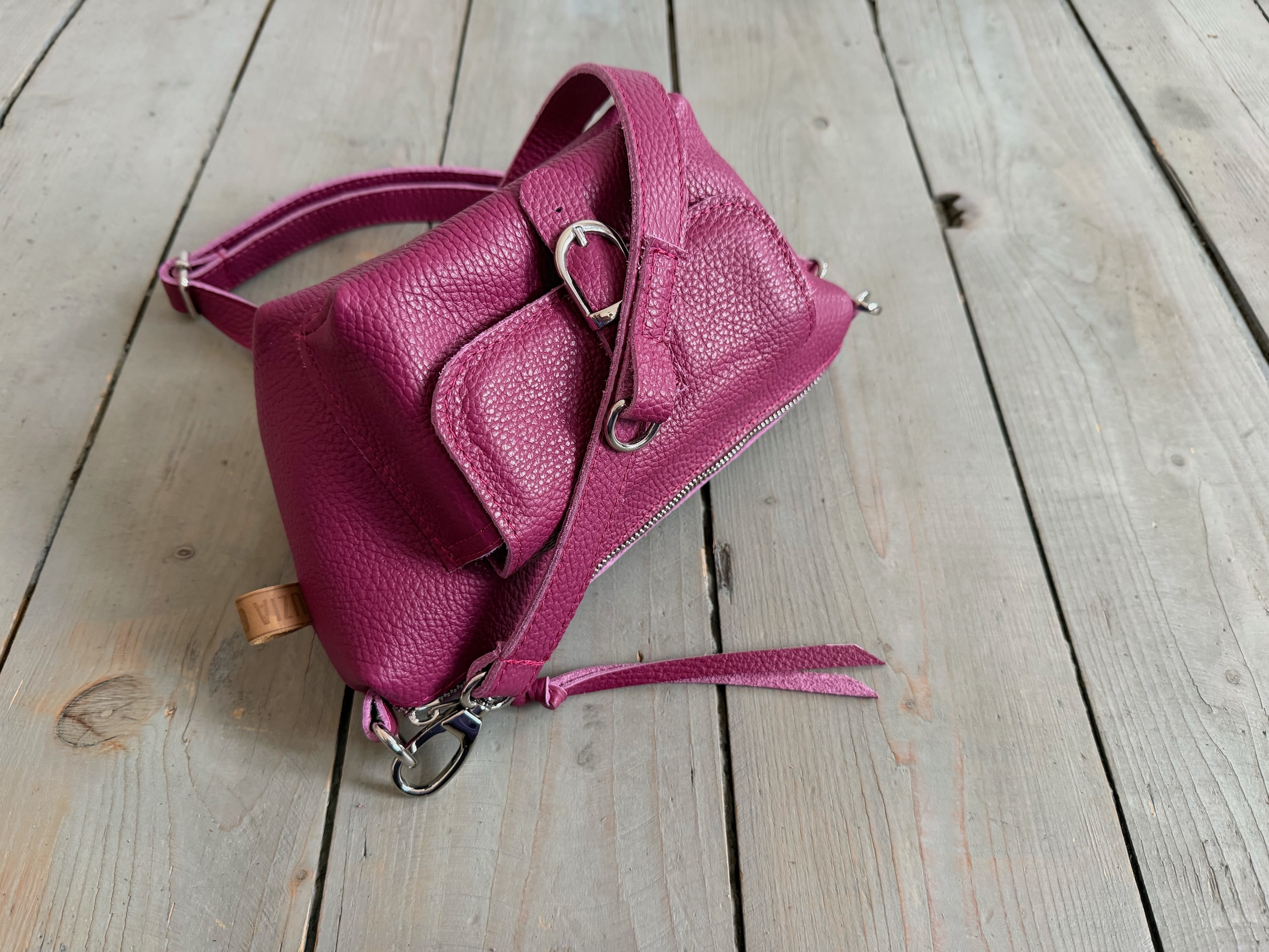Uszyta ze skóry naturalnej licowej + bawełnianej podszewki.