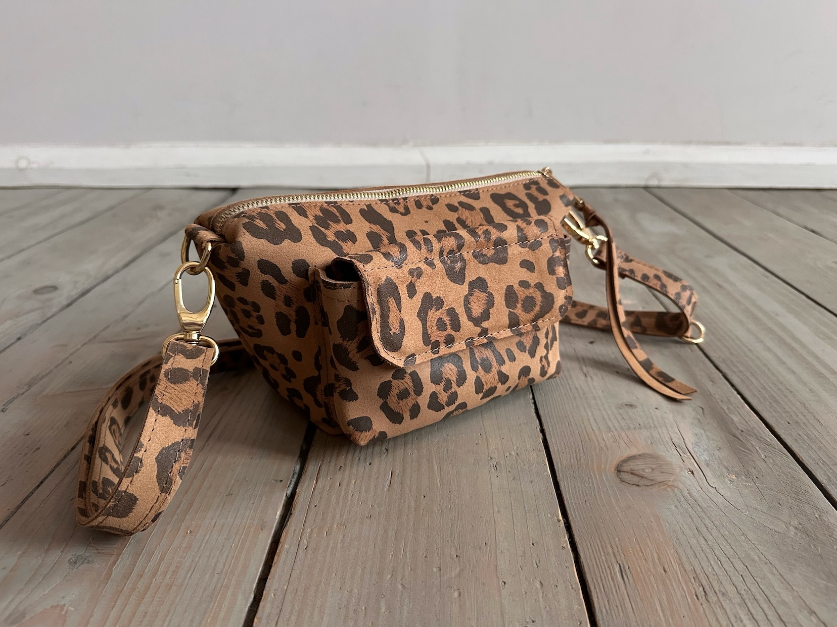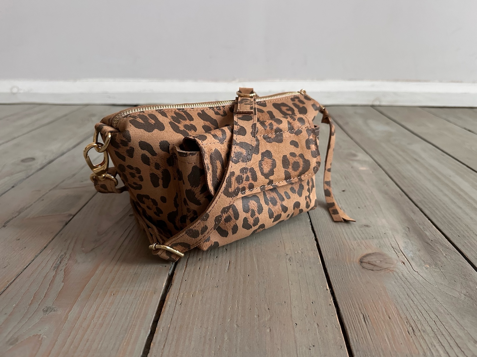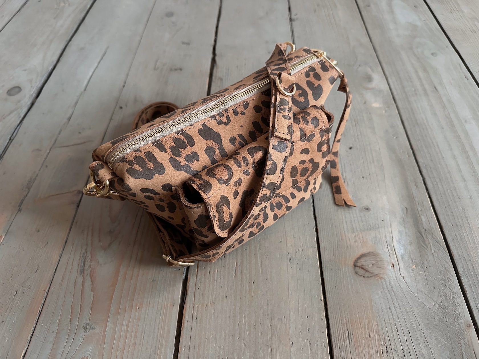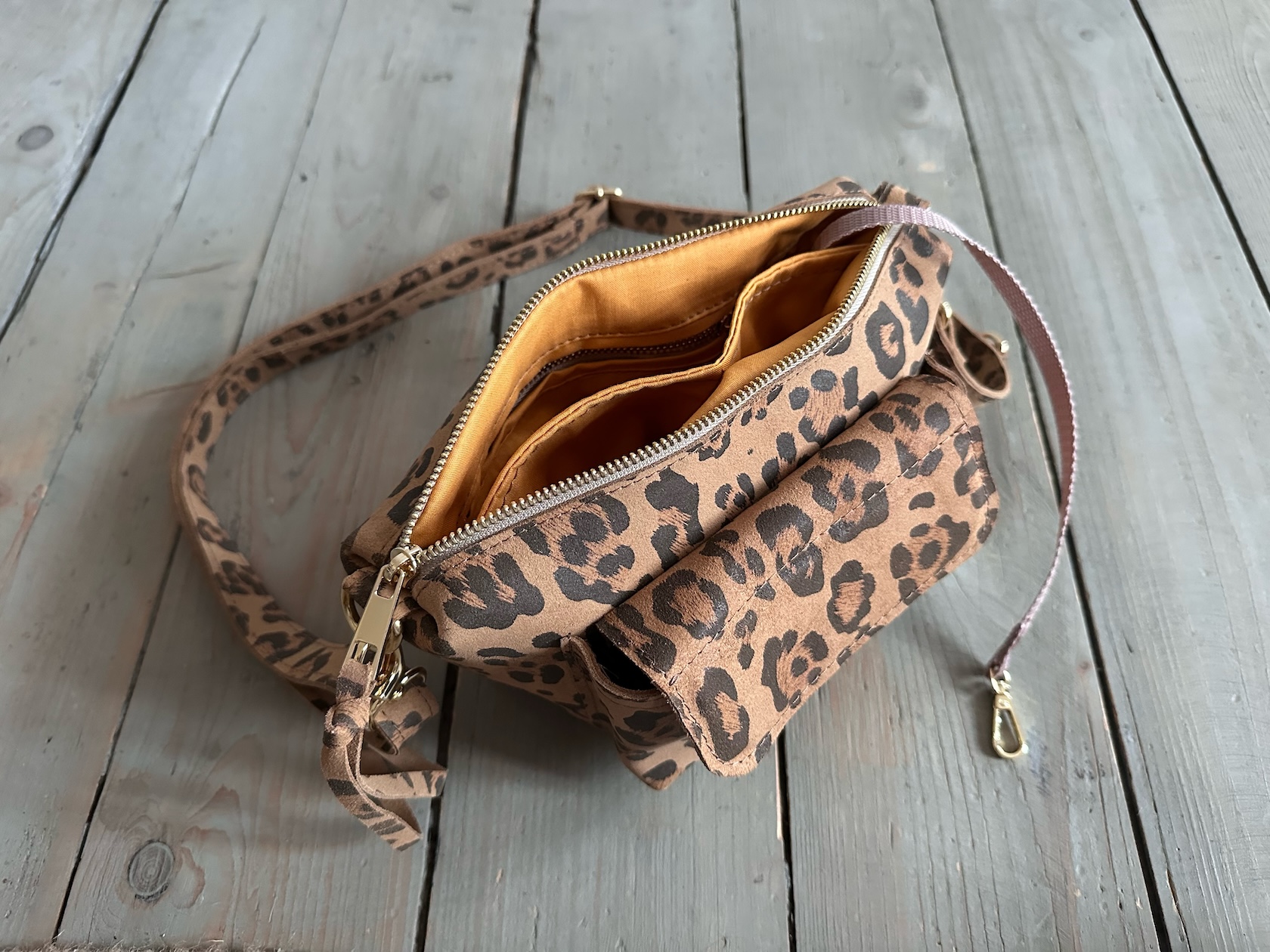 Uszyta ze skóry naturalnej welurowej + bawełnianej podszewki.