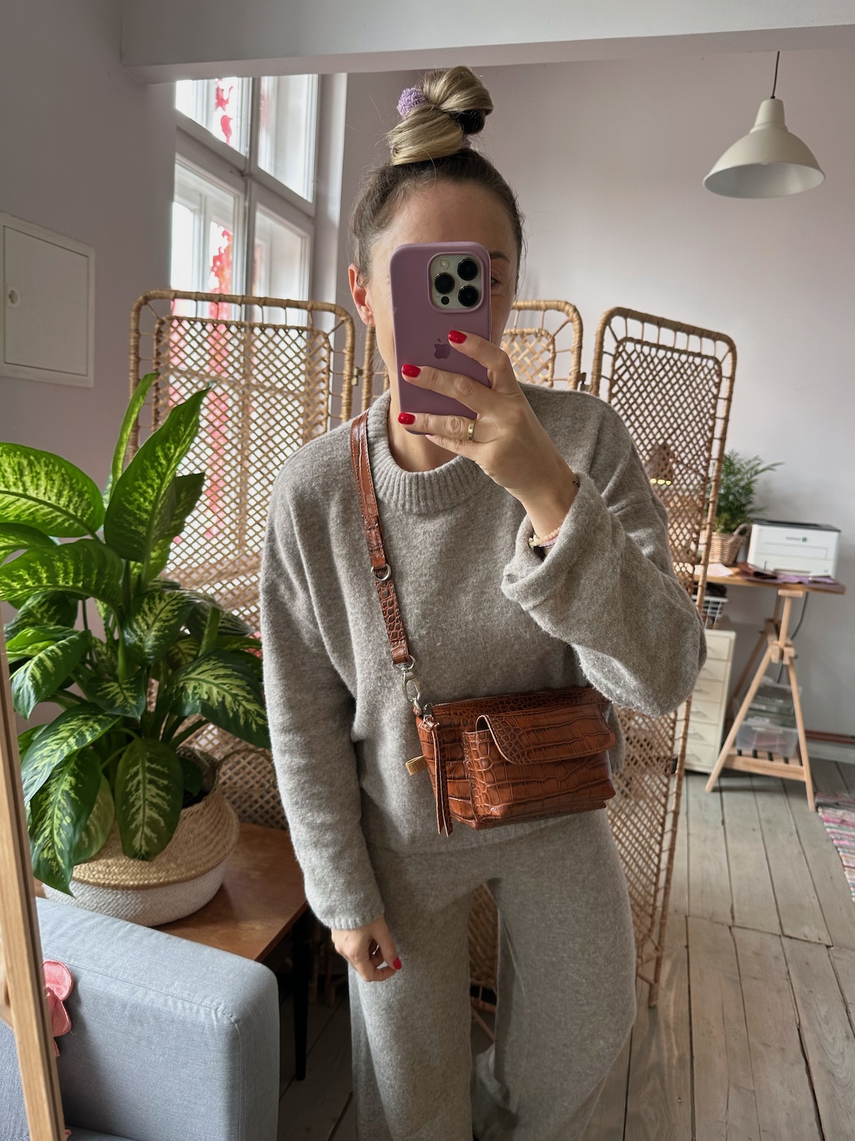Na zewnątrz naszyta kieszonka idealna na telefon, zamykana na magnes.