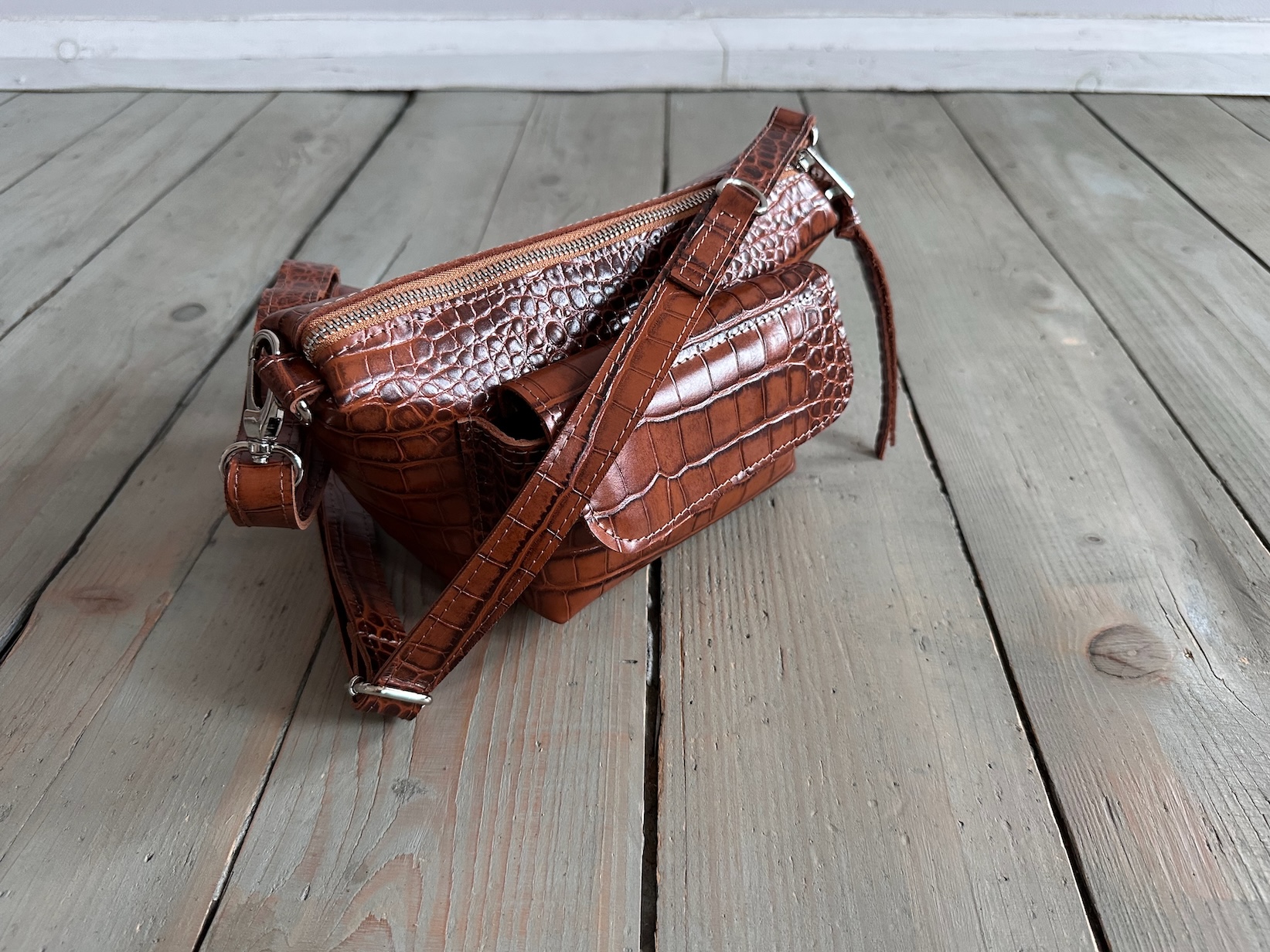 Uszyta ze skóry naturalnej licowej + bawełnianej podszewki.