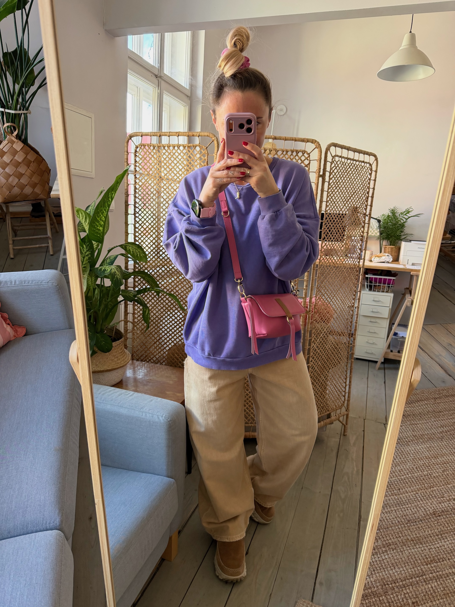 Uszyta ze skóry naturalnej licowej + bawełnianej podszewki.