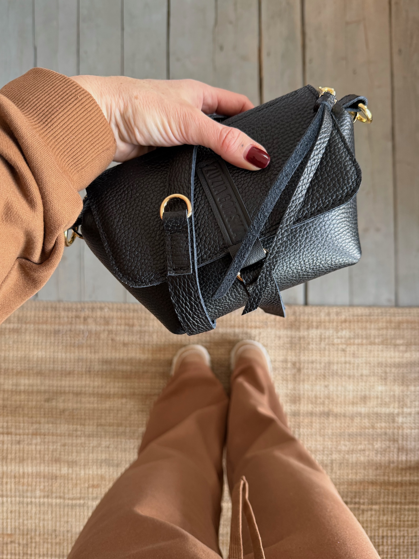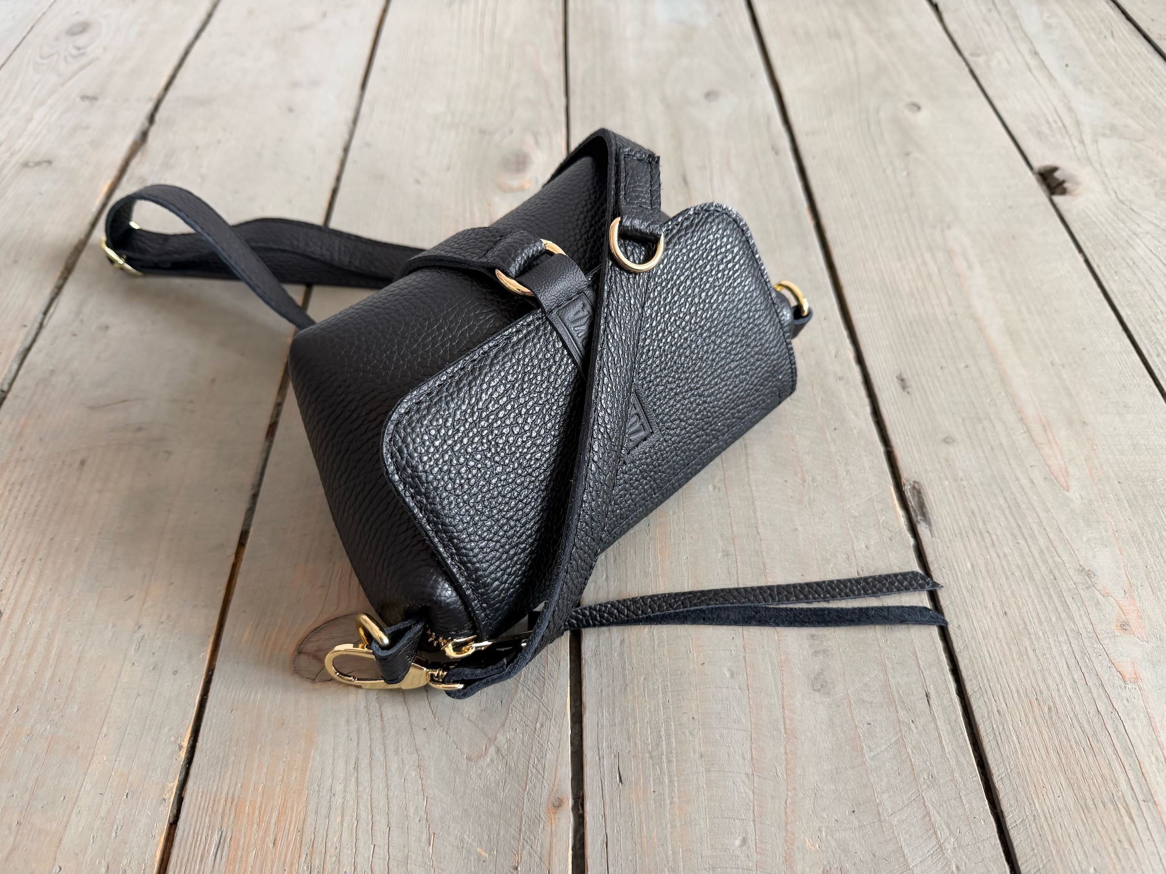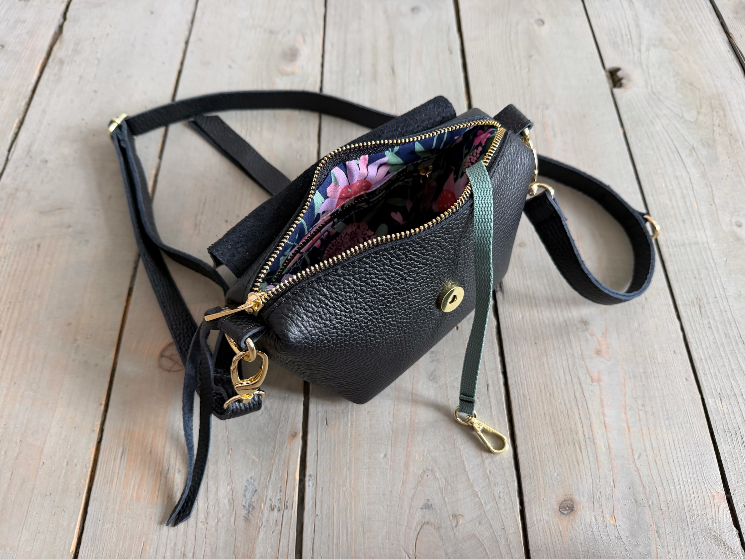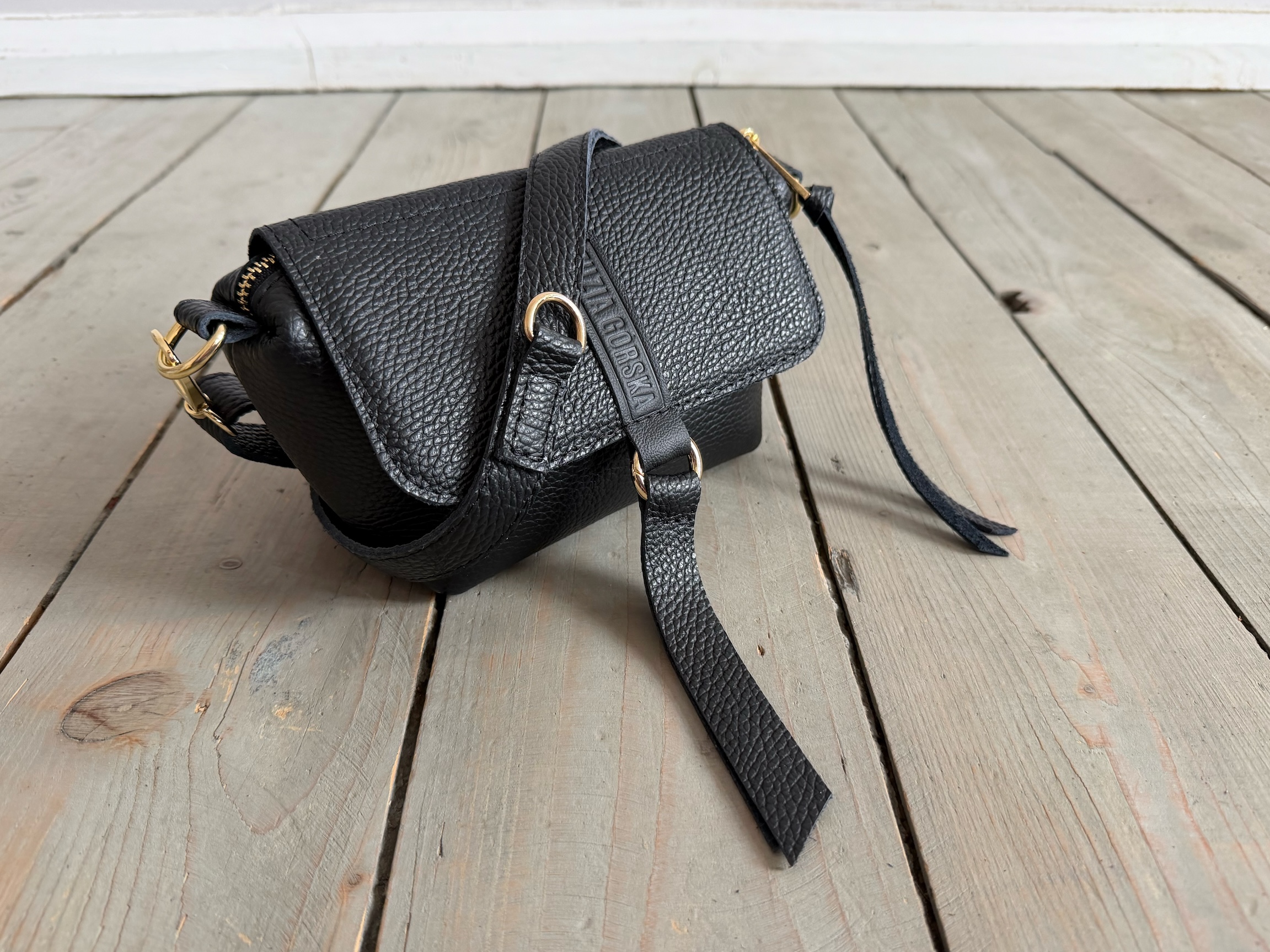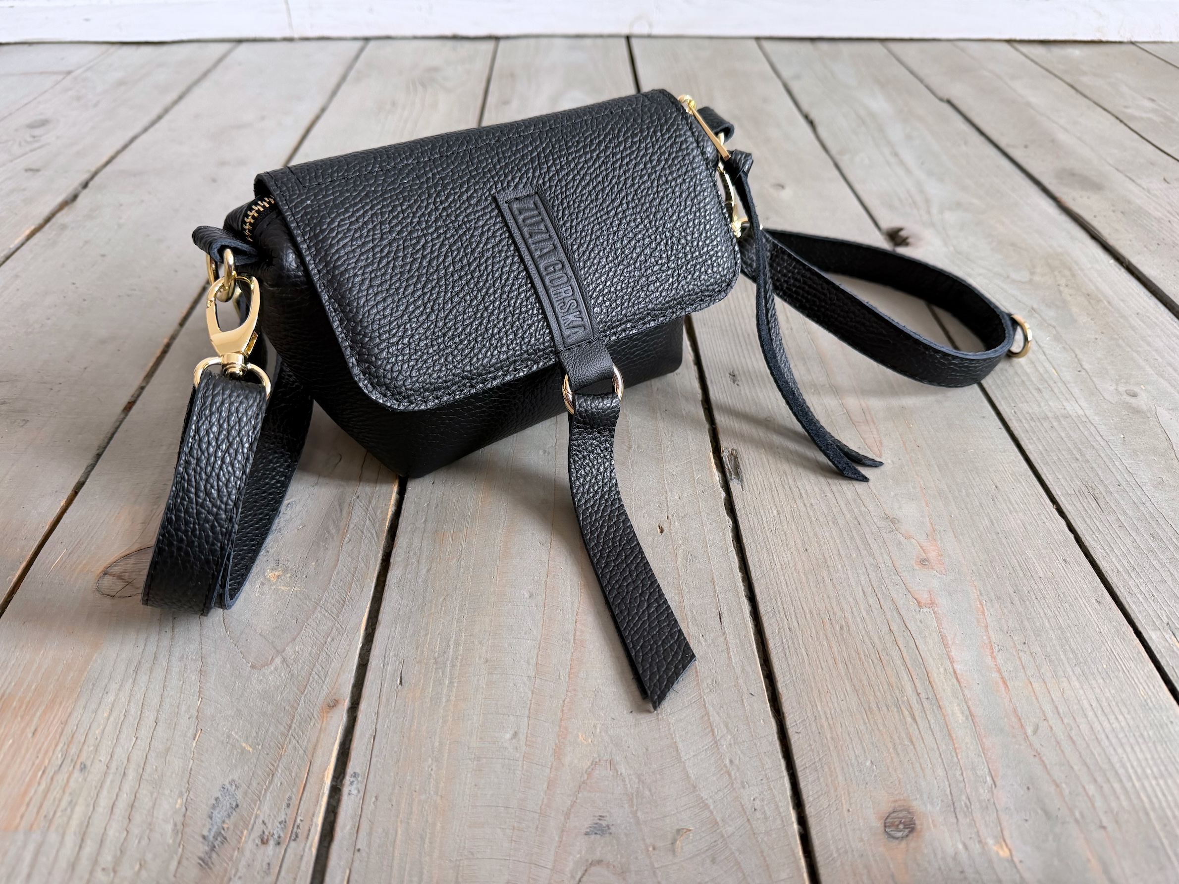 Uszyta ze skóry naturalnej licowej + bawełnianej podszewki.
