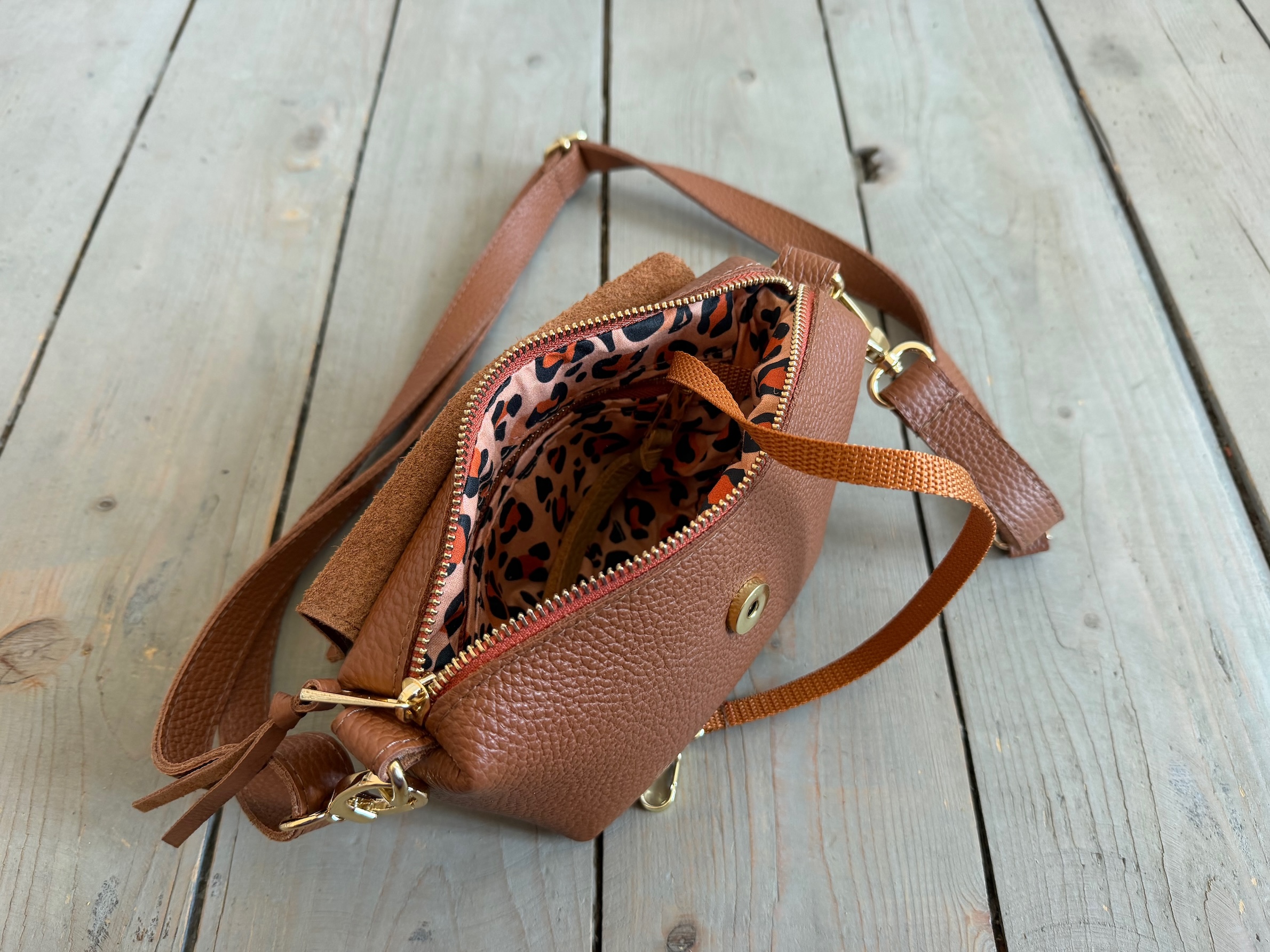 Uszyta ze skóry naturalnej licowej + bawełnianej podszewki.