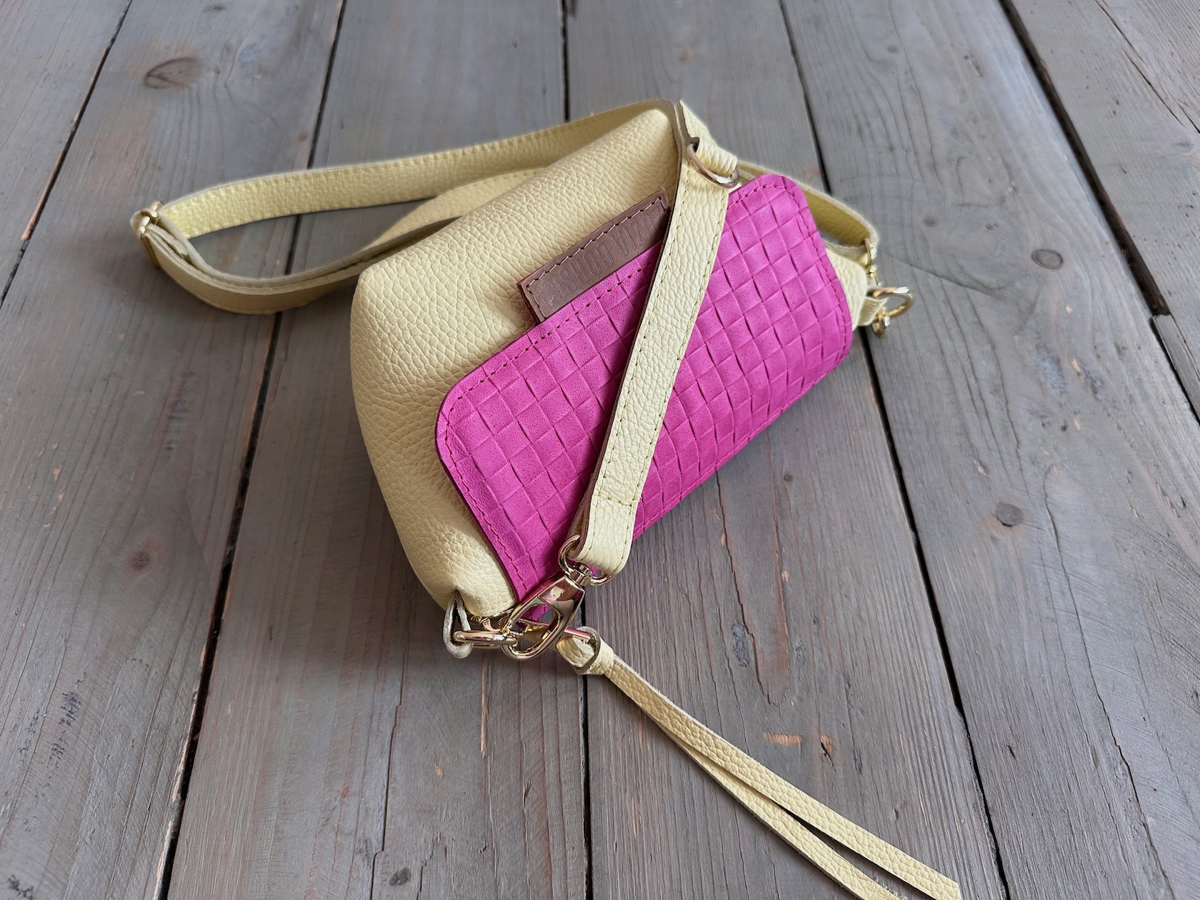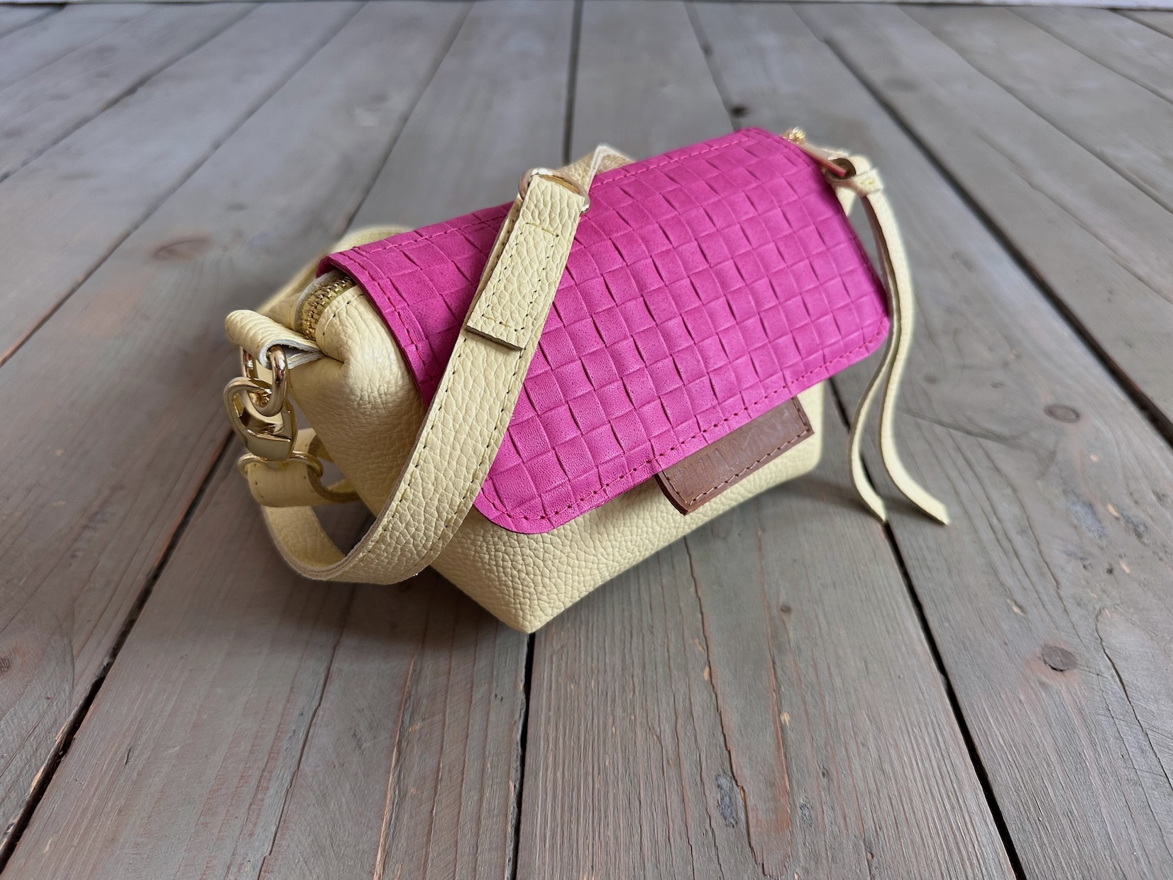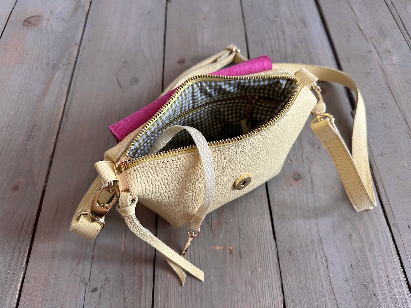 Uszyta ze skóry naturalnej licowej + bawełnianej podszewki.