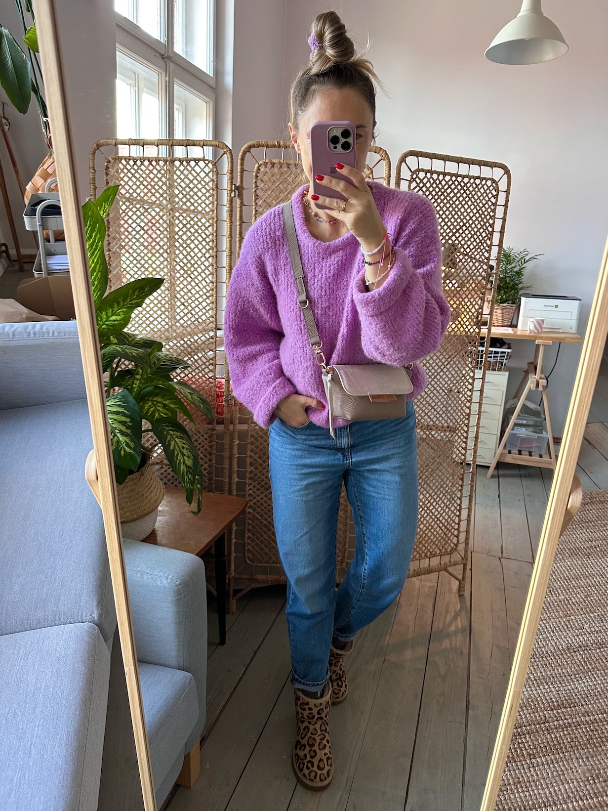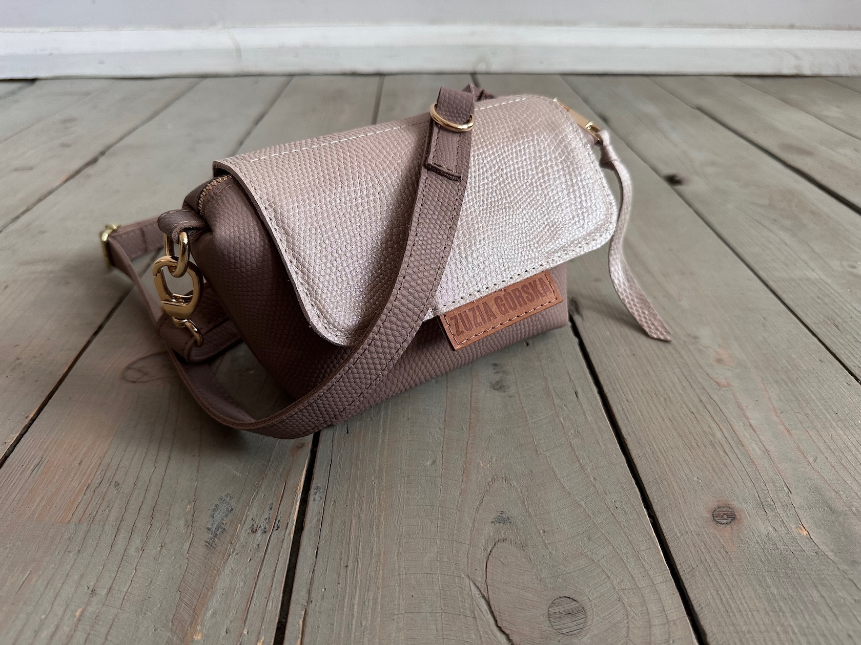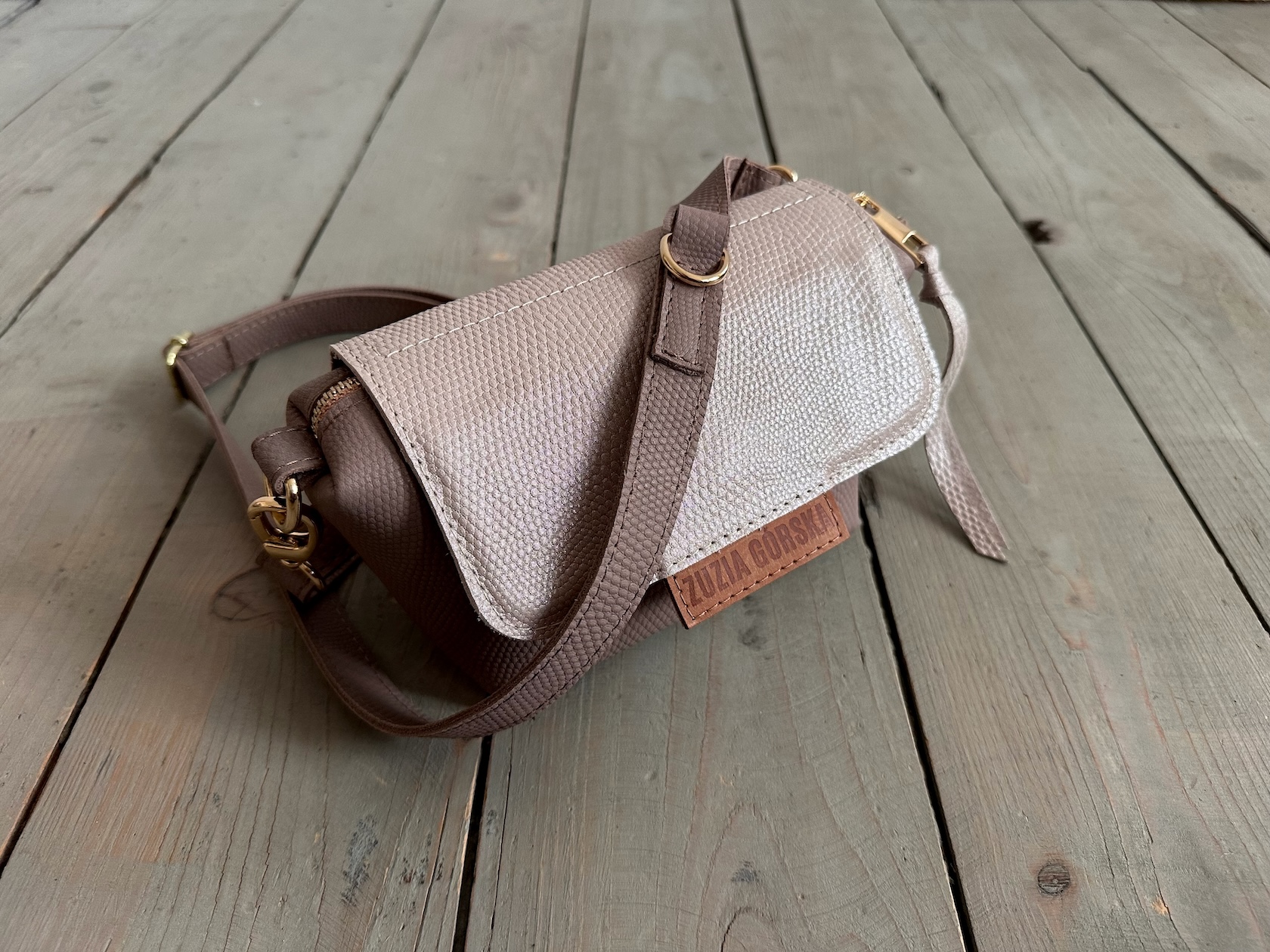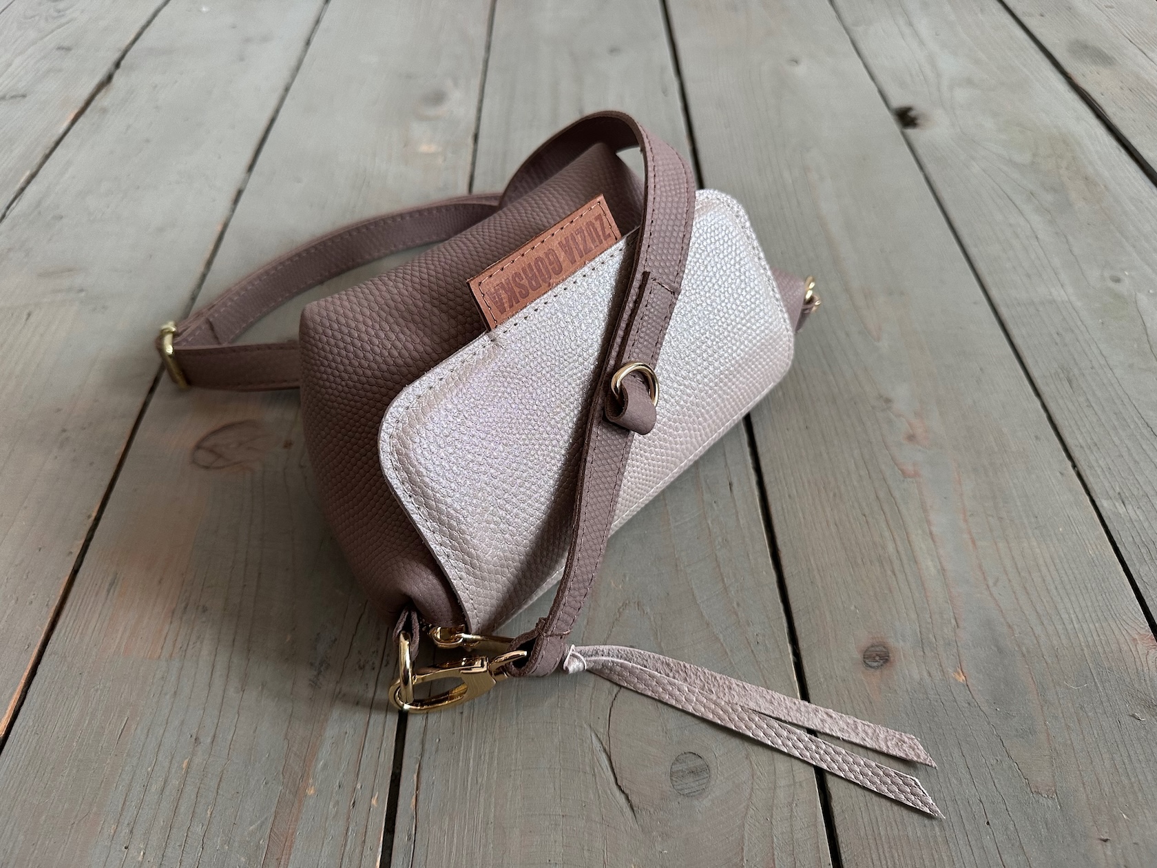 Uszyta ze skóry naturalnej licowej + bawełnianej podszewki.